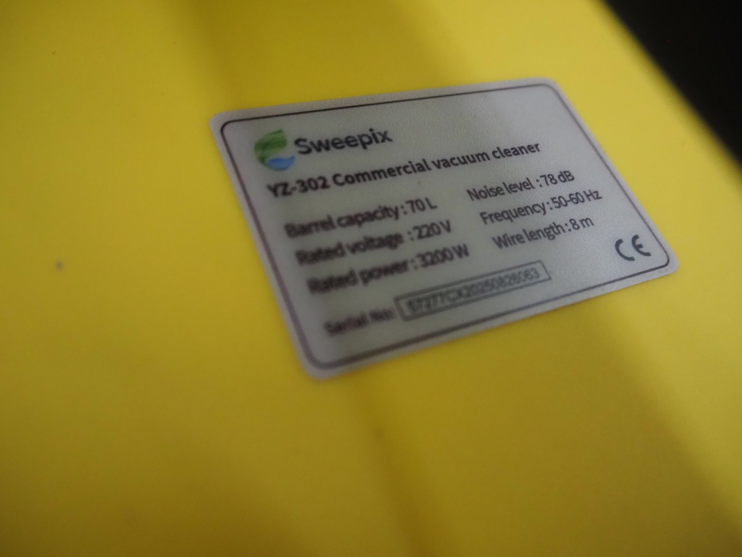 Sweepix vacuum cleaner, type: YZ-302 Commercial vacuum cleaner, serial number: 57277CX20250826063, 220 V, 50-60 Hz, 3200 W, volume: 70 liter, dimensions: 500 mm x 600 mm x 750 mm. New, never used.