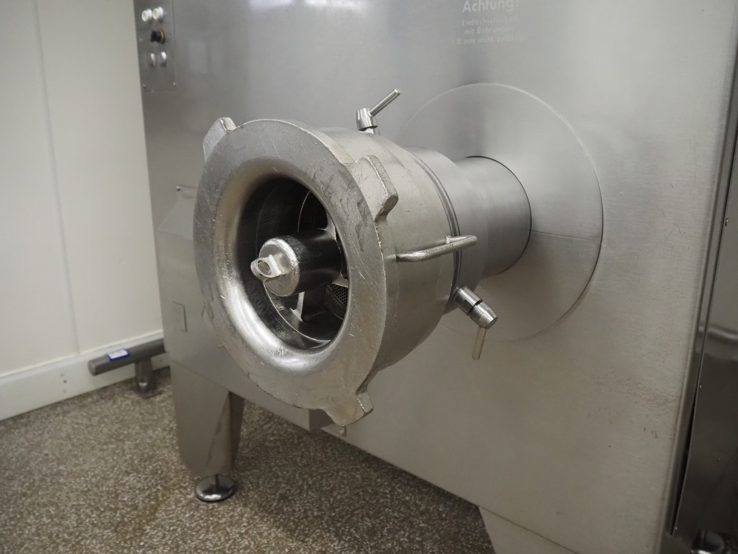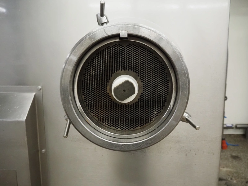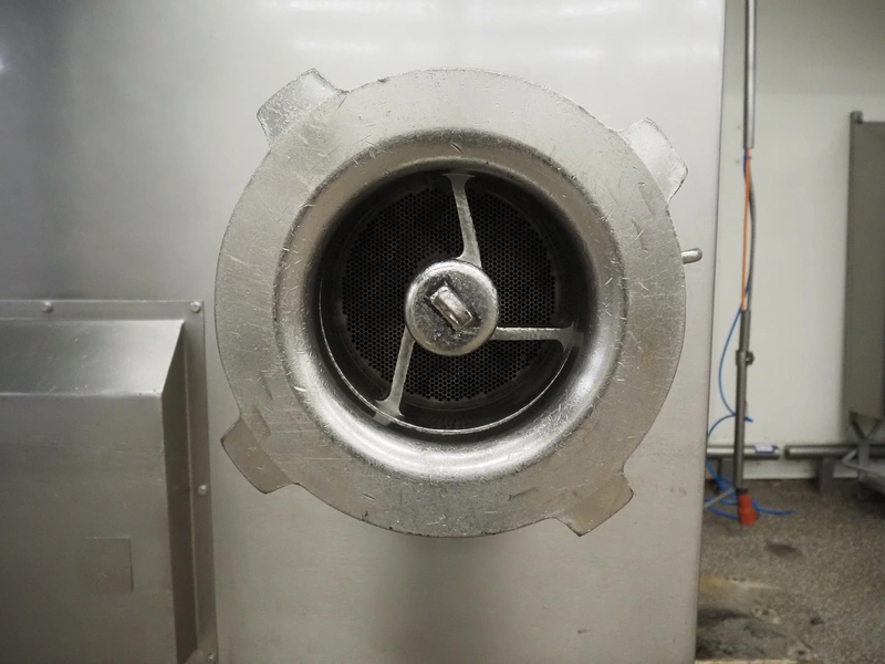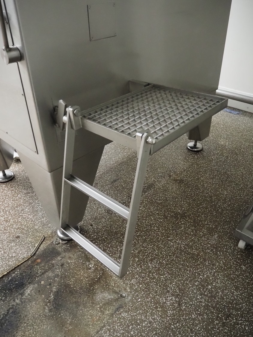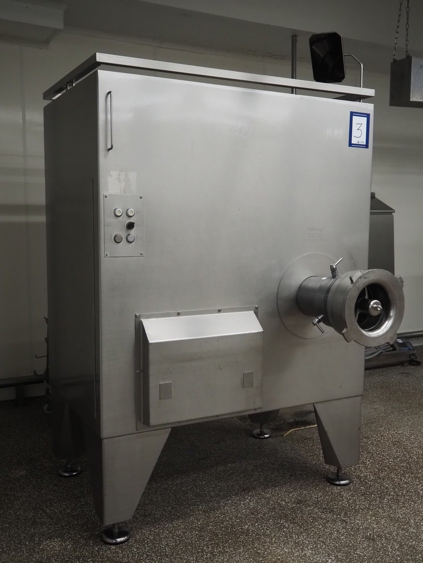 Seydelmann automatic grinder, machine type: AV 250, machine number: 06089-1, year of construction: 2006, 400 V, 50 Hz, 138 A, 78 kW, compressed air: 6 - 10 bar, plate diameter: 250 mm, hopper: 800 liter, 3 speeds on feed screw, 2 speeds on working worm, dimensions grinder: 1650 mm x 1700 mm x 2400 mm, including Verbufa tool trolley, dimensions: 800 mm x 700 mm x 900 mm.