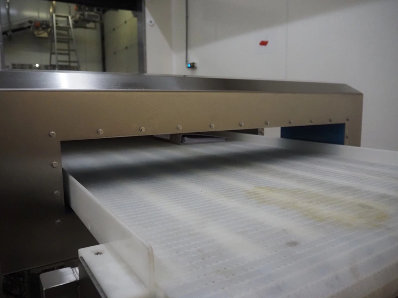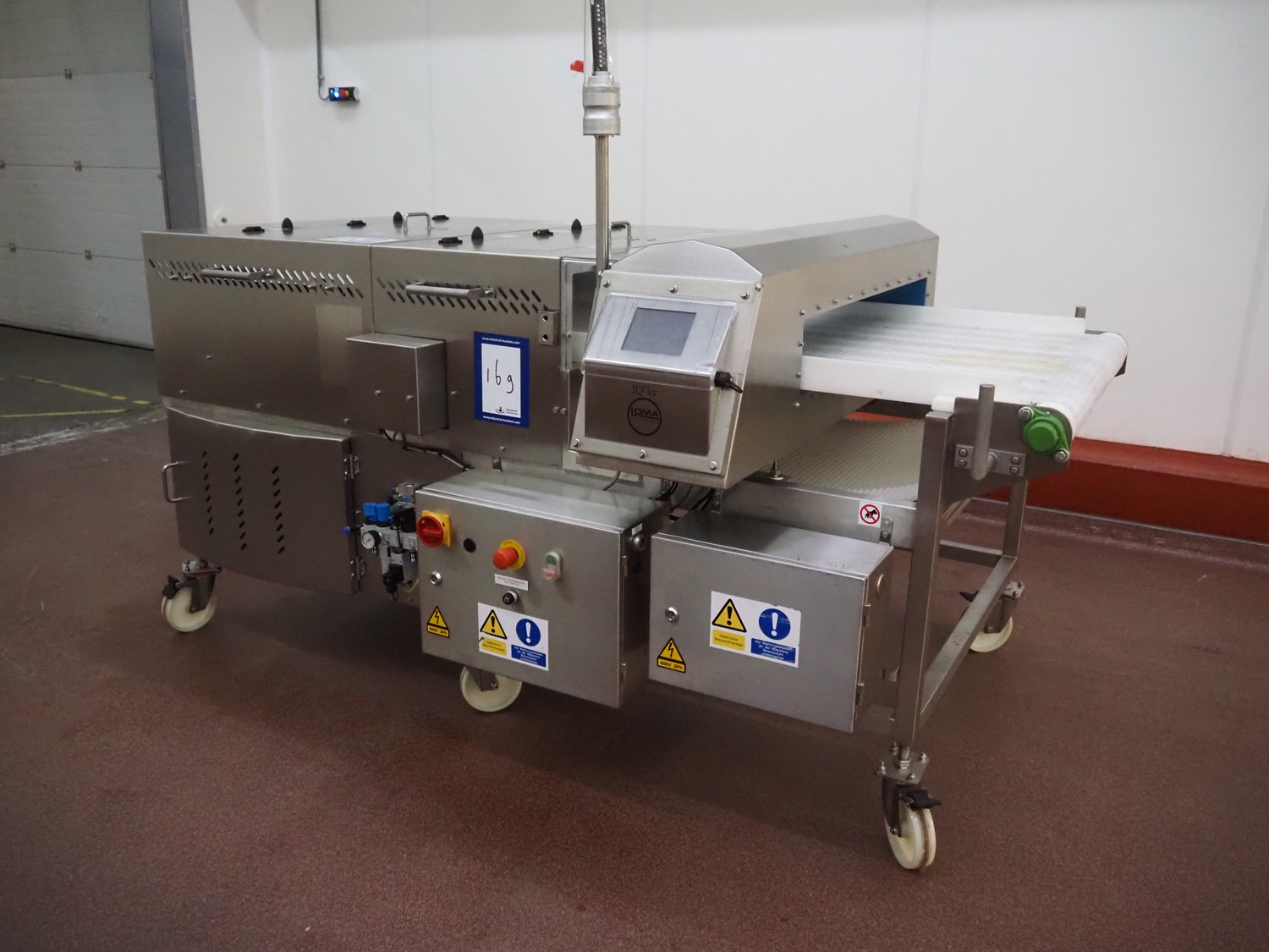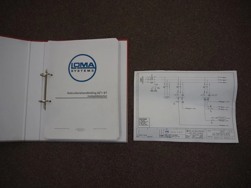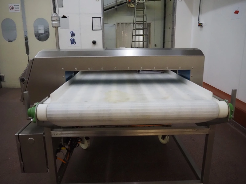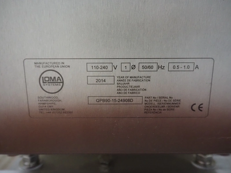 Loma Systems mobile metal detector with rejector, model: IQ³+ST, serial number: QPB90-15-24908, year of construction: 27.5.2014, 110-240 V, 1 Ph, 50/60 Hz, 0.5-1.0 A, plastic belt, belt width: 860 mm, clearance: 860 mm x 105 mm, total dimensions: 2350 mm x 1500 mm x 1650 mm.