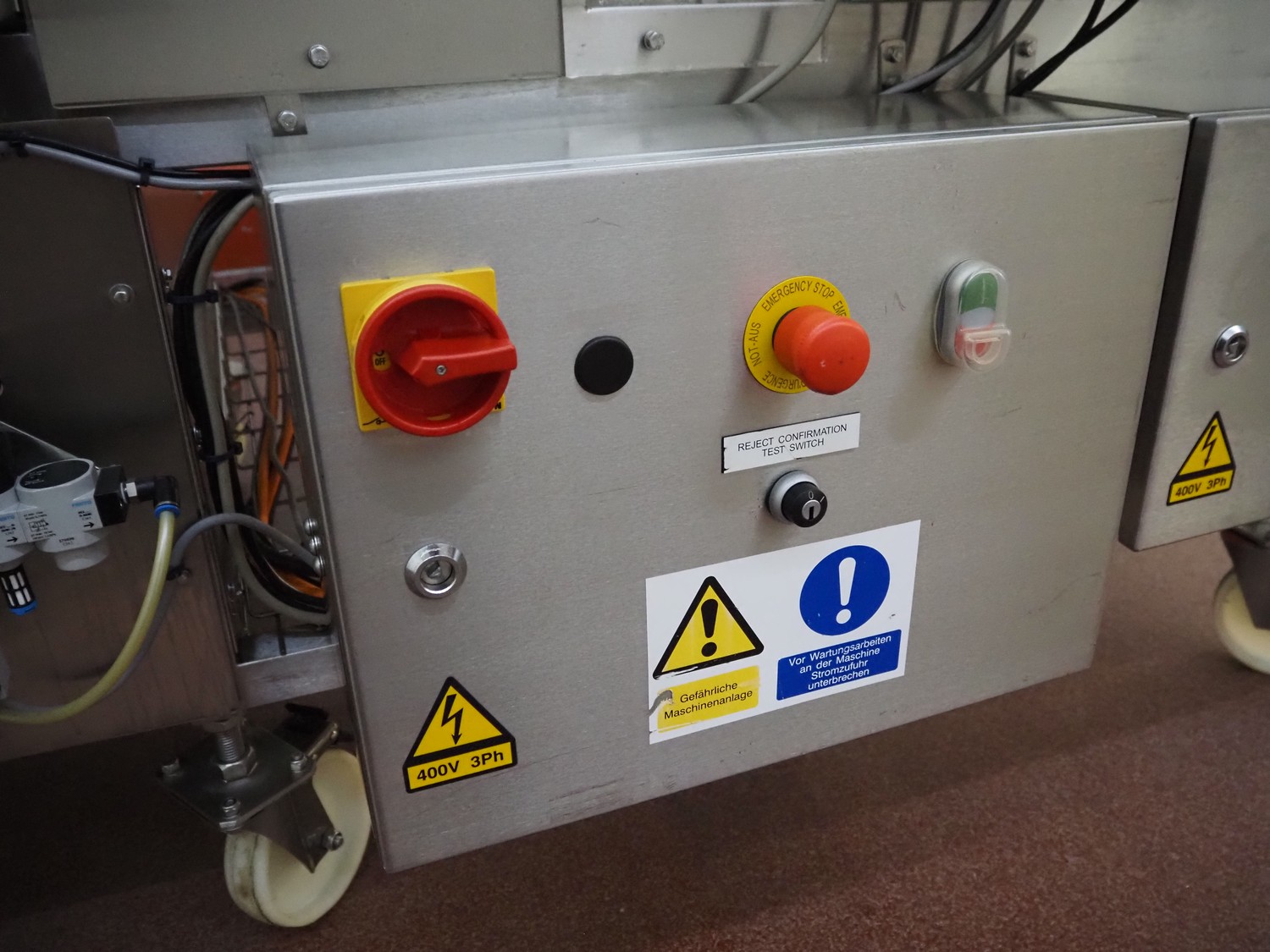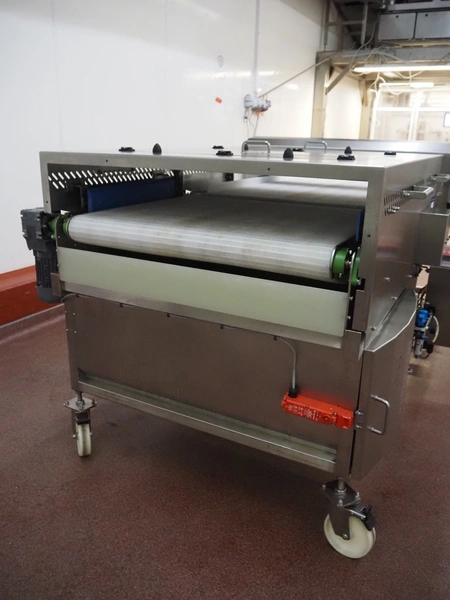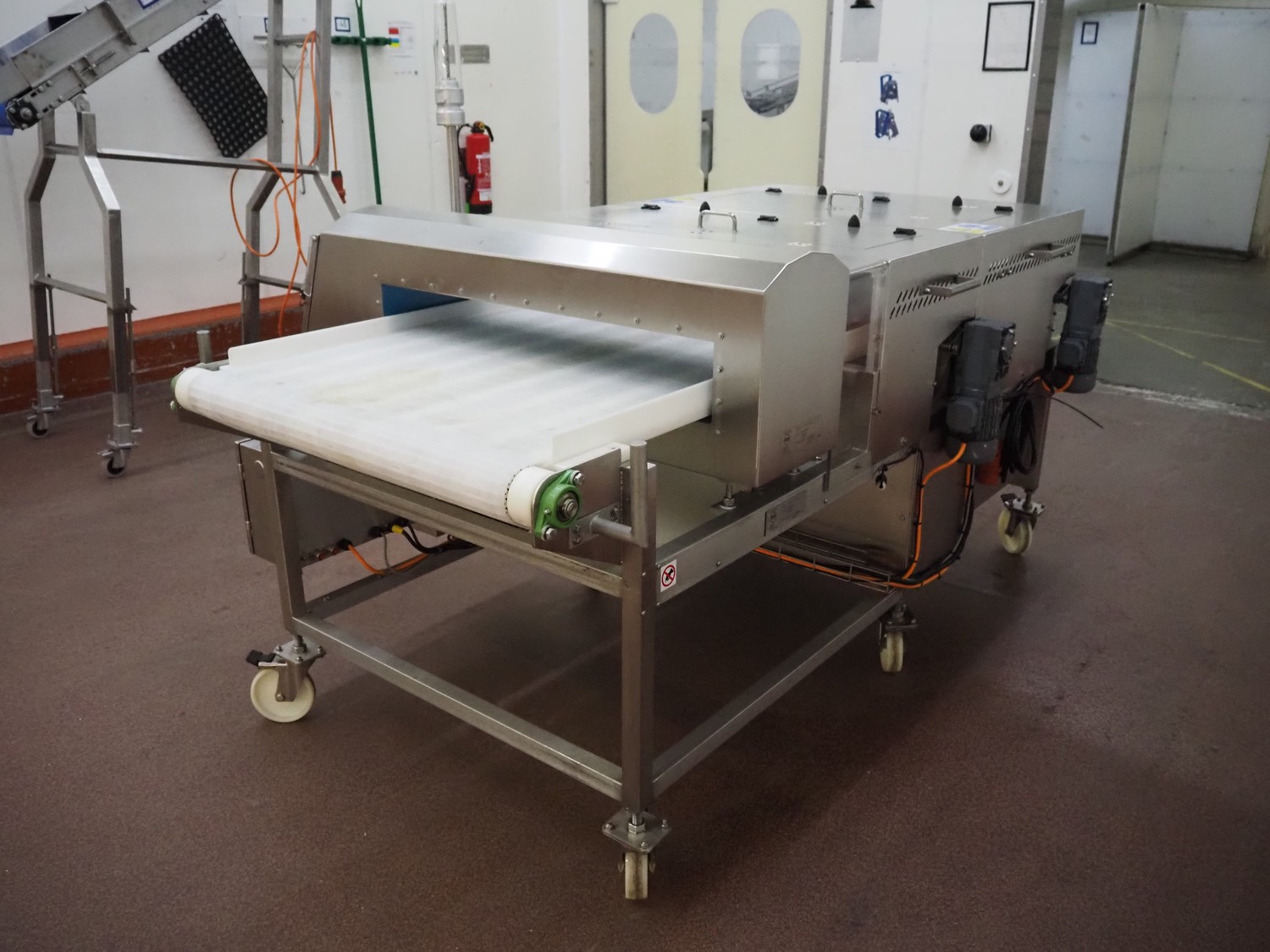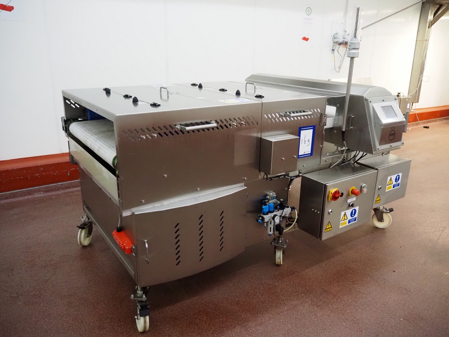 Loma Systems mobile metal detector with rejector, model: IQ³+ST, serial number: QPB90-15-24908, year of construction: 27.5.2014, 110-240 V, 1 Ph, 50/60 Hz, 0.5-1.0 A, plastic belt, belt width: 860 mm, clearance: 860 mm x 105 mm, total dimensions: 2350 mm x 1500 mm x 1650 mm.