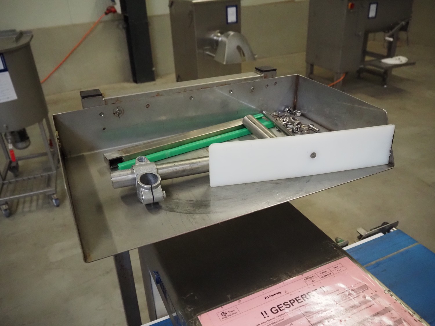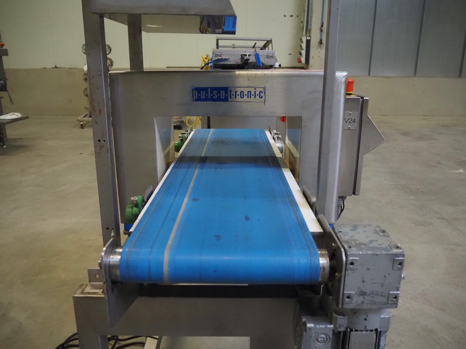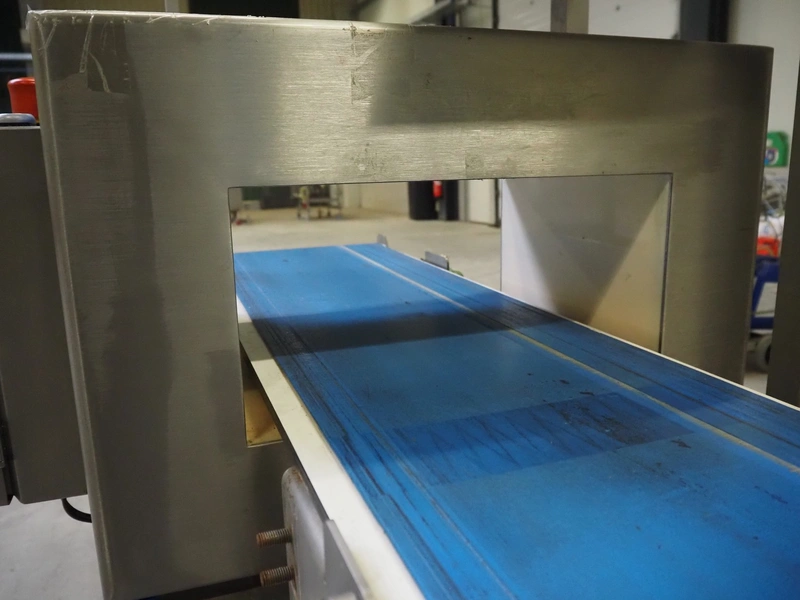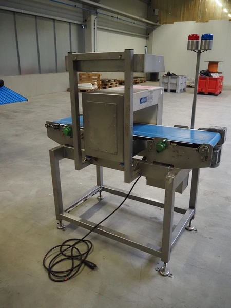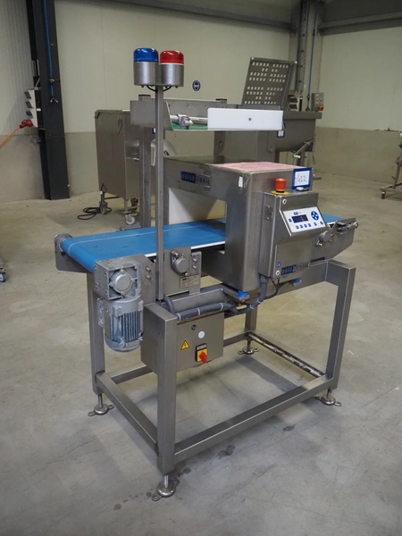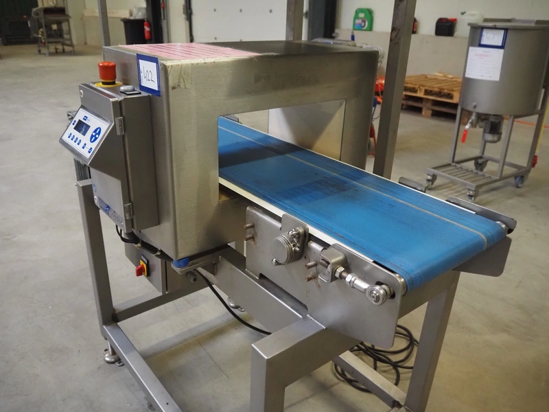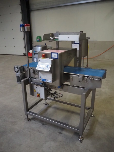 Pulsotronic metal detector, type: M-Pulse BD 400x200, machine number: 90001609, year of construction: 2008, 230 V, 1 Ph, 50/60 Hz, 300 W, plastic belt, belt width: 325 mm, clearance: 400 mm x 116 mm, total dimensions: 1400 mm x 850 mm x 1580 mm.
