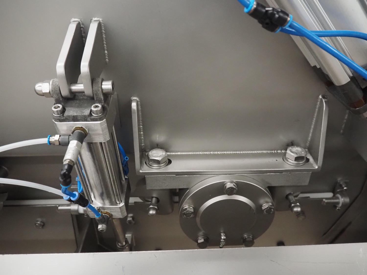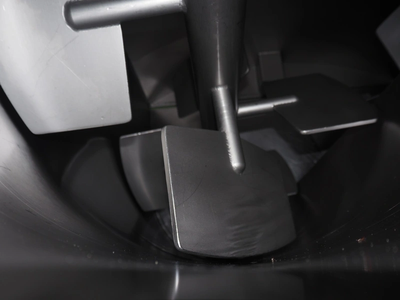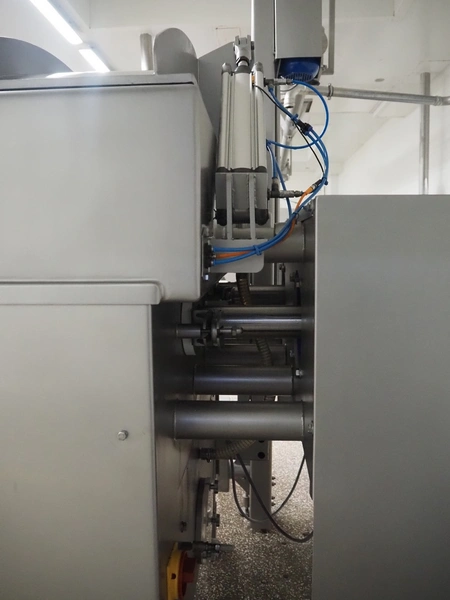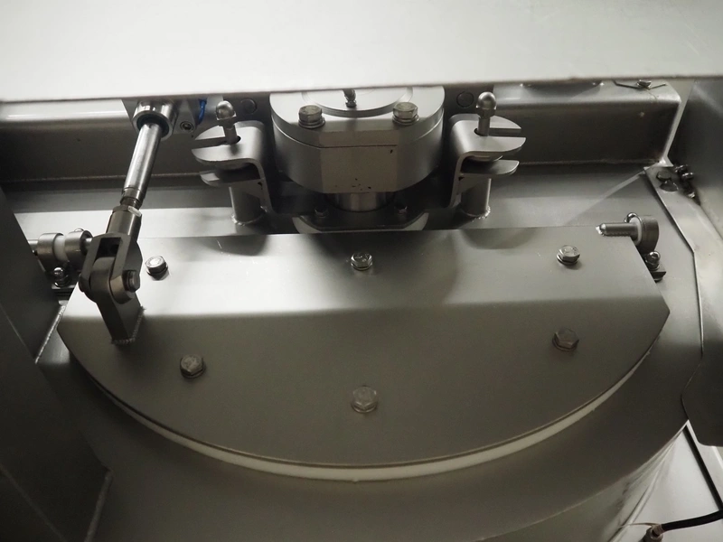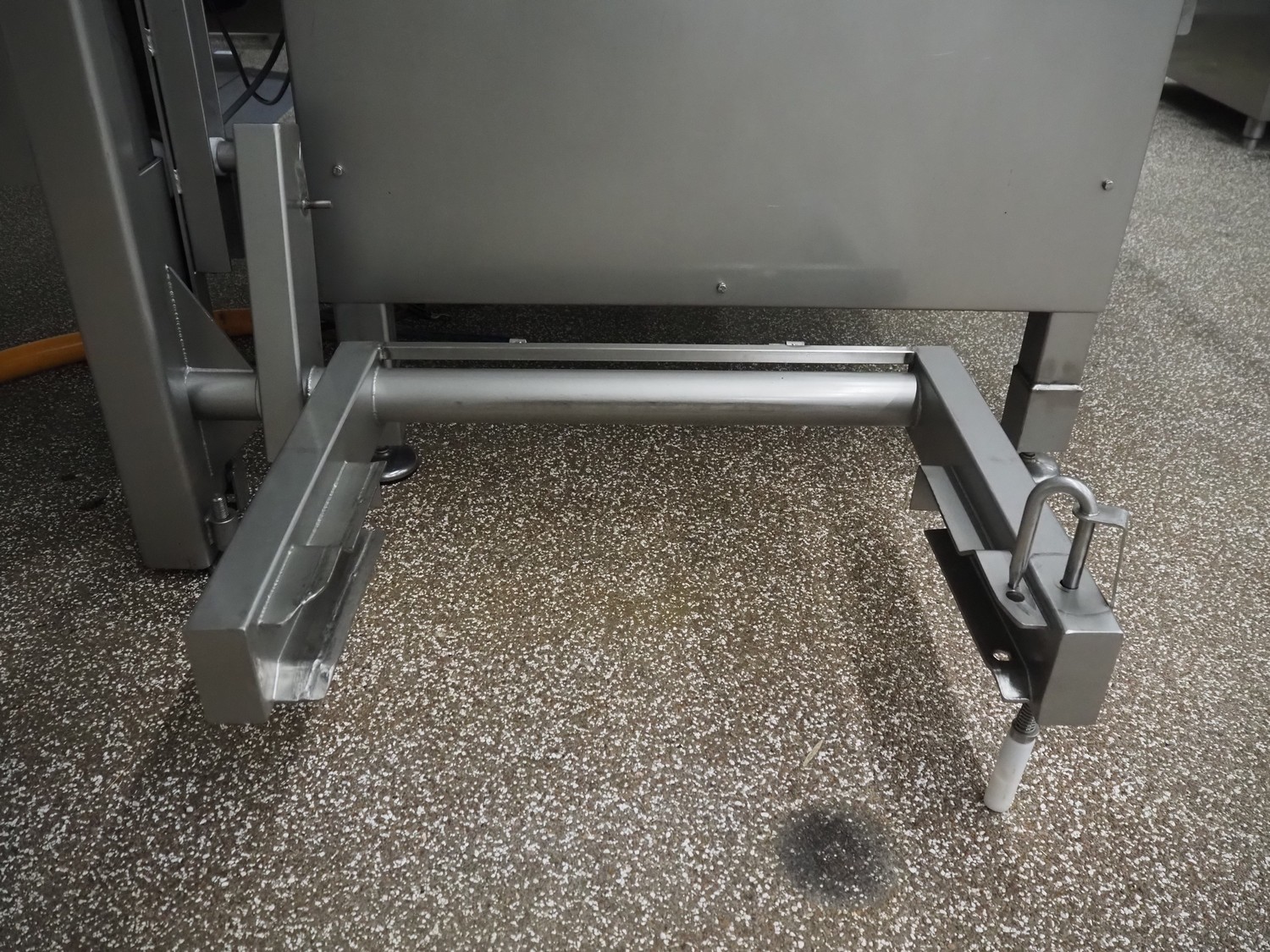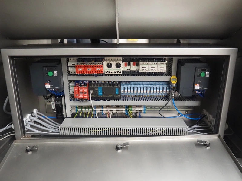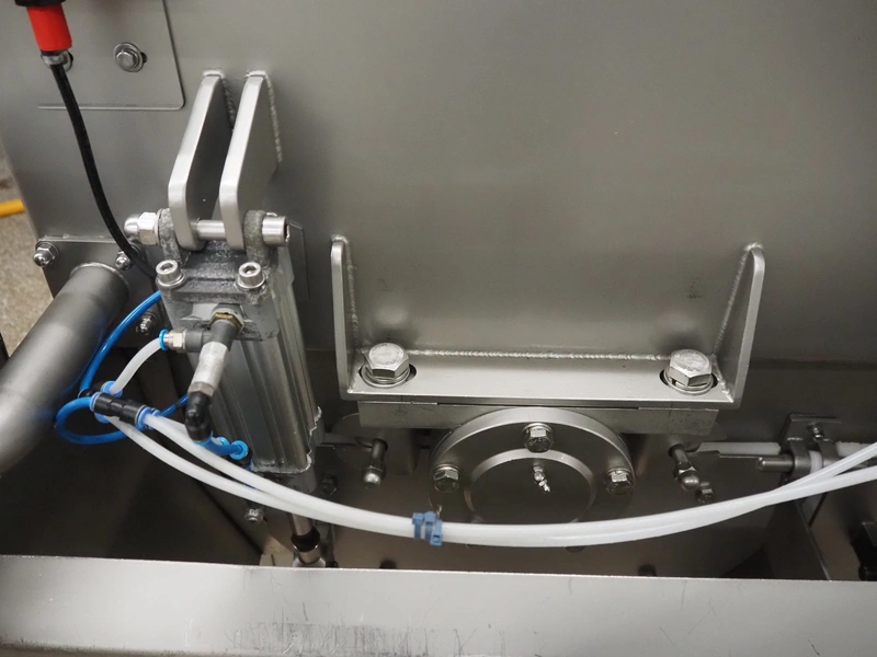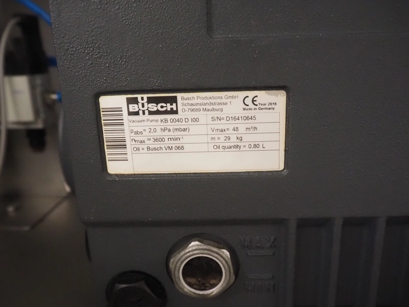 Ekomex double paddle vacuum mixer with lifter for 200 liter meat bins, type: ML-1000V, serial number: 14040801, year of construction: 2018, 3 x 400 V, 50 Hz, 9 kW, Busch vacuum pump, type: KB 0040 D 100, serial number: D16410645, year of construction: 2016, volume: 48 m³ per hour, total dimensions: 2400 mm x 2100 mm x 2700 mm.