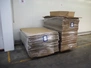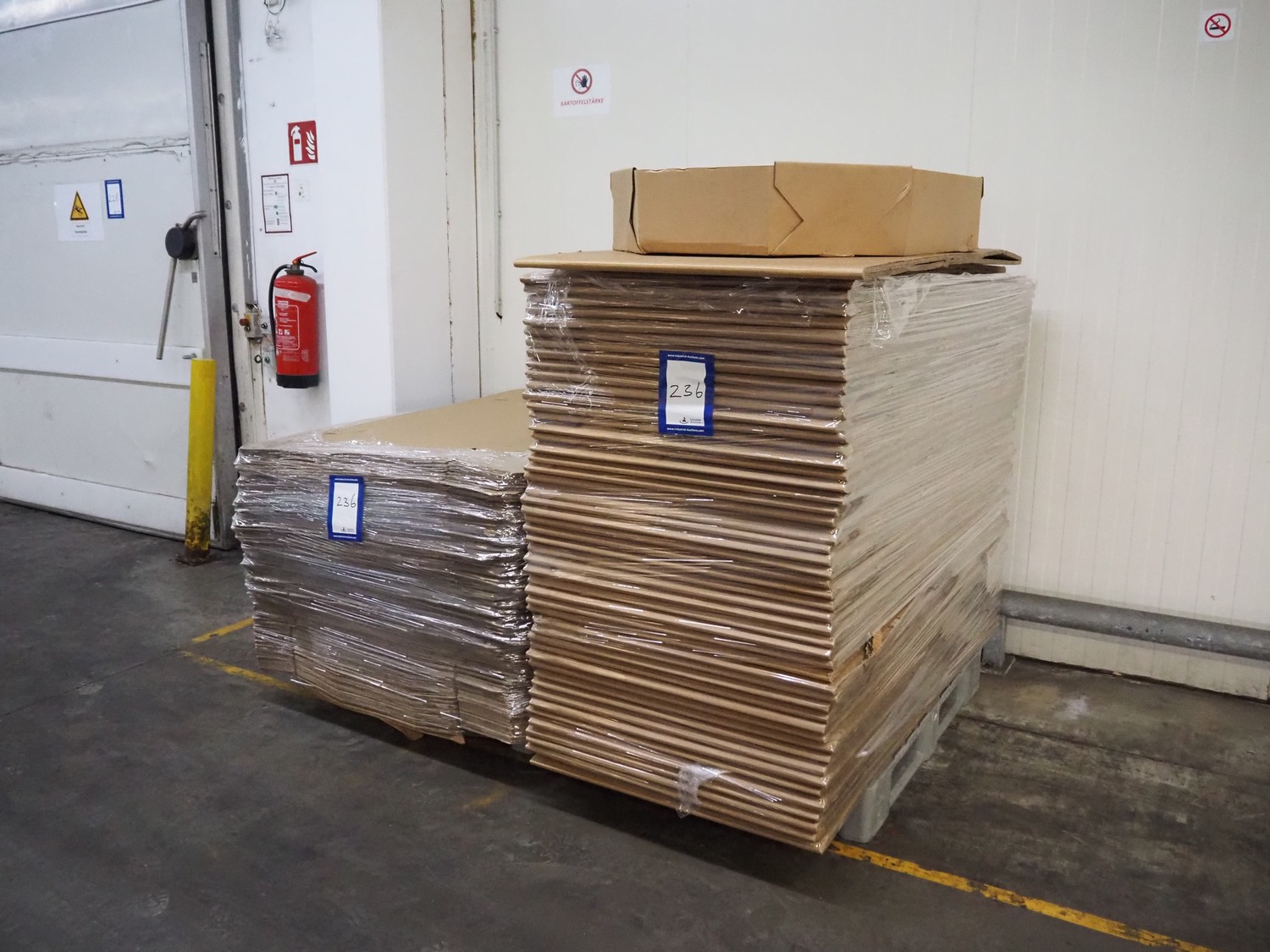 2 pallet with carton boxes, dimensions box: 1230 mm x 850 mm x 200 mm + 850 mm, total dimensions pallets: 1700 mm x 1200 mm x 950 mm and 1700 mm x 850 mm x 1470 mm.