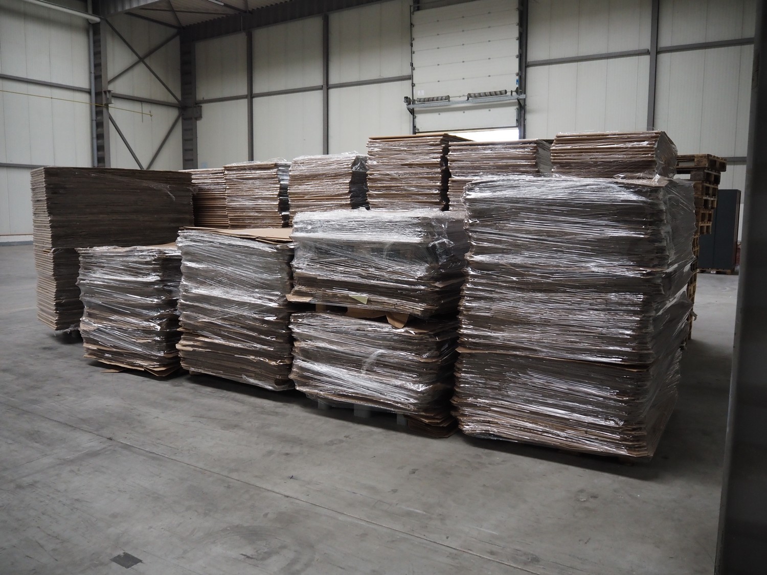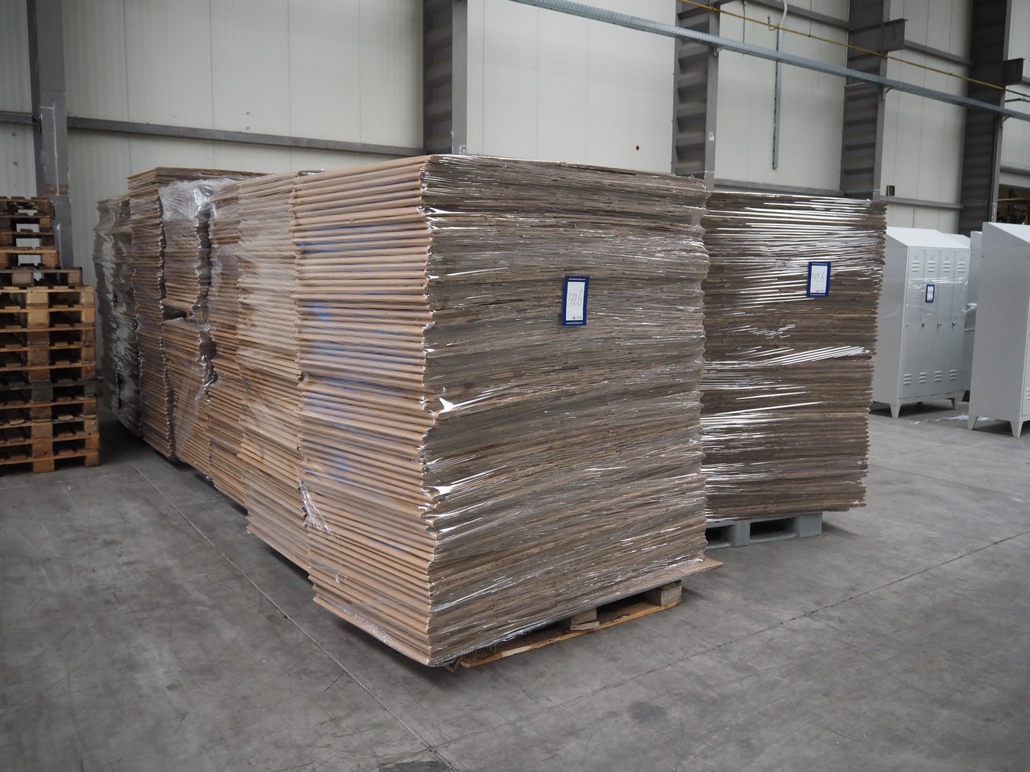 11 pallet with carton boxes, dimensions box: 1230 mm x 850 mm x 200 mm + 850 mm, total dimensions pallets: (4x) 1700 mm x 1400 mm and (7x) 1700 mm x 900 mm.