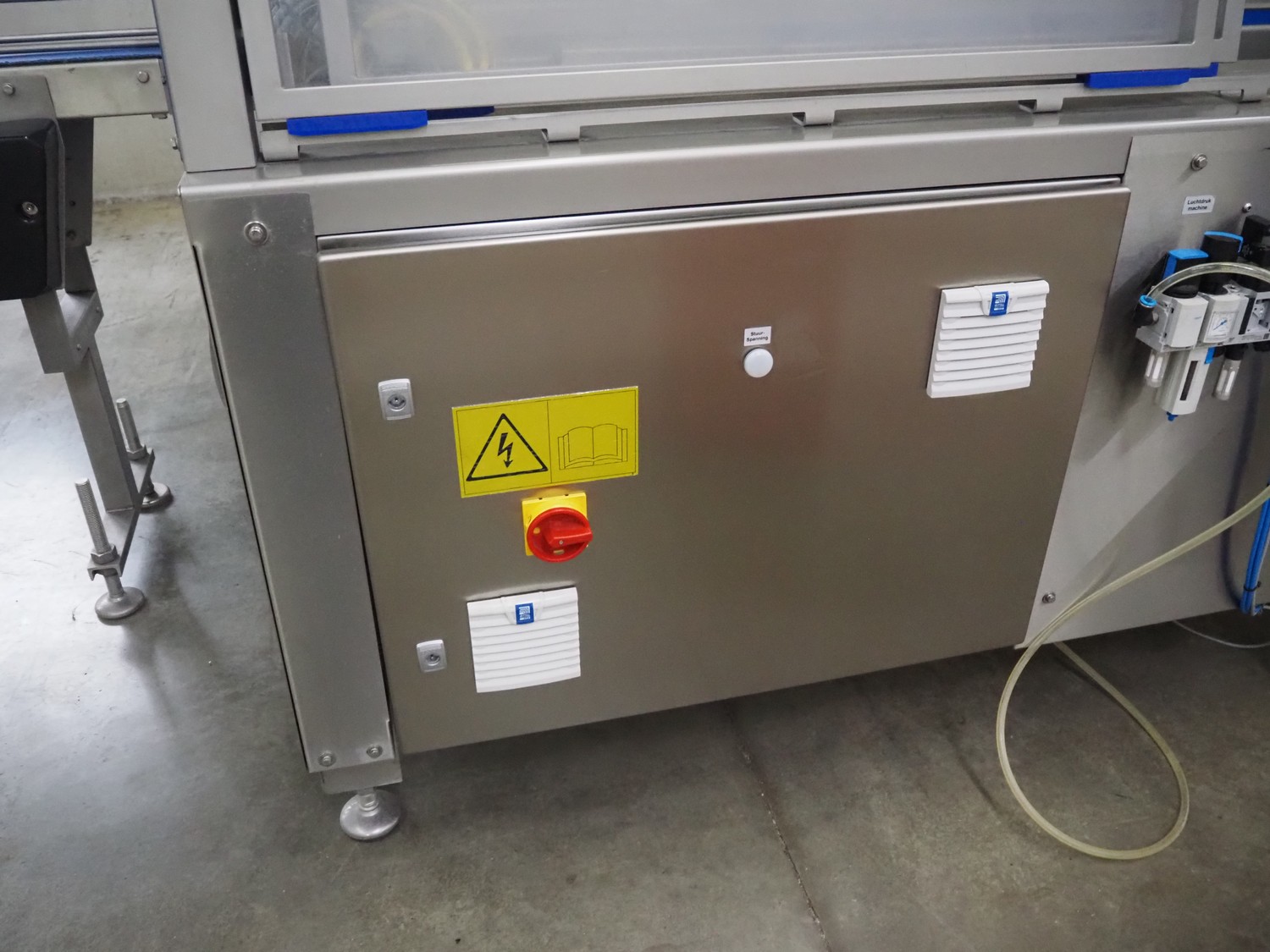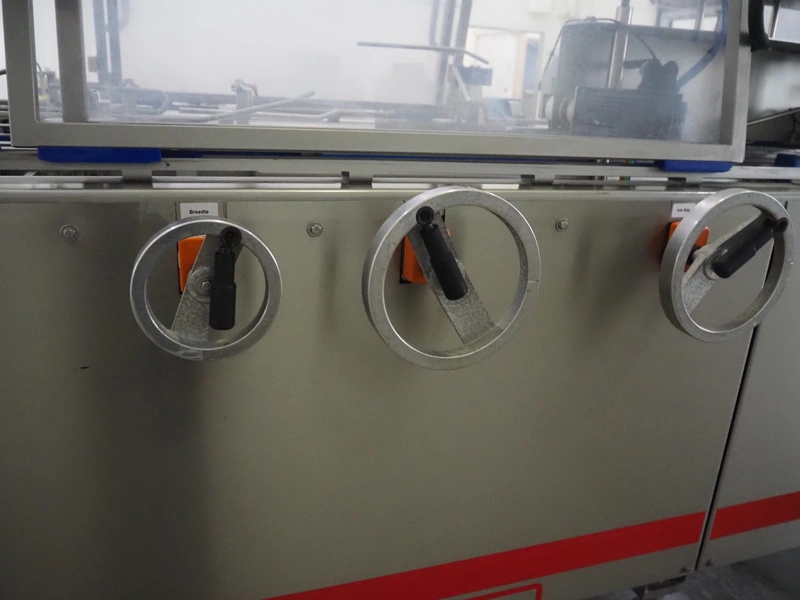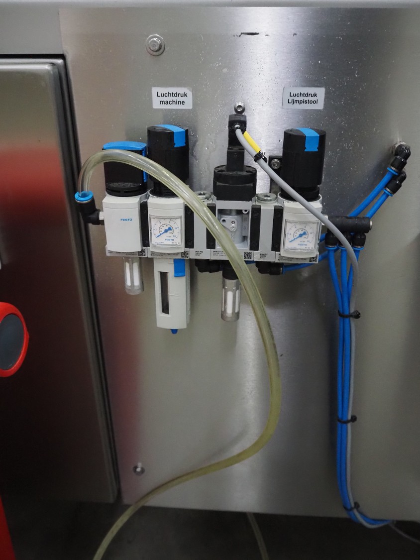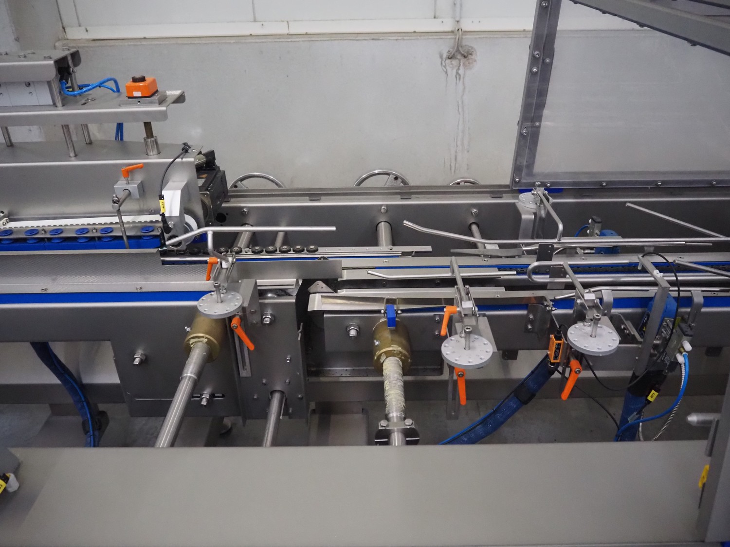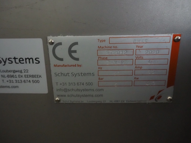 Schut carton closer, type: CM65, serial number: 572012, year of construction: 2020, 3x400 V, 50 Hz, 6.1 kW, 5-10 bar, capacity: maximum 60 cartons/minute, with Nordson ProBlue P4 glue unit, weight: 1100 kg, total dimensions carton closer: 4000 mm x 2000 mm x 1500 mm.