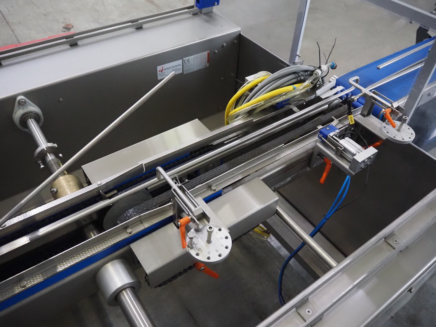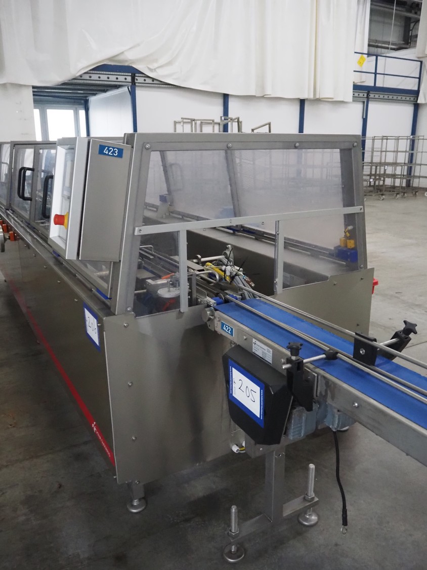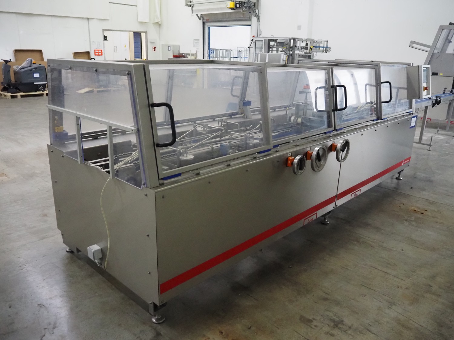 Schut carton closer, type: CM65, serial number: 572012, year of construction: 2020, 3x400 V, 50 Hz, 6.1 kW, 5-10 bar, capacity: maximum 60 cartons/minute, with Nordson ProBlue P4 glue unit, weight: 1100 kg, total dimensions carton closer: 4000 mm x 2000 mm x 1500 mm.