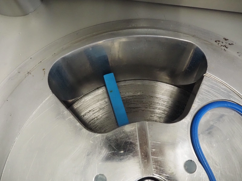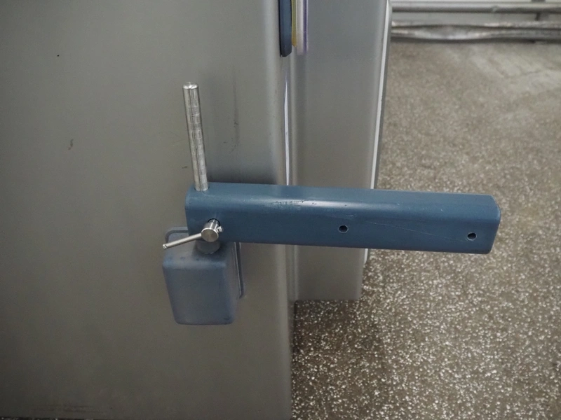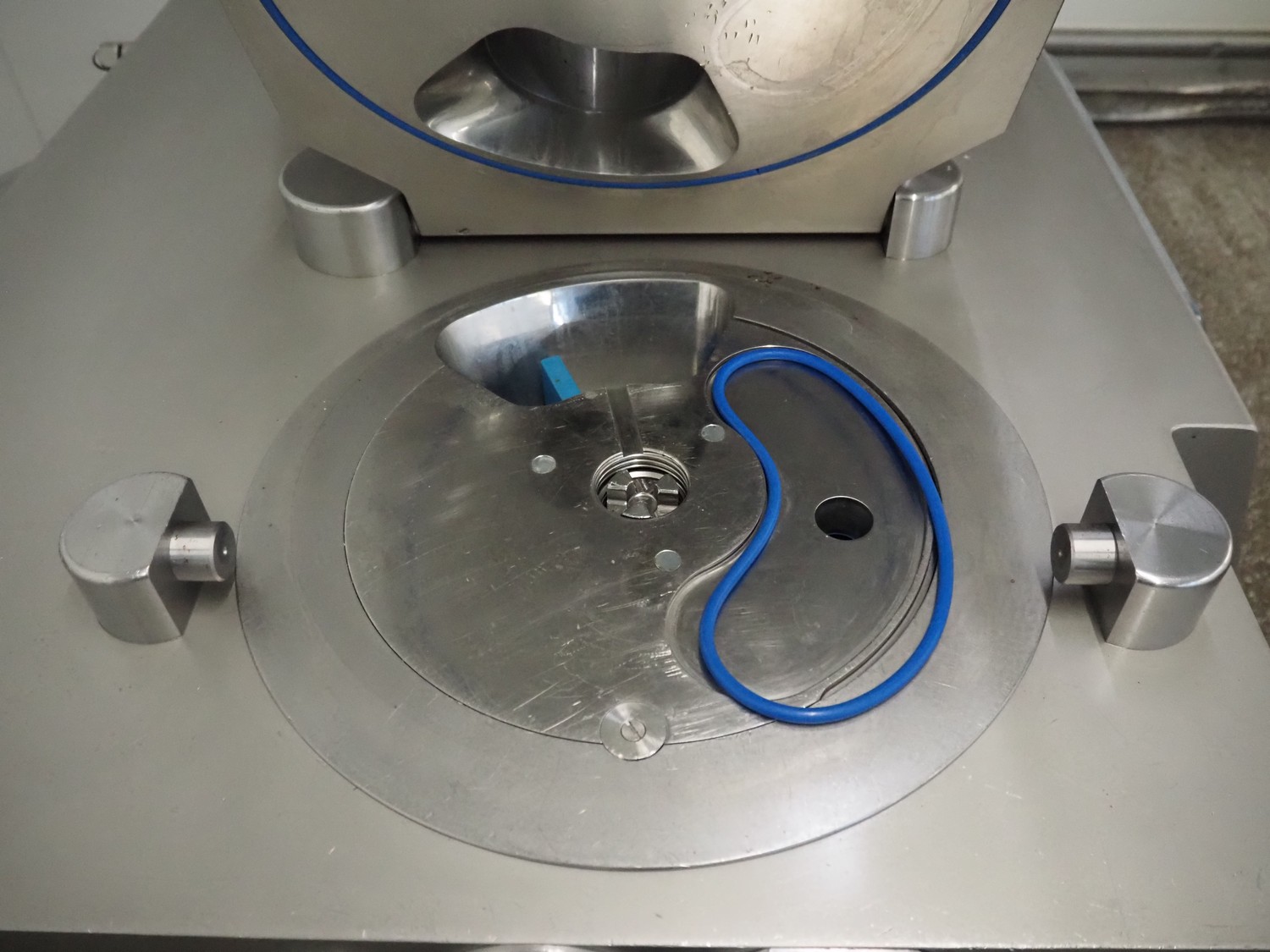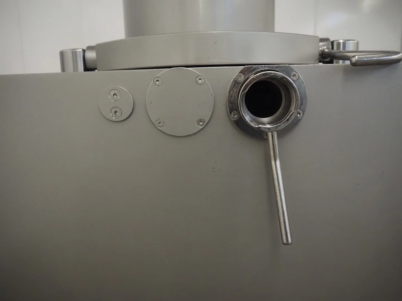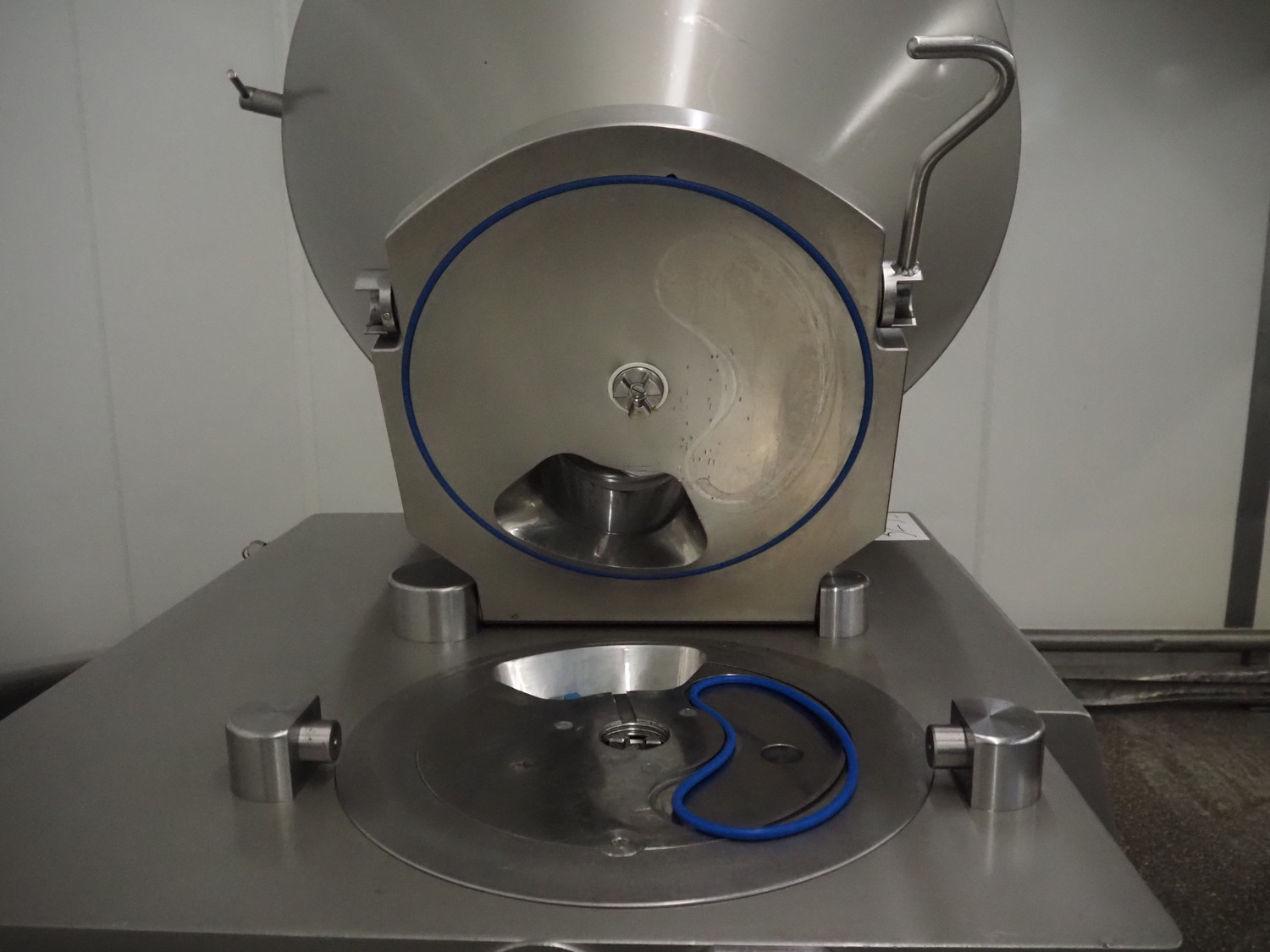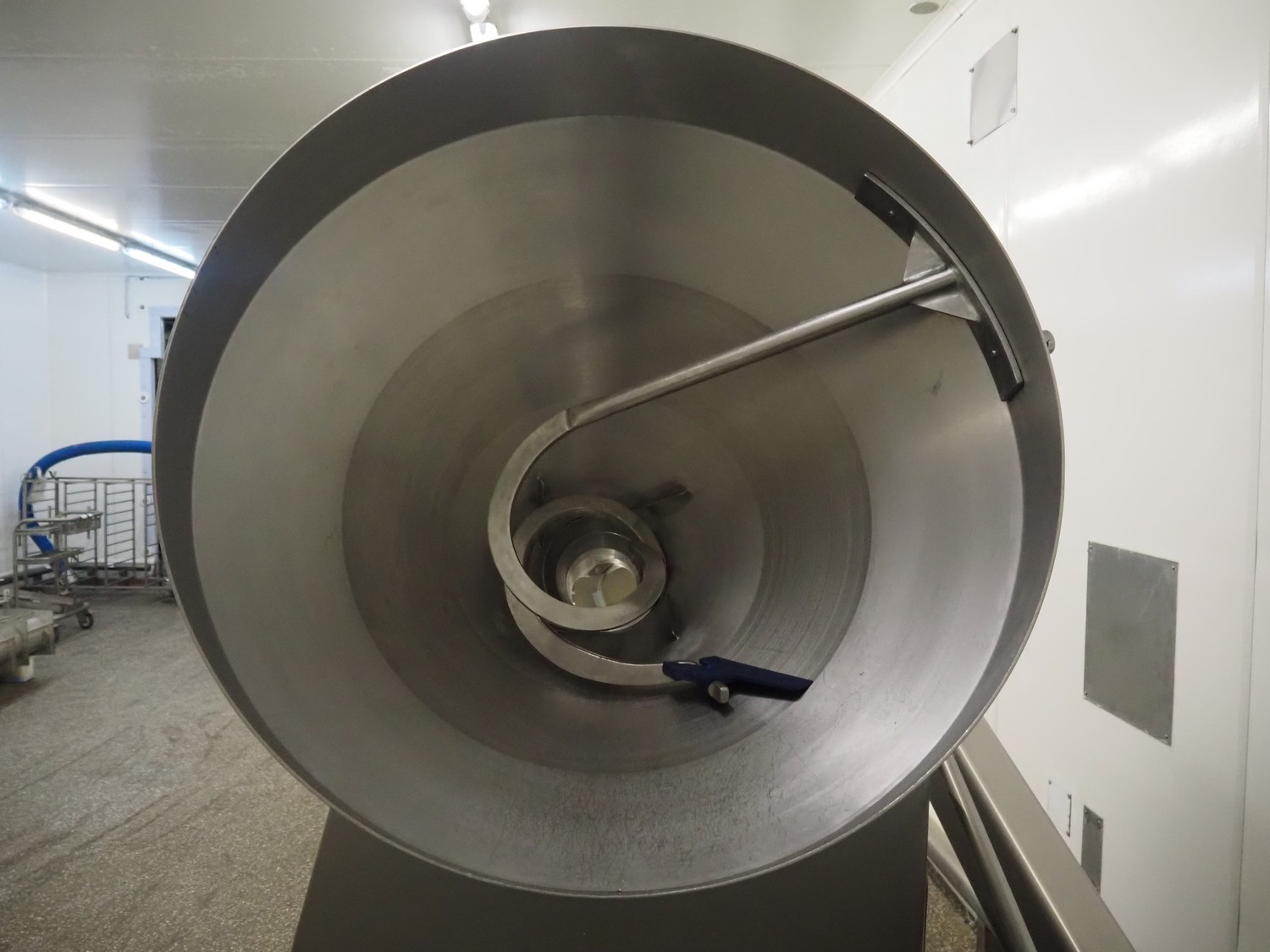 Risco vacuum filling machine with lifter for 200 liter meat bins, type: RS605, serial number: S216011, year of construction: 2018, 3 x 400 V, 50 Hz, 11 kW, filling and portioning, filling pressure: maximum: 40 bar, hopper: 350 liter, weight: 995 kg, built-in Busch vacuum pump, type: RA 0040 F 5Z3, capacity: 48 m³ per hour, dimensions: 1300 mm x 2050 mm x 2100 mm.