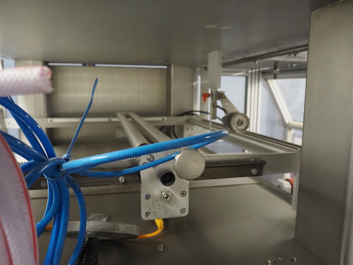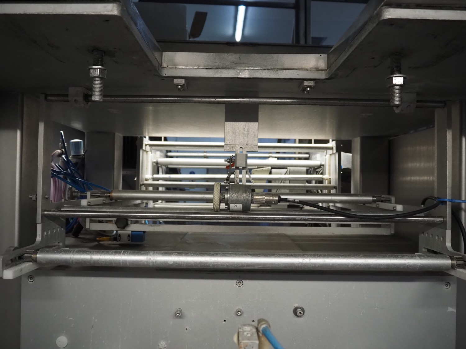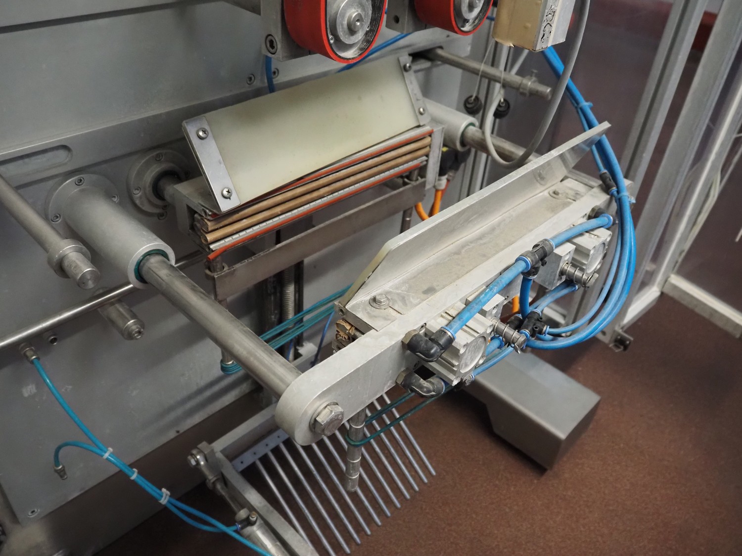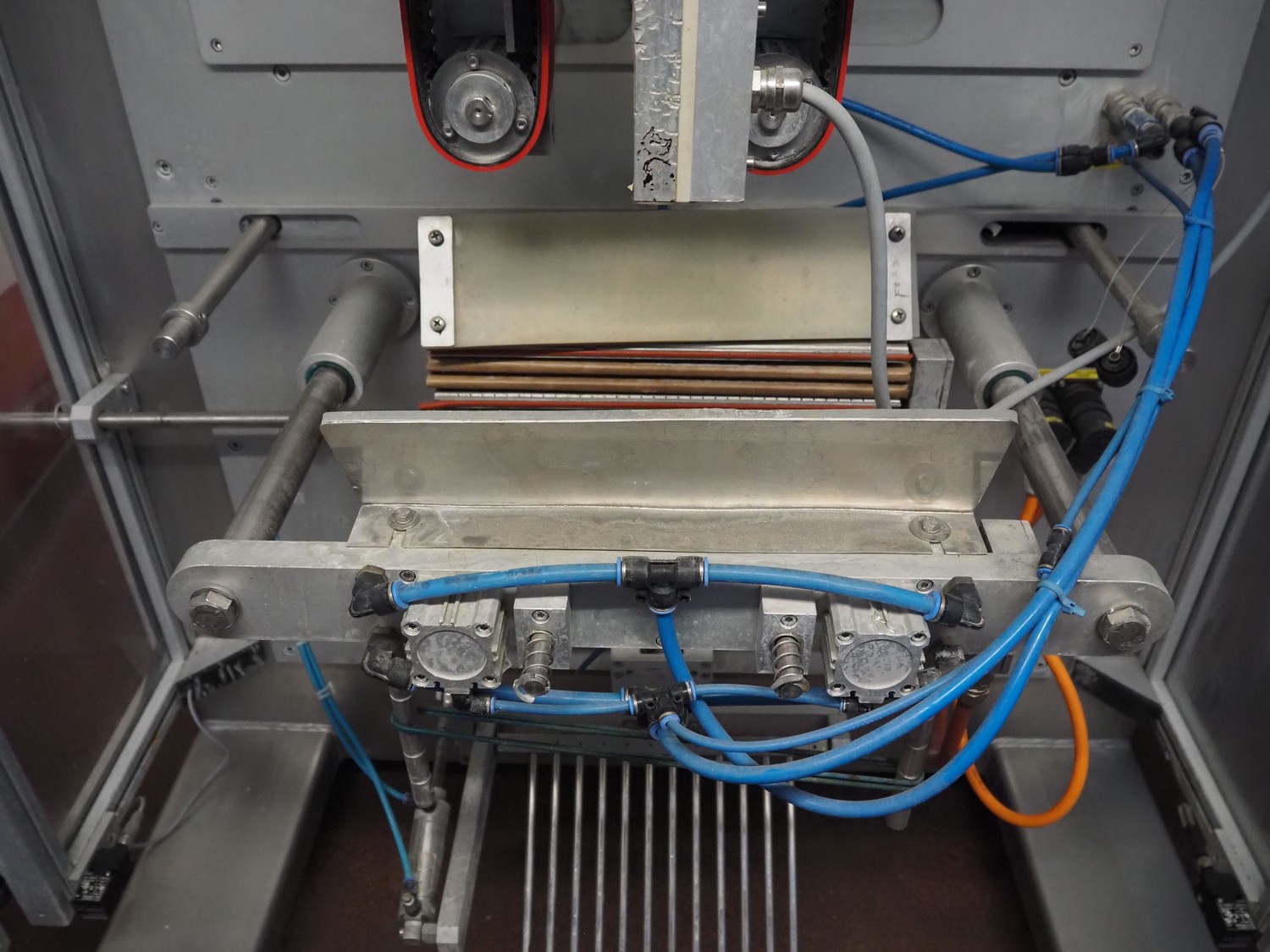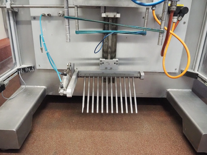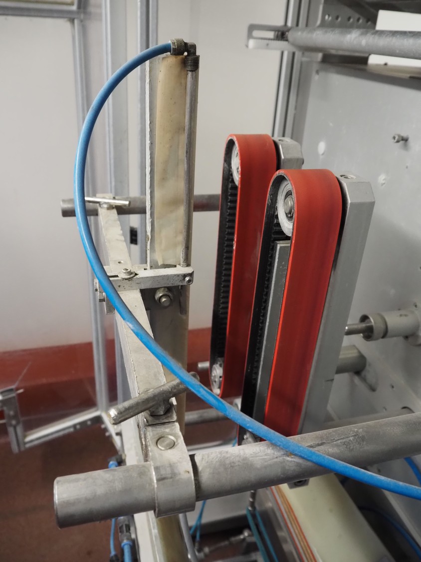 Kopas Verpackungsmaschinen GmbH vertical bag form-, fill-, and seal machine, type: JK 360 FM, machine number: 265, year of construction: 11/2005, 400 V, 3 Ph, 50 Hz, 11.5 kW, vertical seal length: 500 mm, horizontal seal length: 380 mm, film width: 780 mm, VideoJet barcode printer, model: 8.4 CLARITY, total dimensions: 2200 mm x 1700 mm x 1920 mm. Missing filling pipe.
