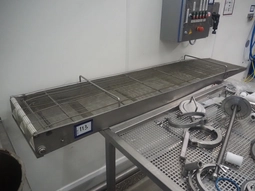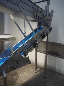Roof mounted de-elevating belt with dividers, s/s frame, plastic belt with dividers, belt width: 300 mm, divider height: 40 mm, dis…€ 150,000 bids30/04/2026 15:30 -