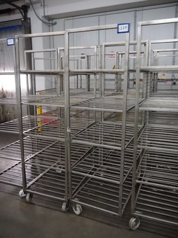 5 s/s trolleys, 5 floors, dimensions floors: (5x) 910 mm x 600 mm, total dimensions: (5x) 930 mm x 600 mm x 1650 mm.€ 125,000 bids30/04/2026 15:00 -
