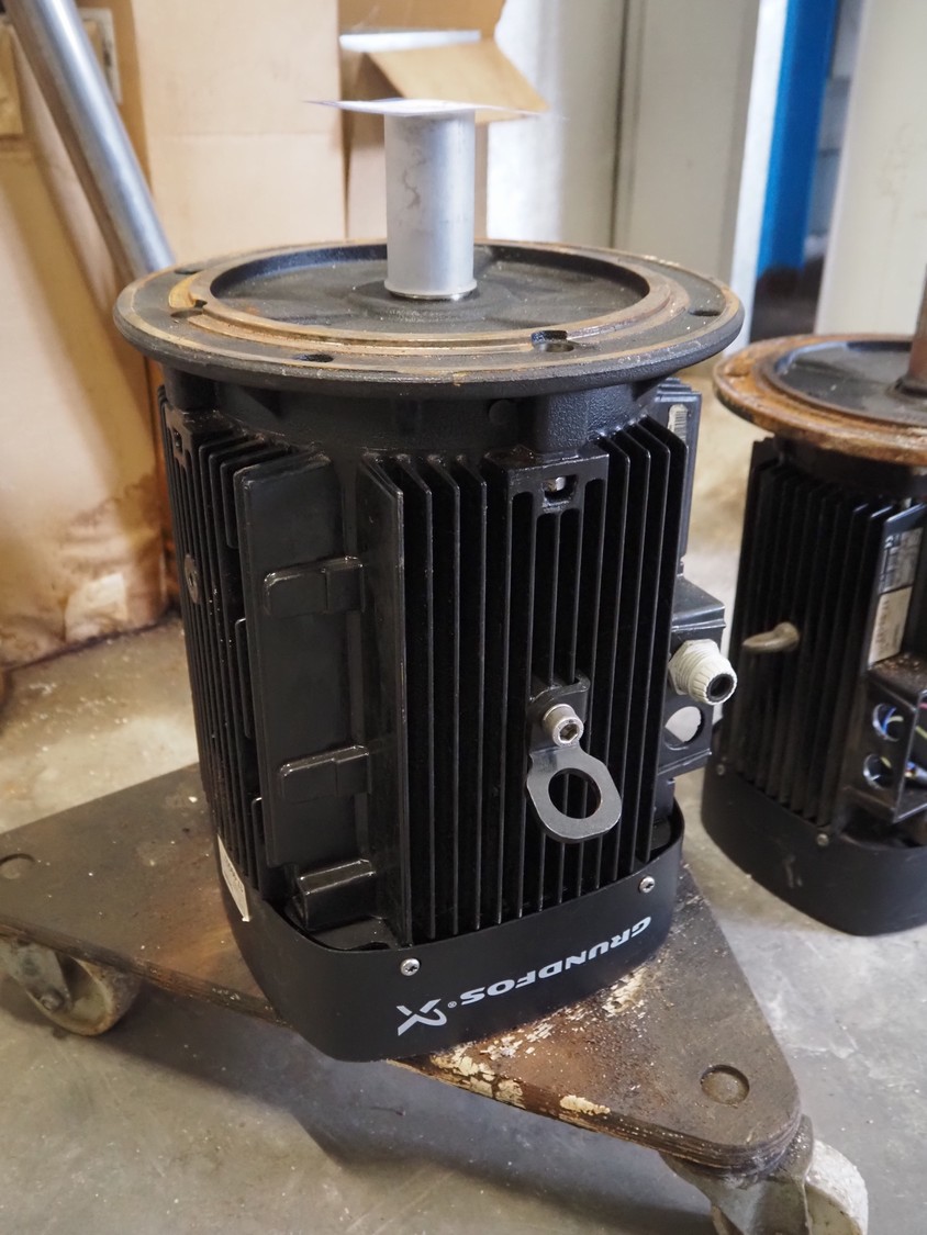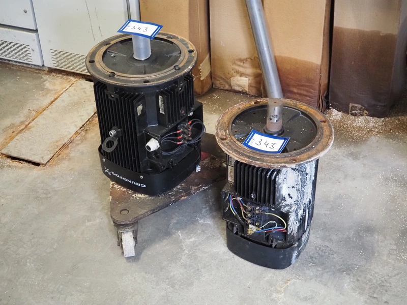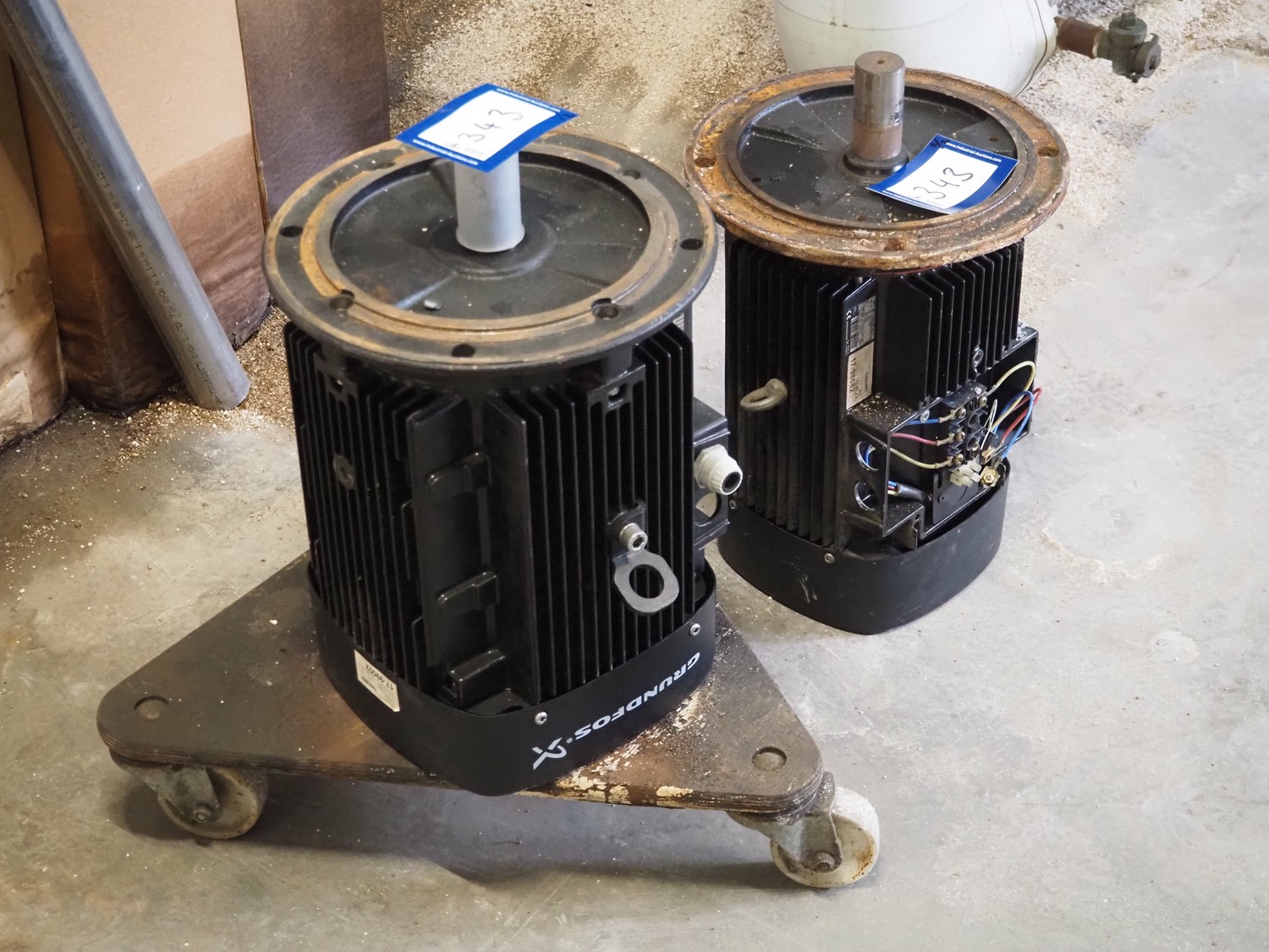 2 Grundfos motors for circulation pumps, dimensions: (2x) 300 mm x 300 mm x 400 mm.