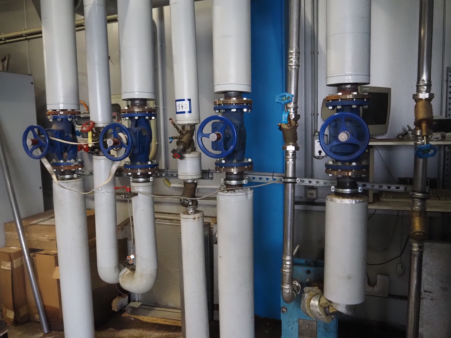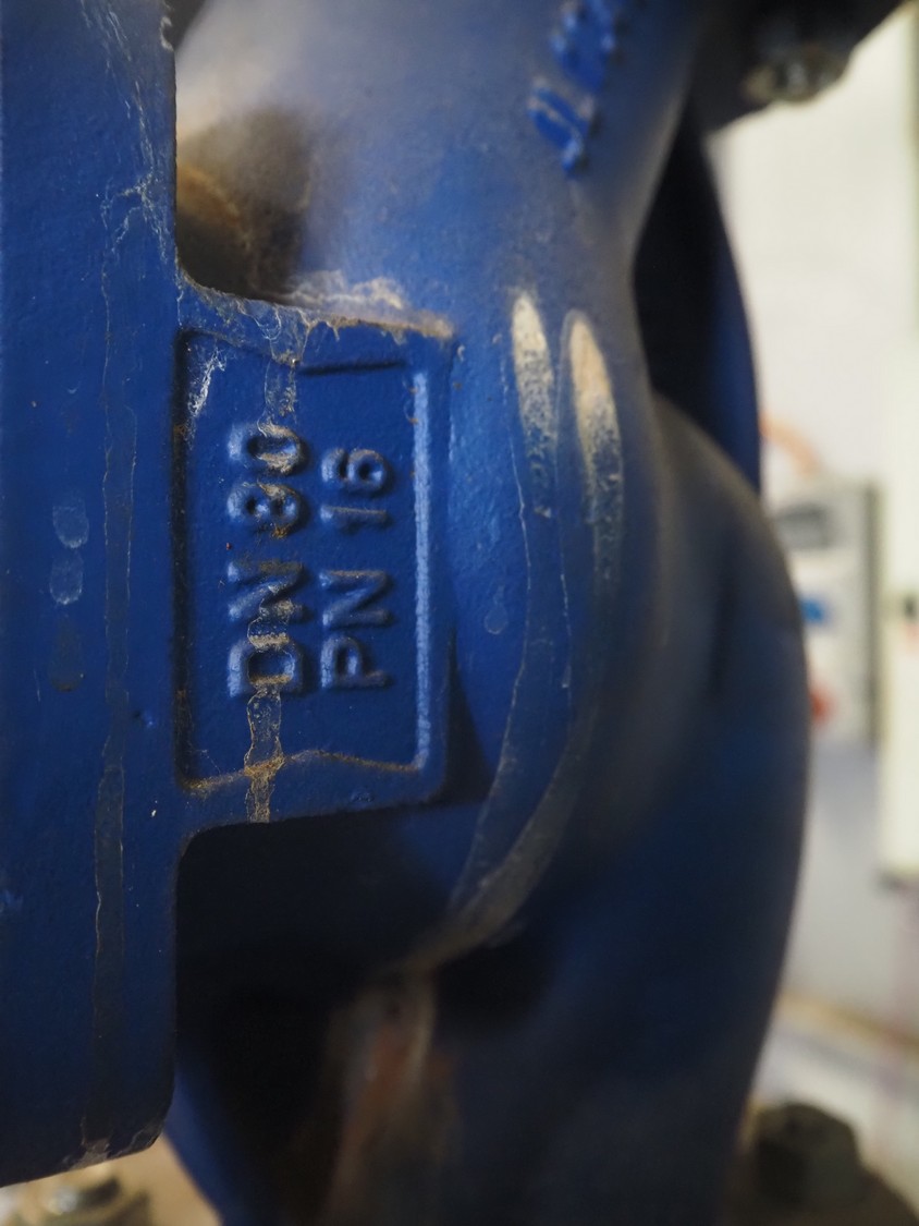 4 manual valves, DN 80, PN 16, dimensions: (4x) 300 mm x 400 mm x 200 mm.