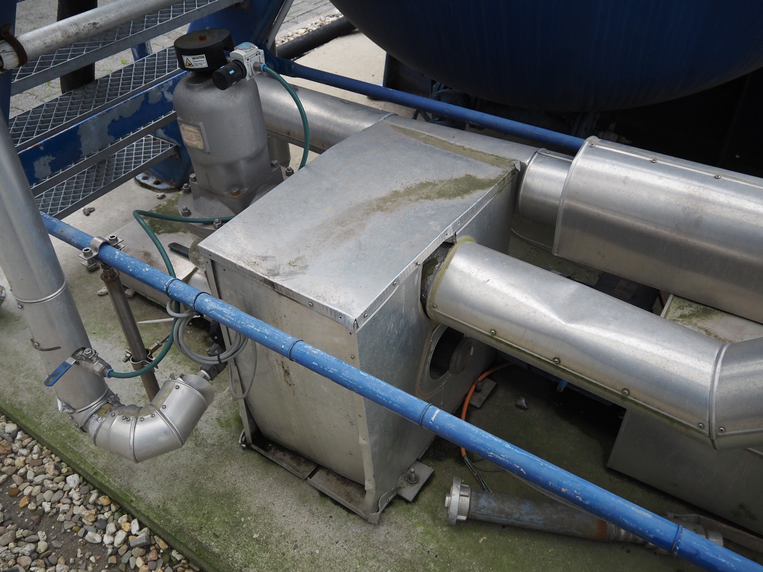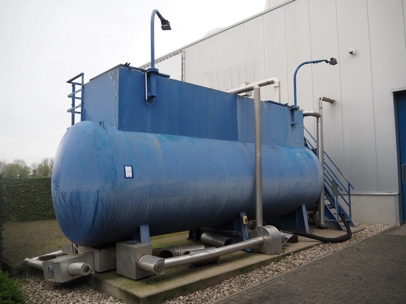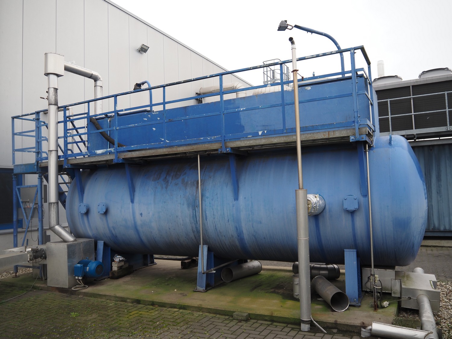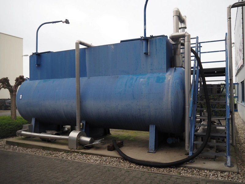 Dirt water storage tank, diameter tank: 2050 mm, length tank: 6800 mm, total height tank: 3250 mm. Including steel platform with stairs.