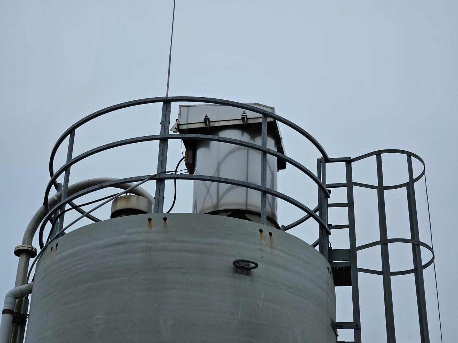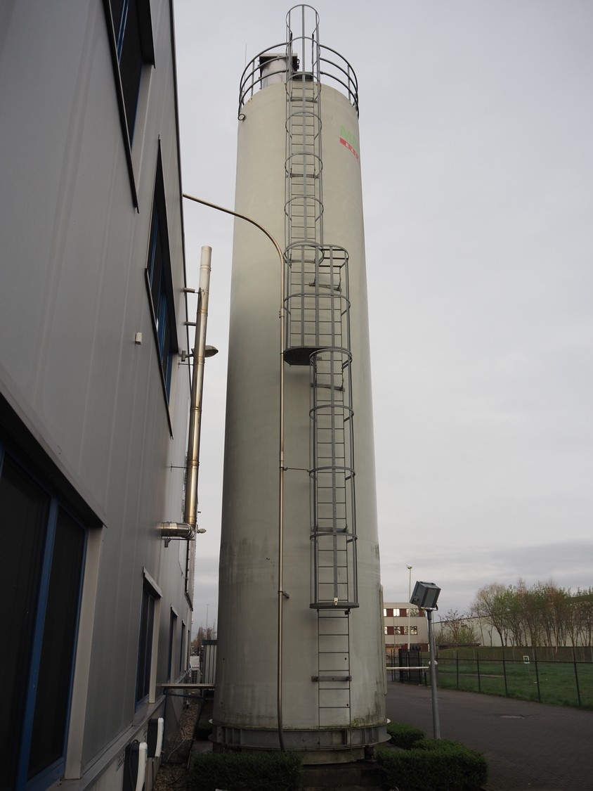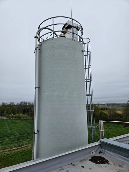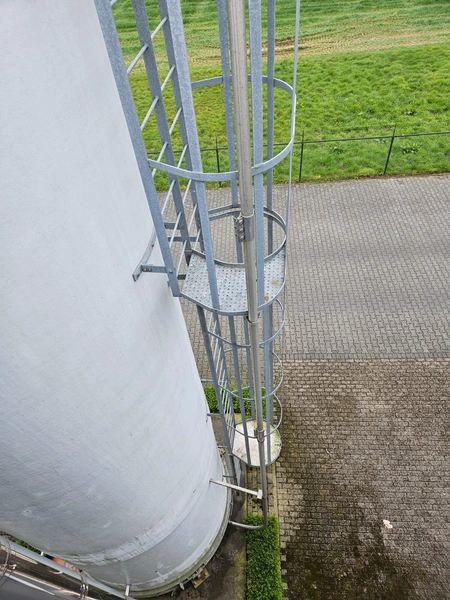 Siloba silo on weighing cells with galvanized stairs, diameter silo: 3000 mm, height silo: approximately 14500 mm. Last inspection: 02-2025.