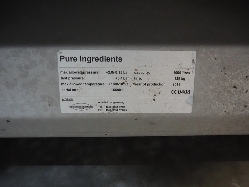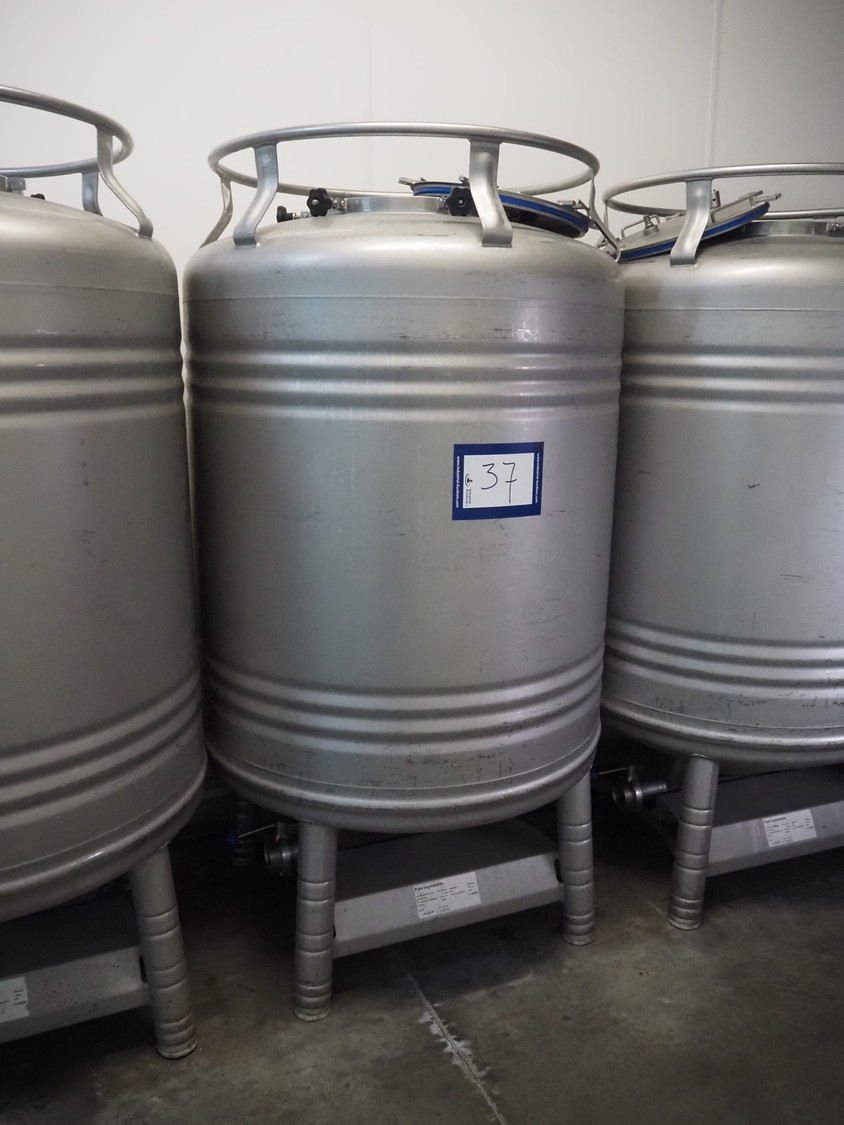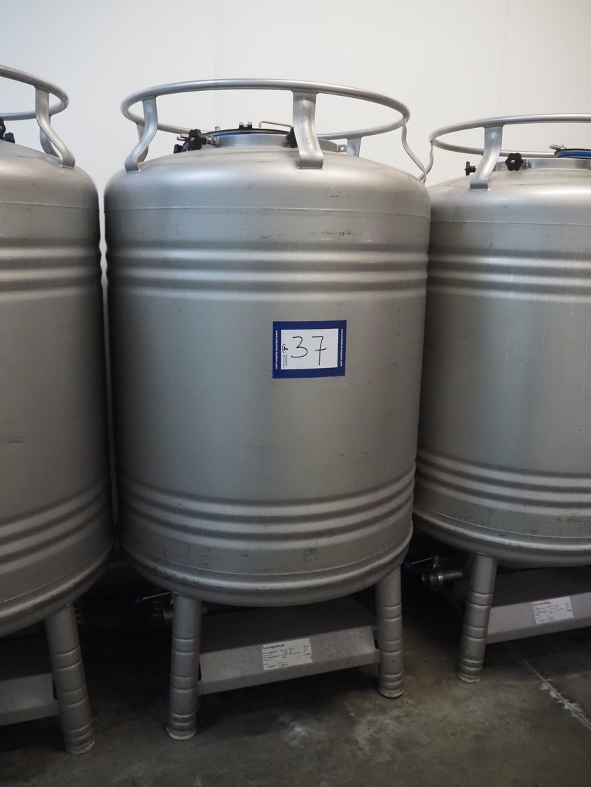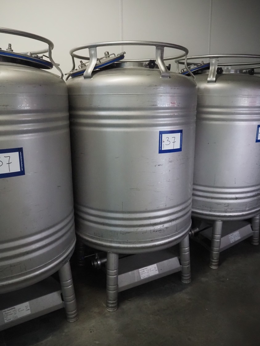 3 pcs. Automationstechnik GmbH s/s tanks, year of construction: 2019, maximum allowed pressure: + 2.0 bar / -0.15 bar, test pressure: +3.4 bar, maximum allowed pressure: +130 / -10˚C, capacity: (3x) 1000 liter, dimensions: (3x) 1000 mm x 1000 mm x 1850 mm.
