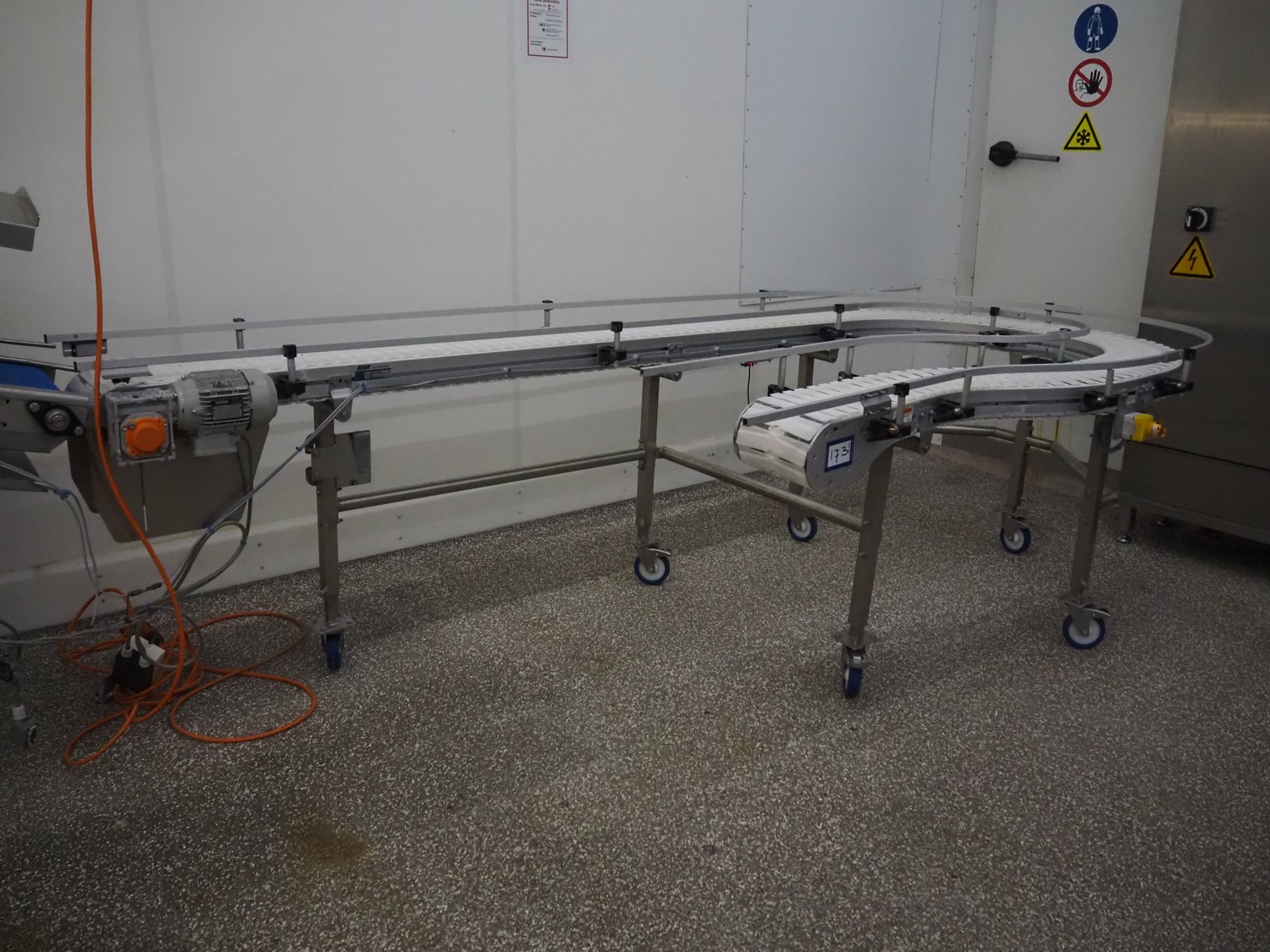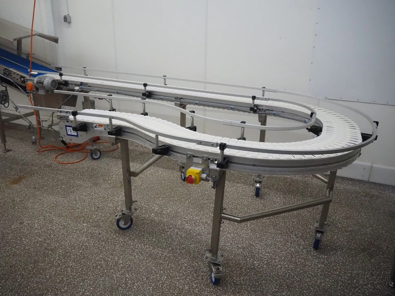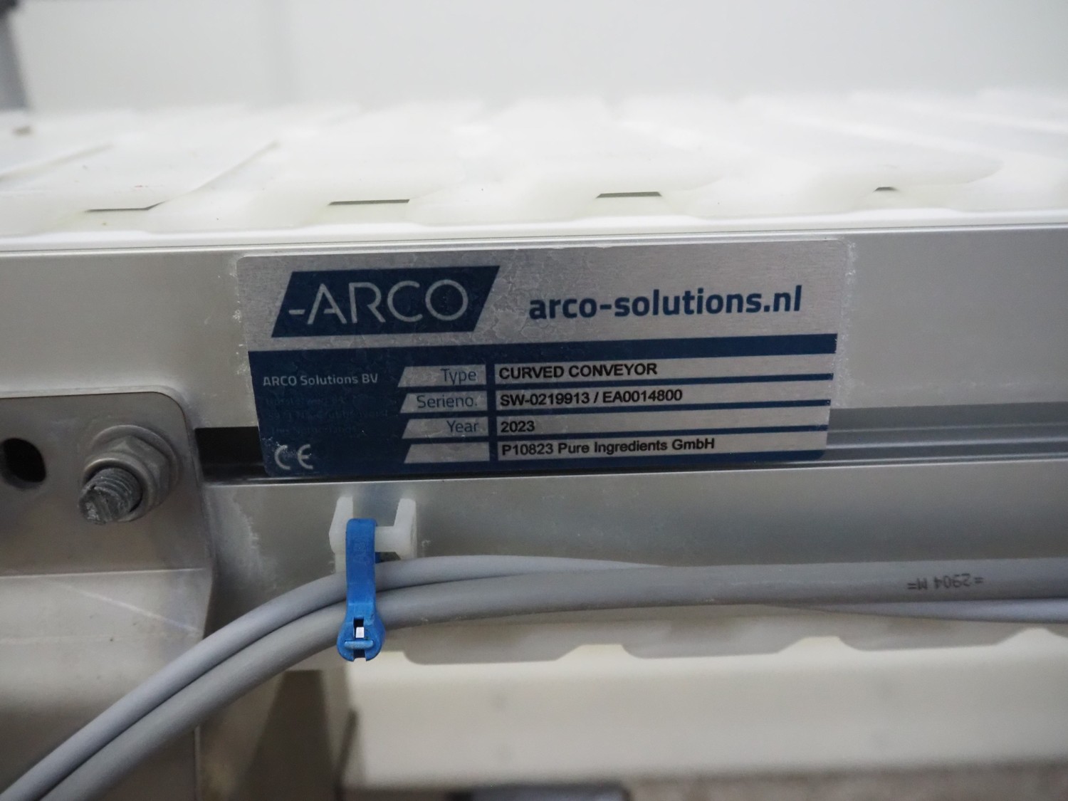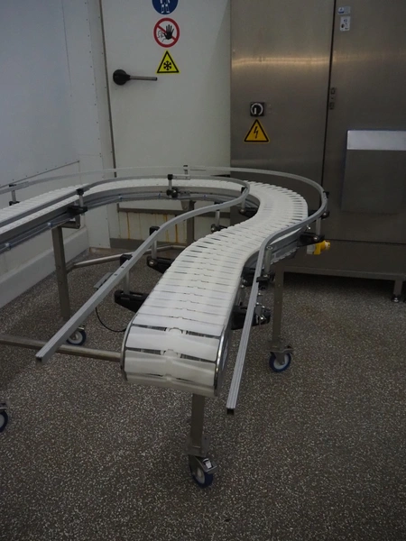 ARCO Solutions BV 180° mobile curve conveyor, s/s frame, type: CURVED CONVEYOR, serial number: SW-0219913 / EA0014800, year of construction: 2023, plastic belt, belt width: 215 mm, total dimensions: 1580 mm x 3300 mm x 1000 mm.