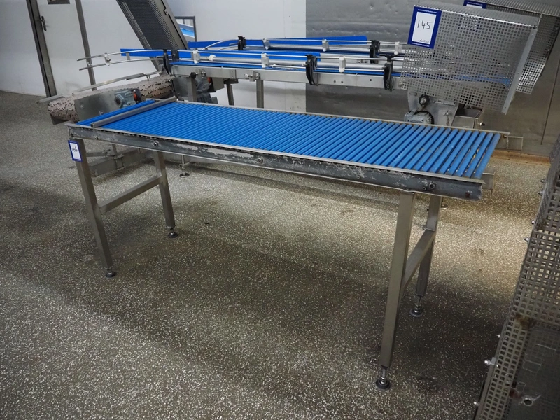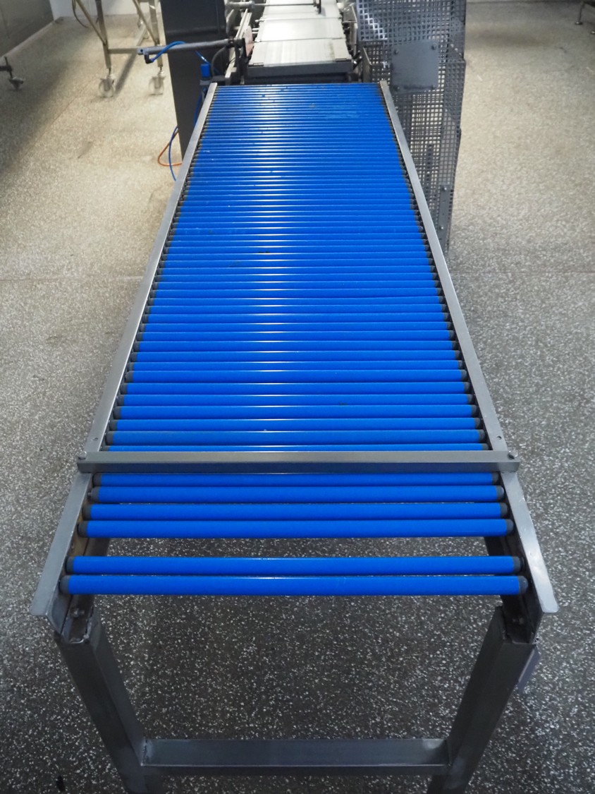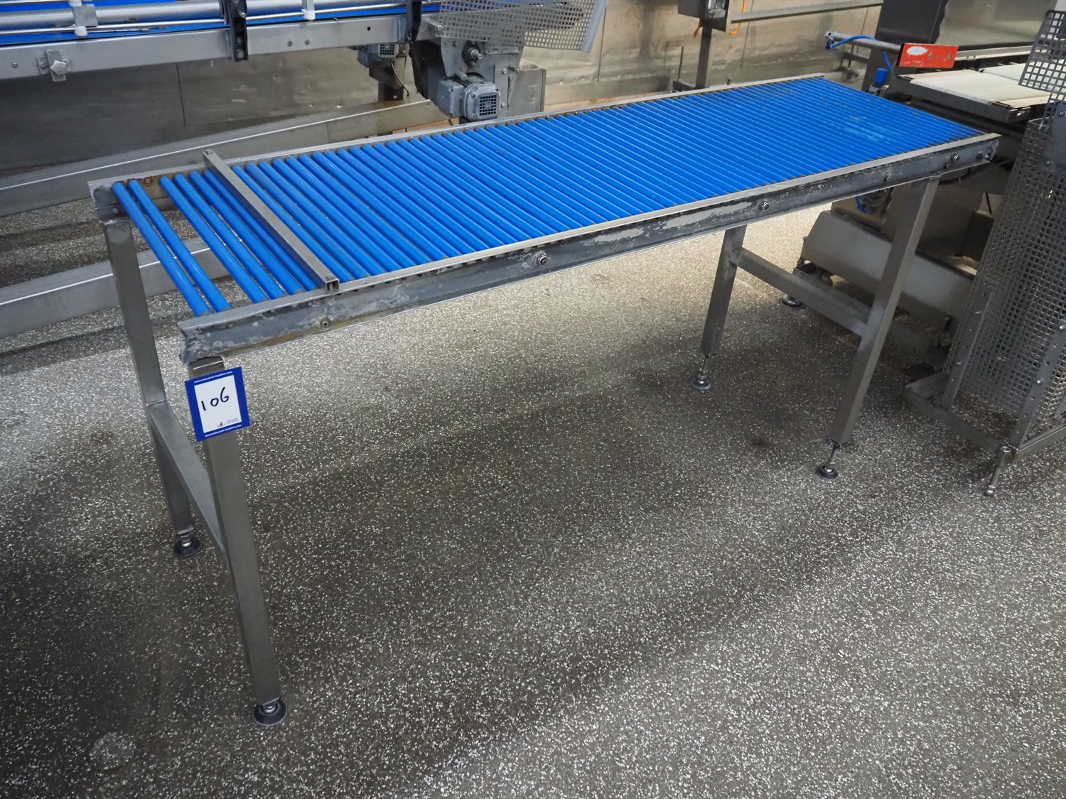 Roller conveyor, s/s frame, plastic rollers, roll width: 500 mm, total dimensions: 1800 mm x 550 mm x 900 mm.