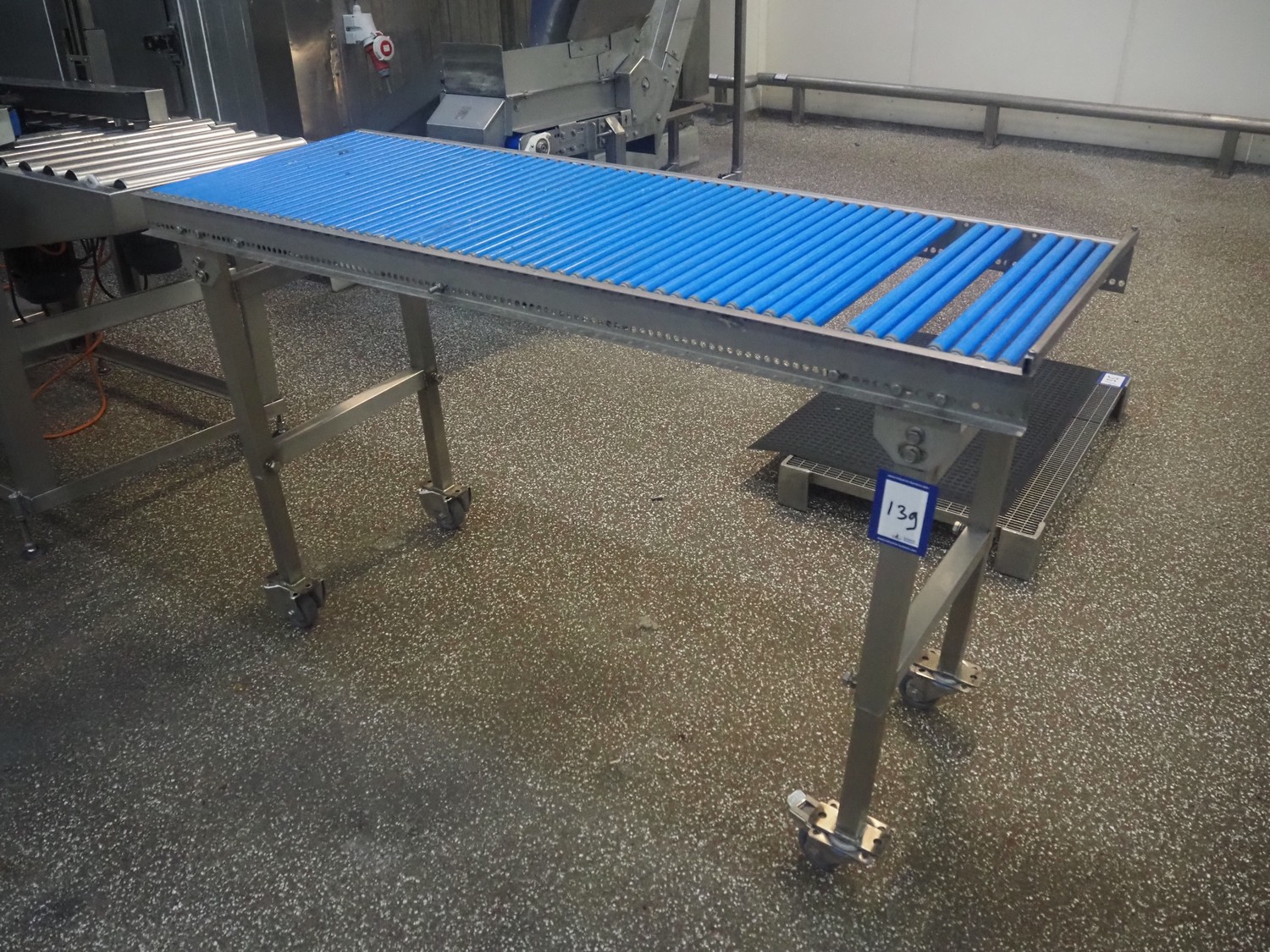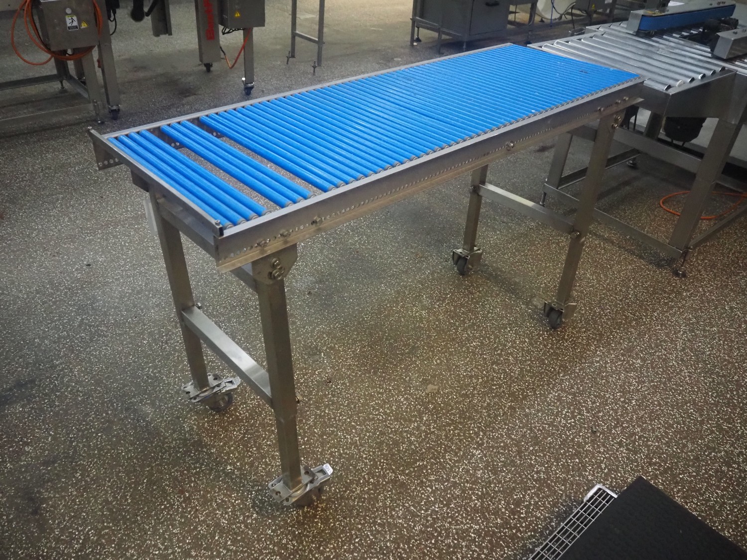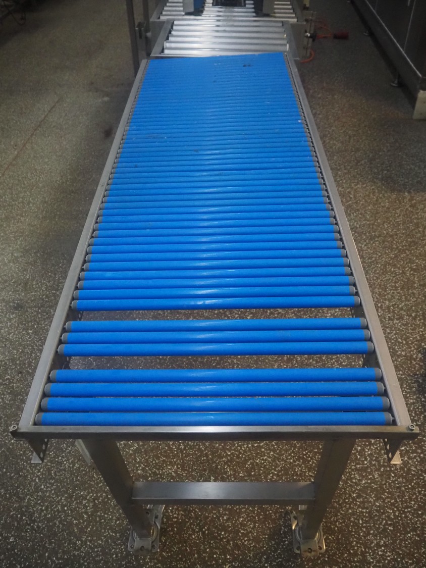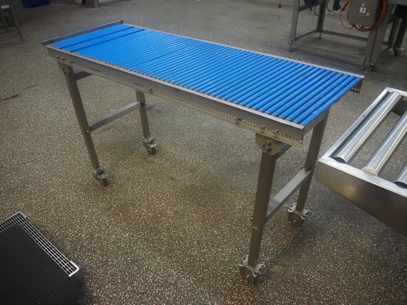 Mobile roller conveyor, s/s frame, plastic rollers, roll width: 500 mm, total dimensions: 1500 mm x 550 mm x 920 mm.