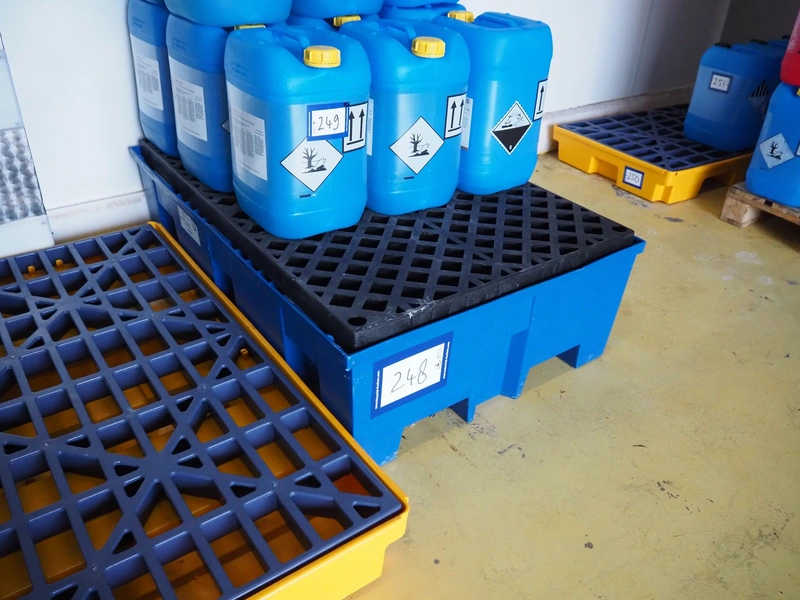 Asecos plastic drip tray, type: Auffangwanne W.29040, year of construction: 2017, capacity: 220 liter, maximum weight: 760 kg, dimensions: 1250 mm x 870 mm x 400 mm.