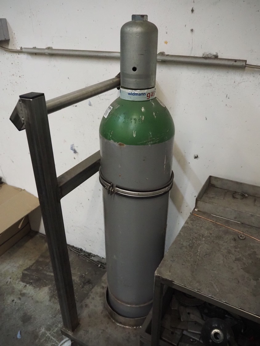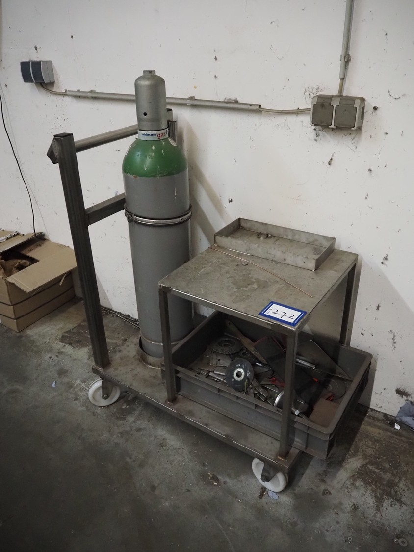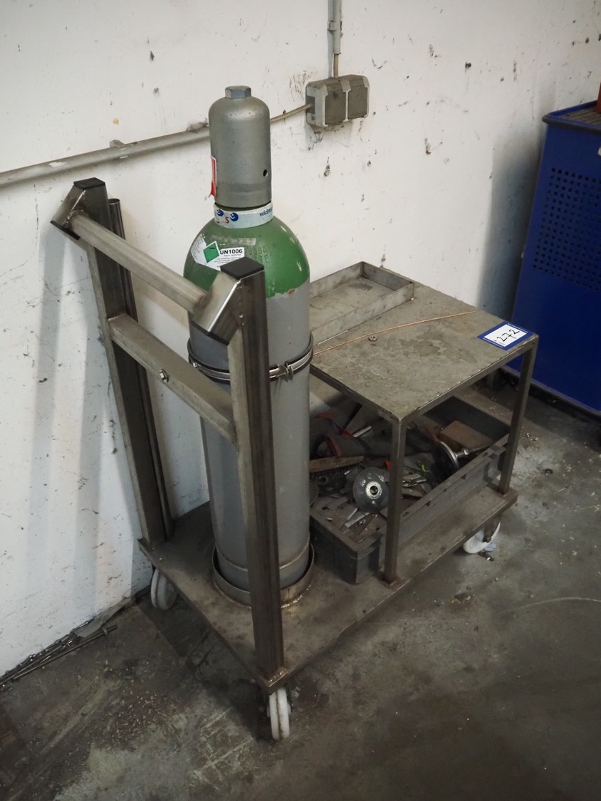 S/s welding trolley with gas cylinder, dimensions; 850 mm x 460 mm x 1200 mm.