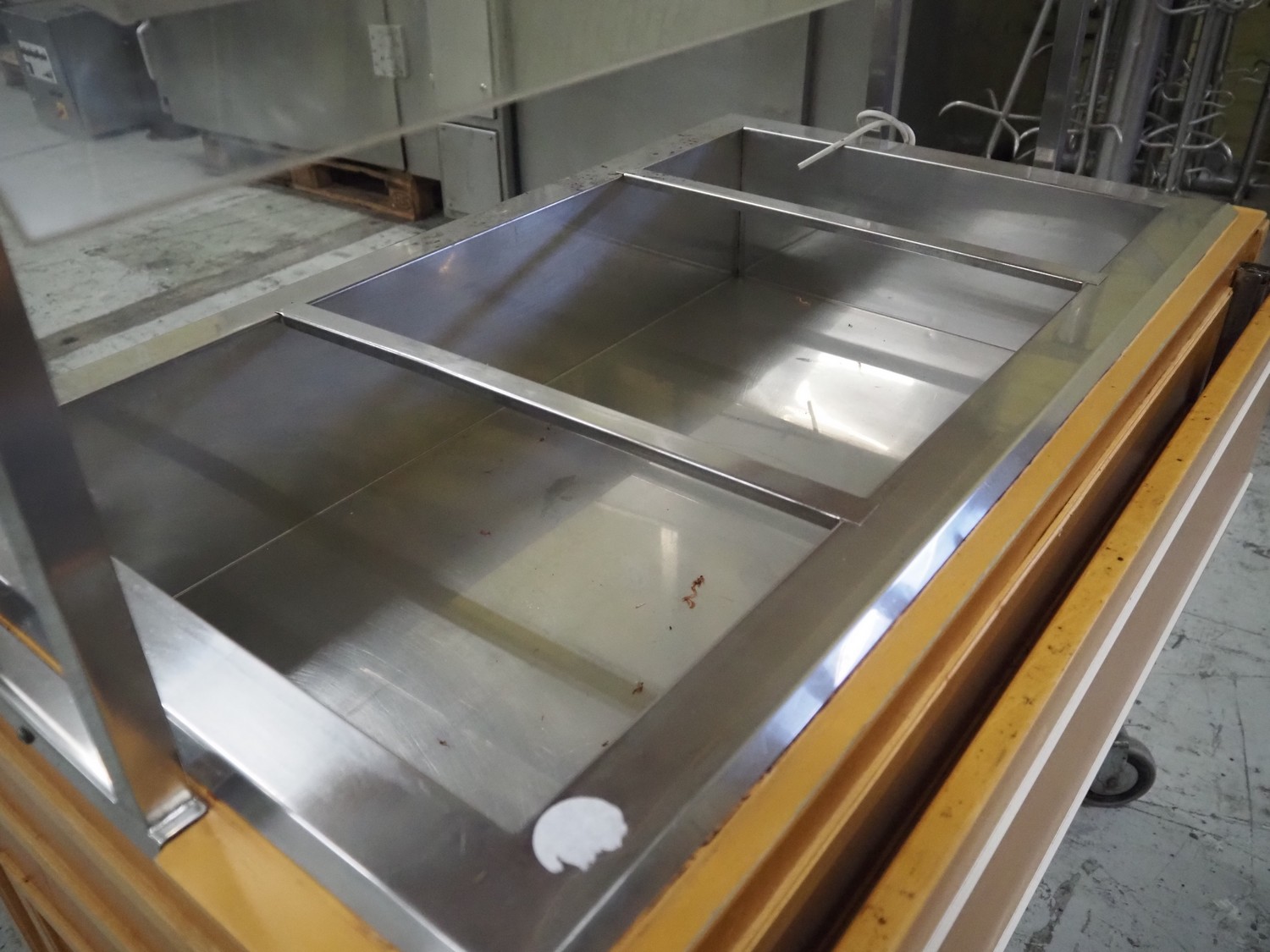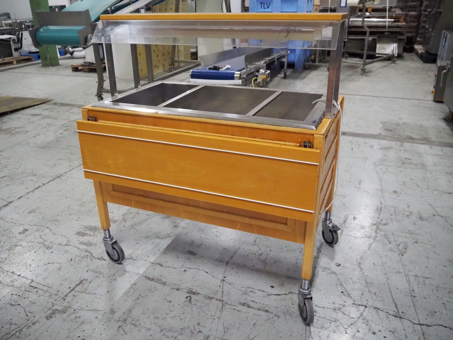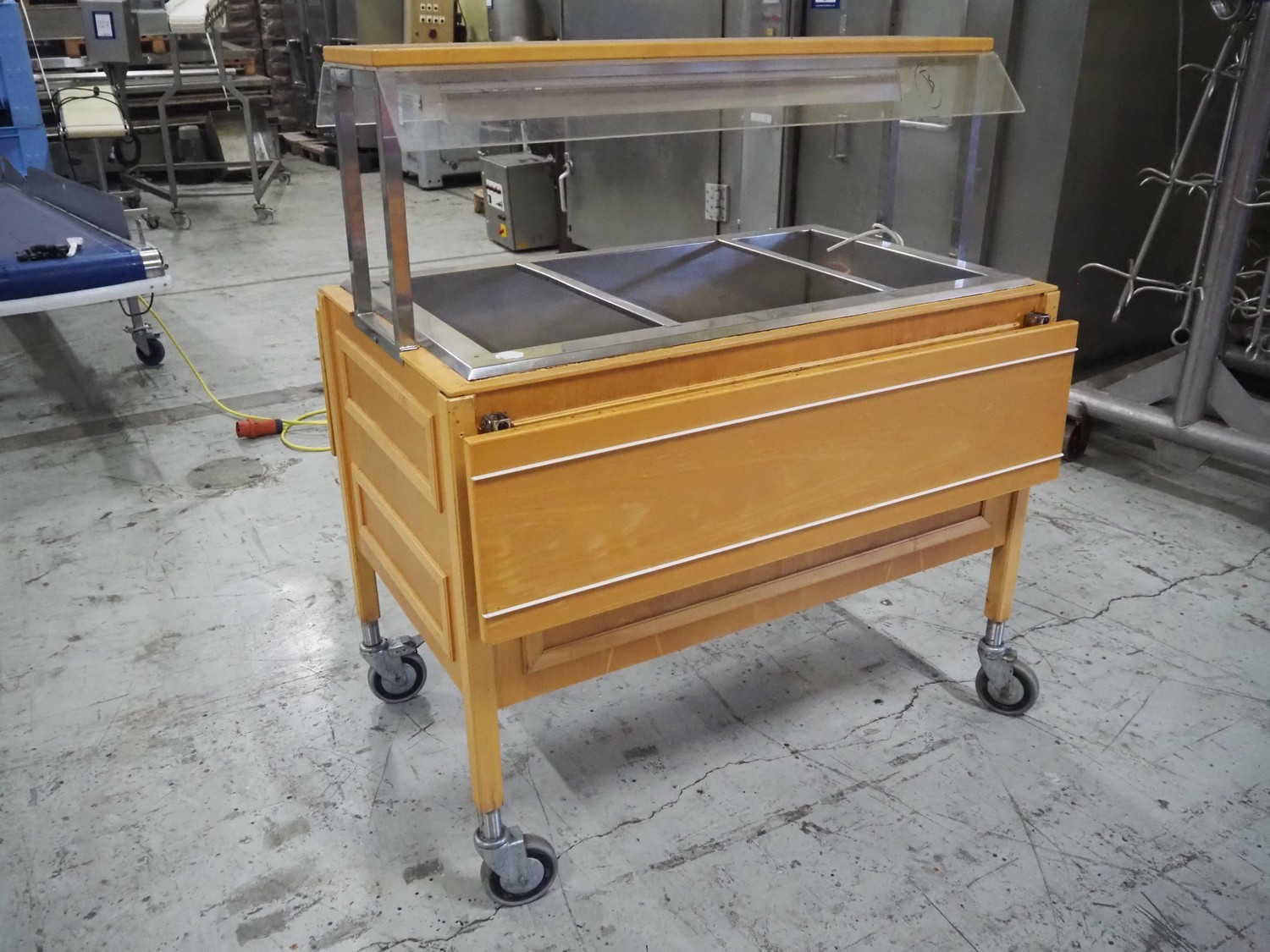 Refrigerated buffet trolley, dimensions: 1150 mm x 1300 mm x 1300 mm.
