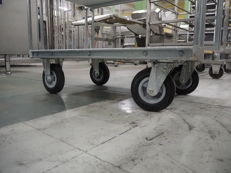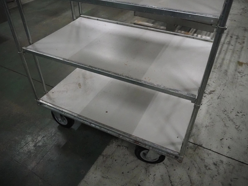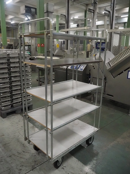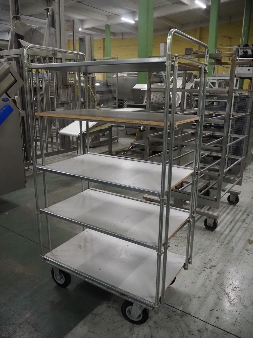 S/s trolley with 5 floors, floor dimensions: 990 mm x 610 mm, total dimensions: 1040 mm x 640 mm x 1860 mm.