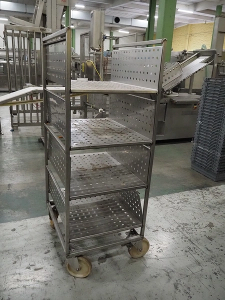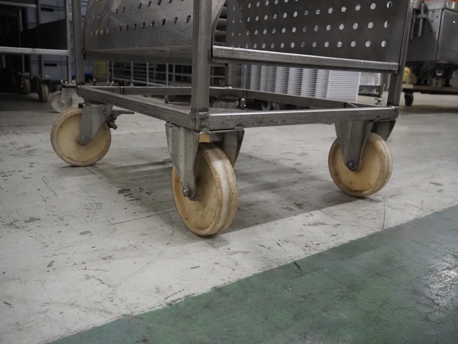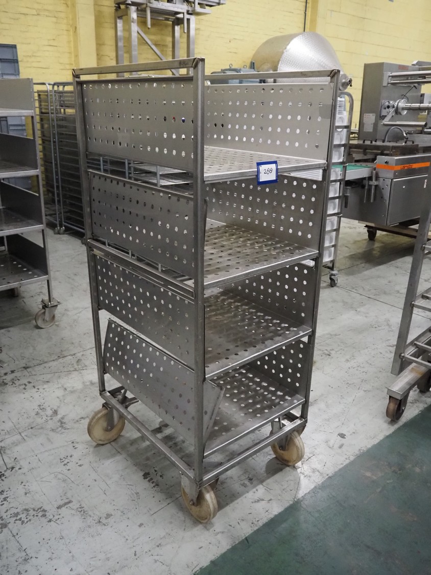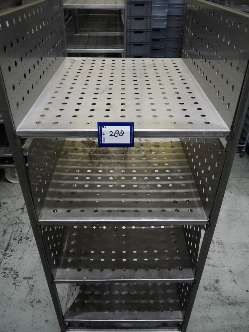 12 s/s trolleys with 4 floors, floor dimensions: 800 mm x 590 mm, total dimensions: (12x) 800 mm x 650 mm x 1580 mm.