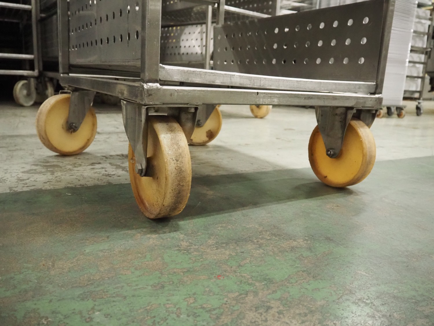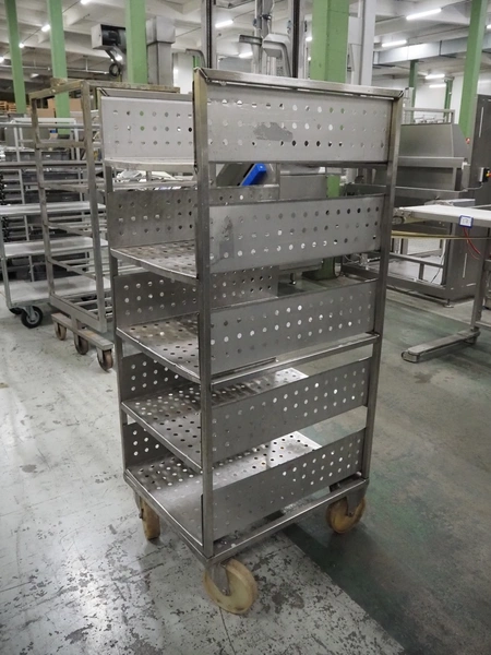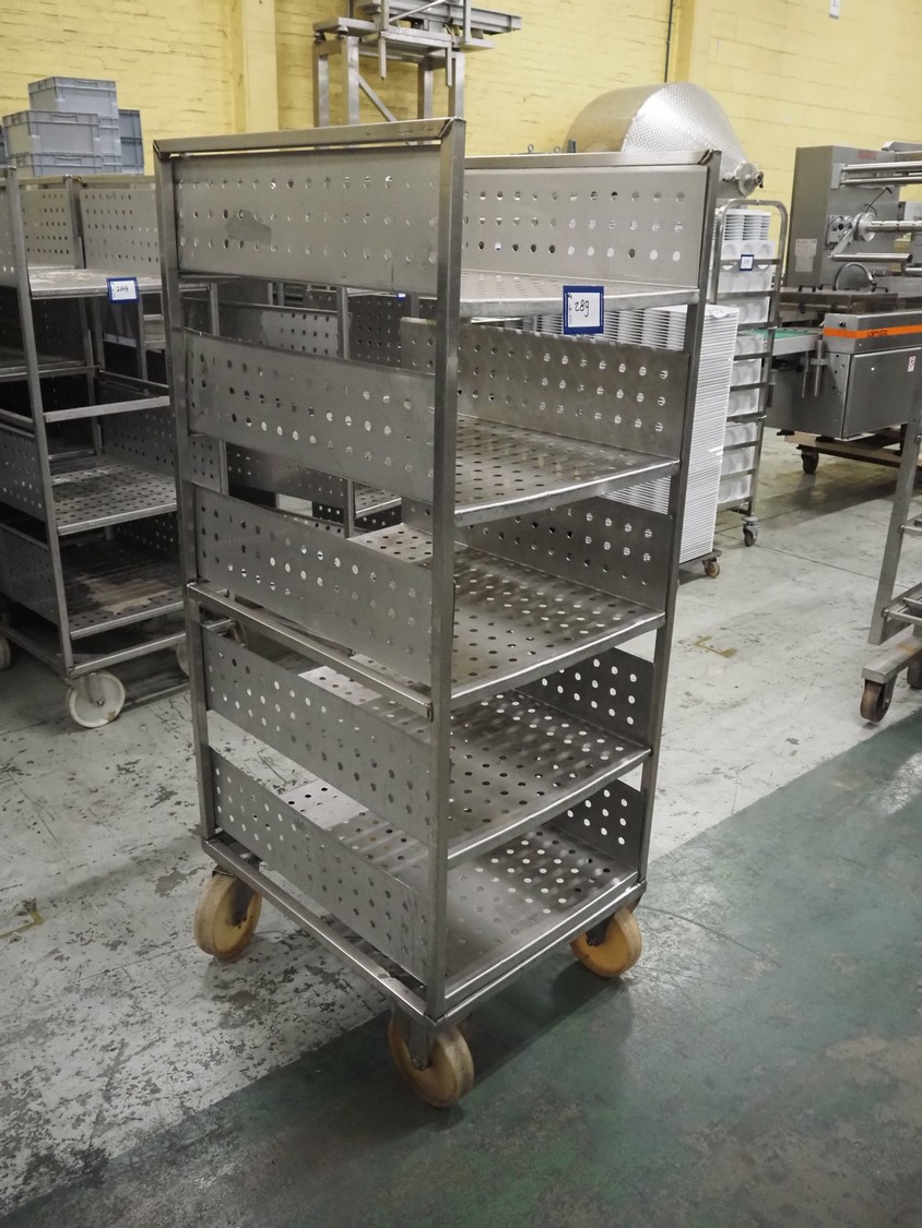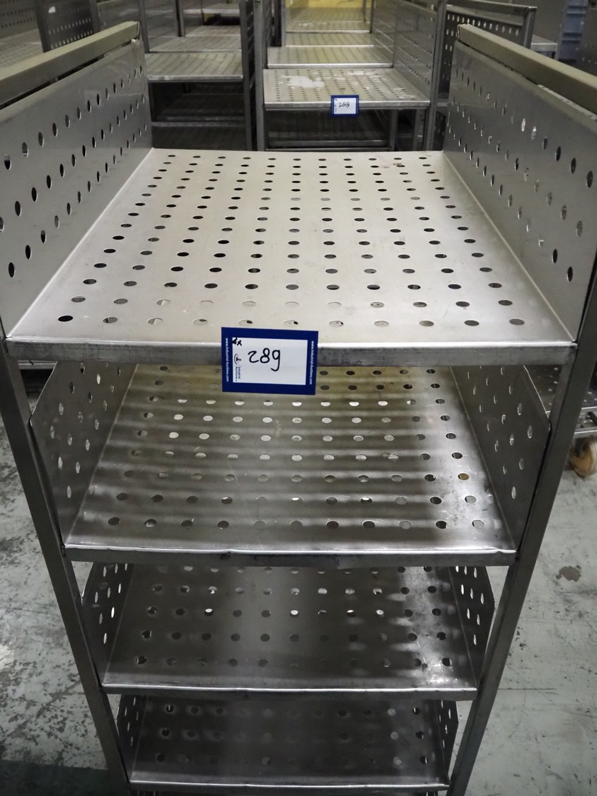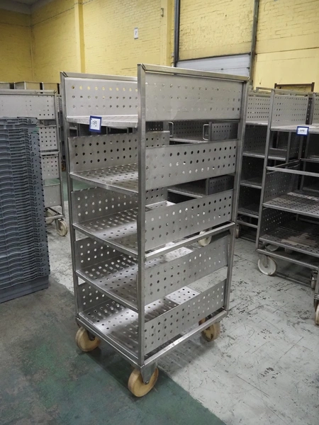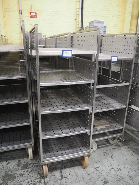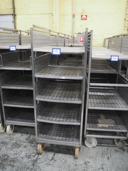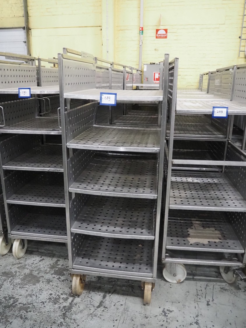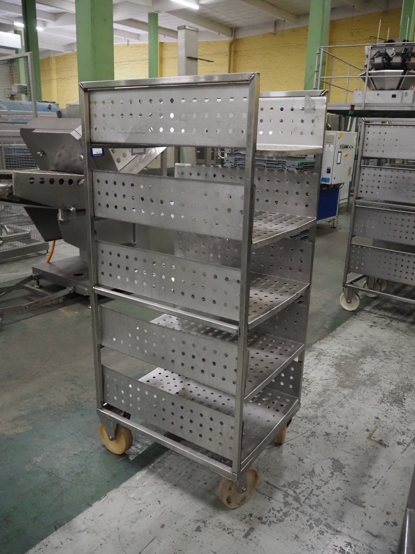 6 s/s trolleys with 4 floors, floor dimensions: 800 mm x 590 mm, total dimensions: (6x) 800 mm x 650 mm x 1580 mm.