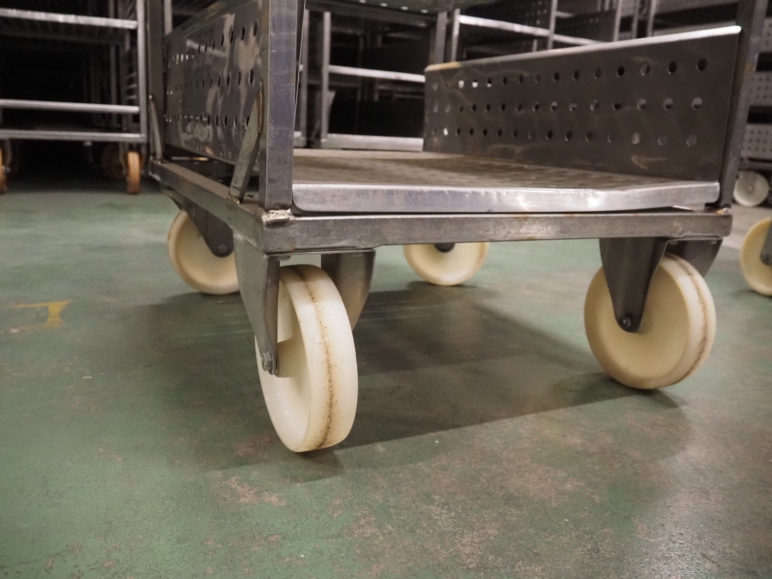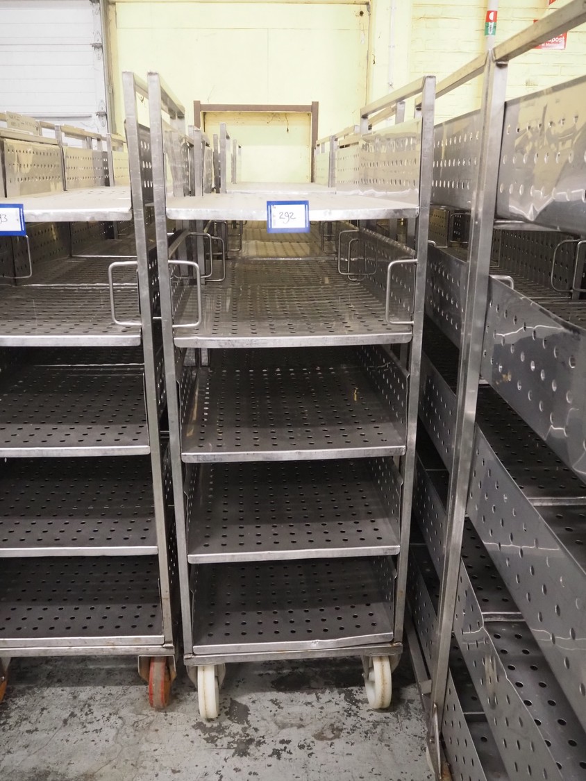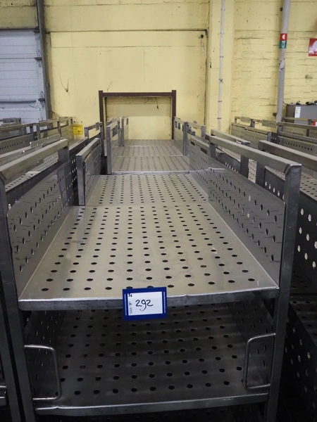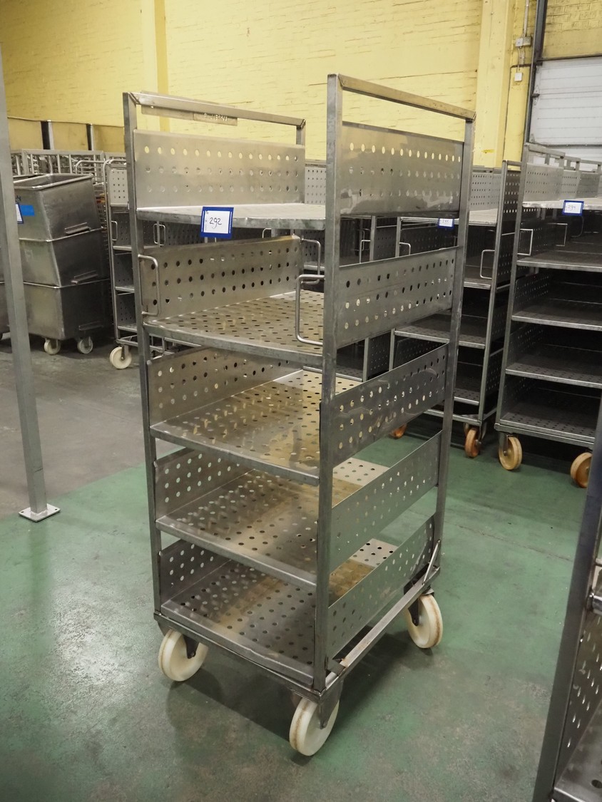 5 s/s trolleys with 4 floors, floor dimensions: 800 mm x 590 mm, total dimensions: (5x) 800 mm x 650 mm x 1580 mm.