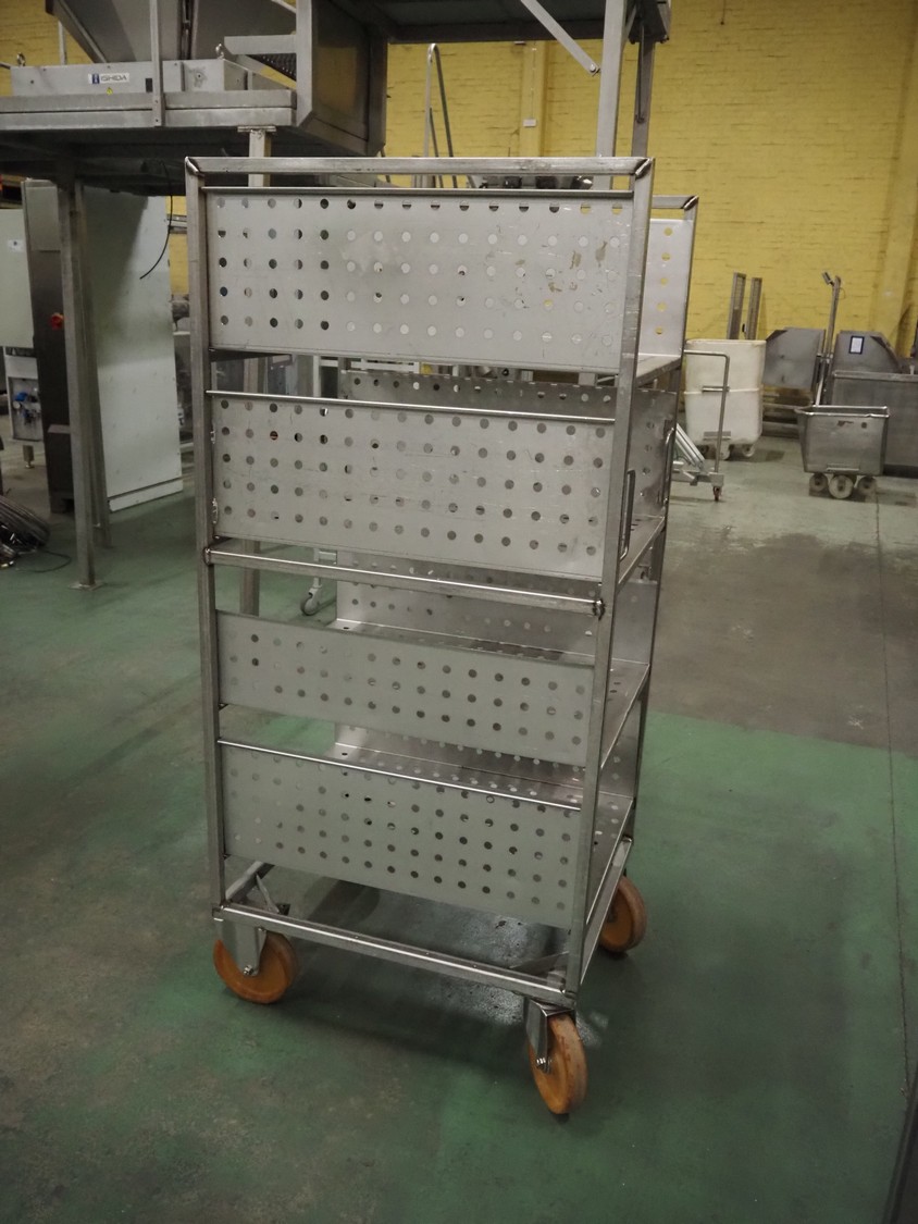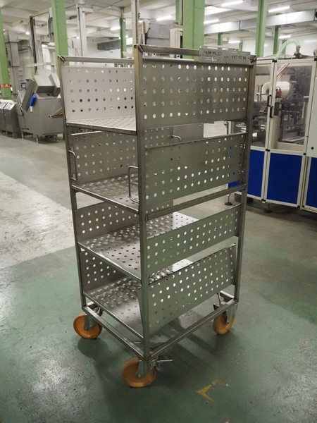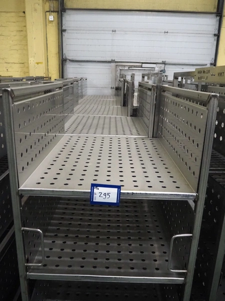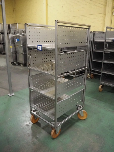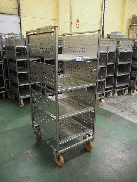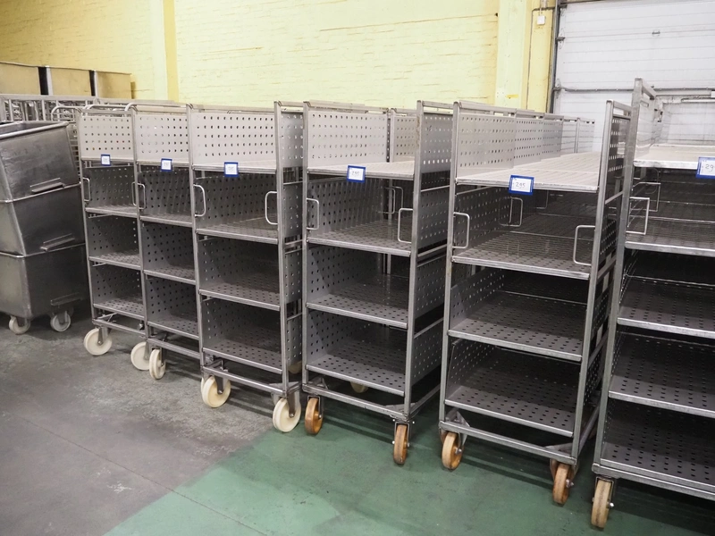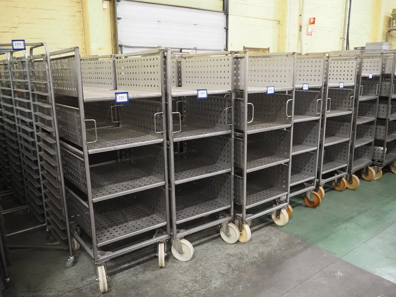 25 s/s trolleys with 4 floors, floor dimensions: 800 mm x 590 mm, total dimensions: (25x) 800 mm x 650 mm x 1580 mm.