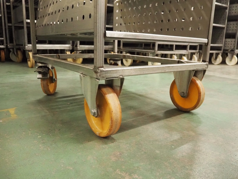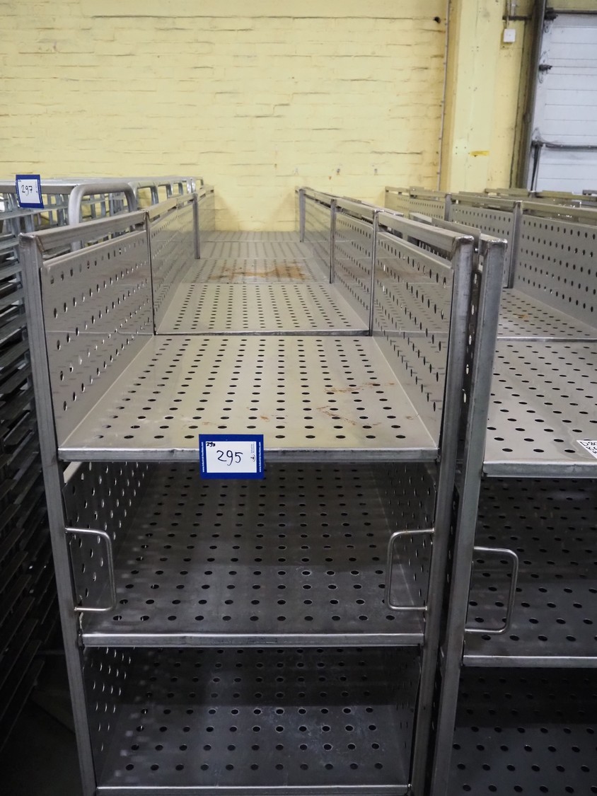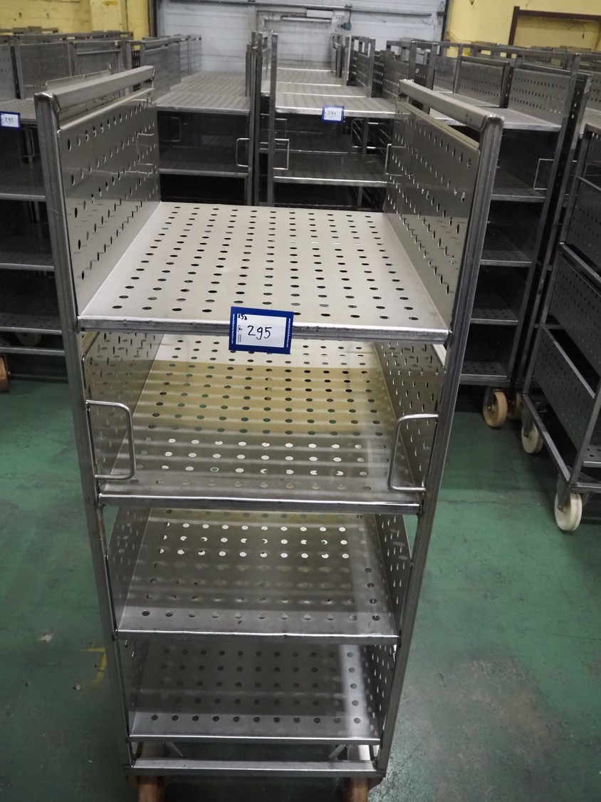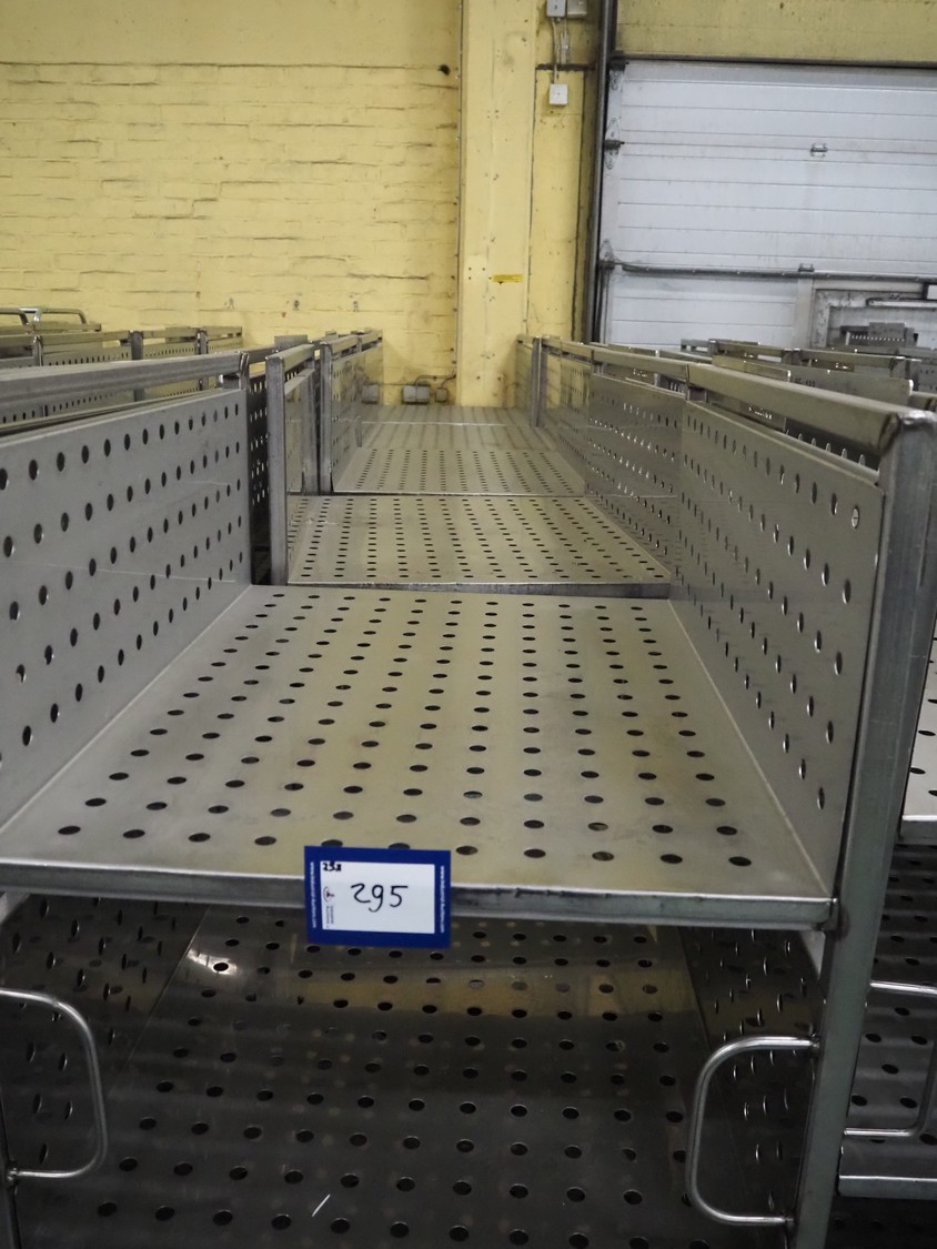 25 s/s trolleys with 4 floors, floor dimensions: 800 mm x 590 mm, total dimensions: (25x) 800 mm x 650 mm x 1580 mm.