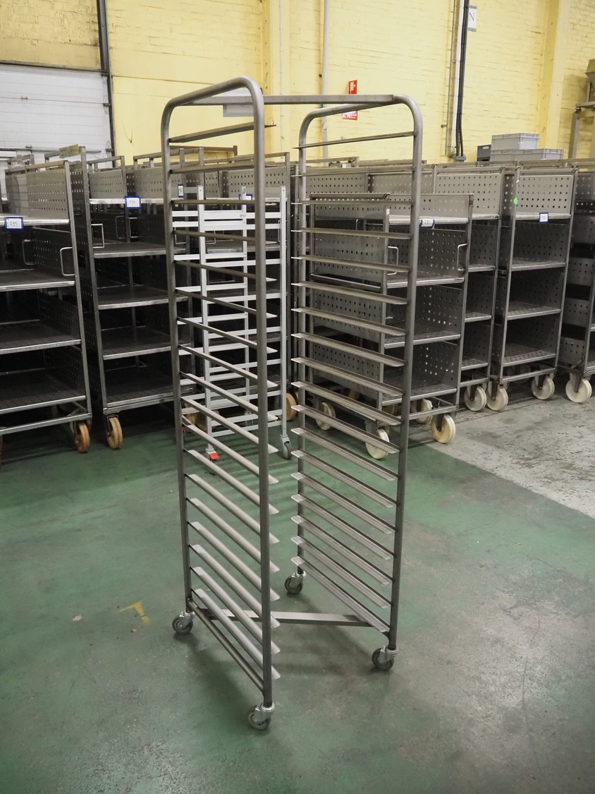 12 s/s trolleys, dimensions: (12x) 590 mm x 520 mm x 1820 mm.