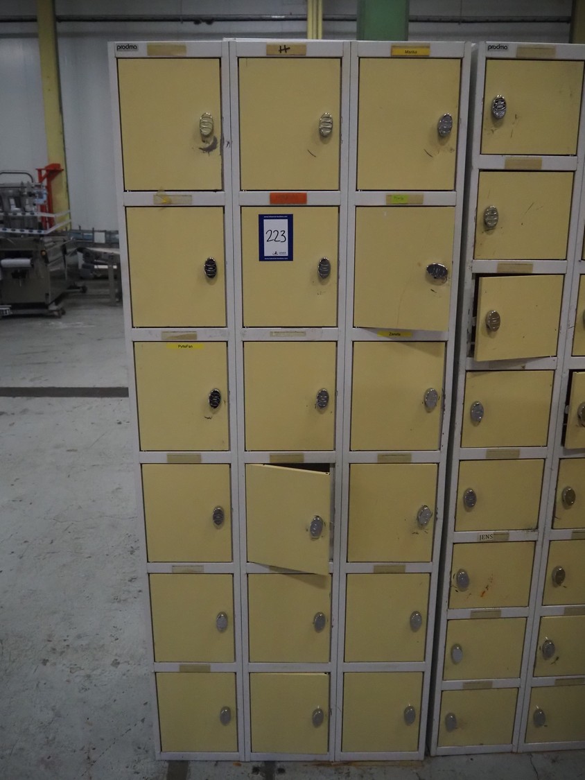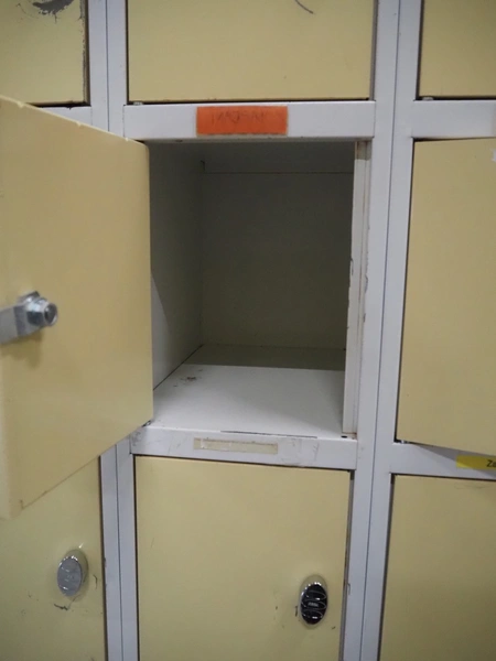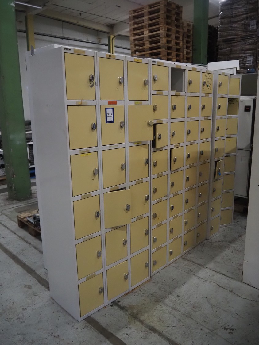 Steel lockers, dimensions: 750 mm x 400 mm x 1800 mm, 980 mm x 400 mm x 800 mm, (2x) 250 mm x 400 mm x 1800 mm.