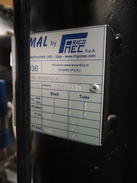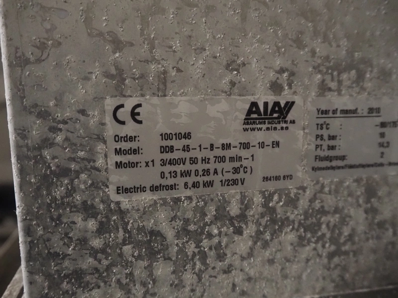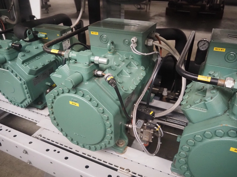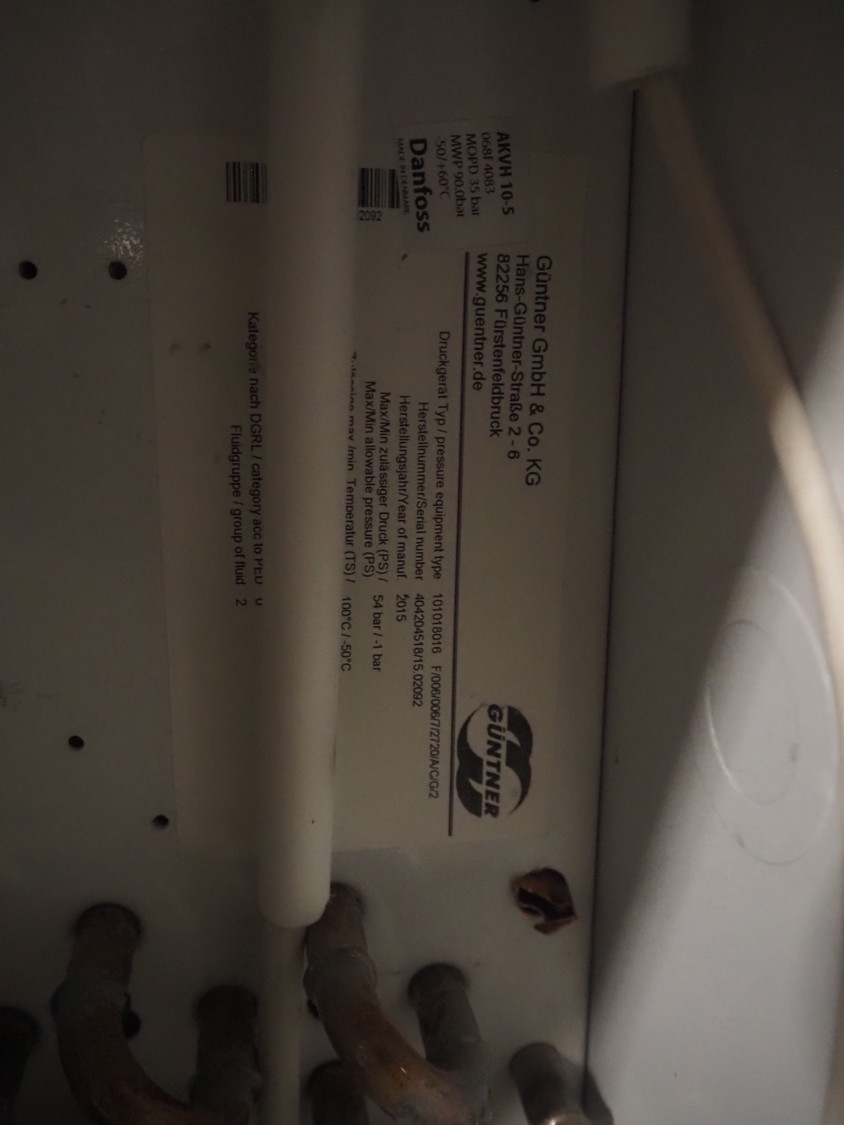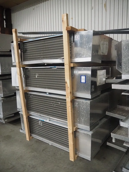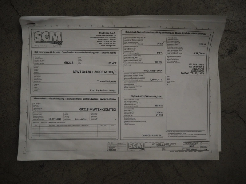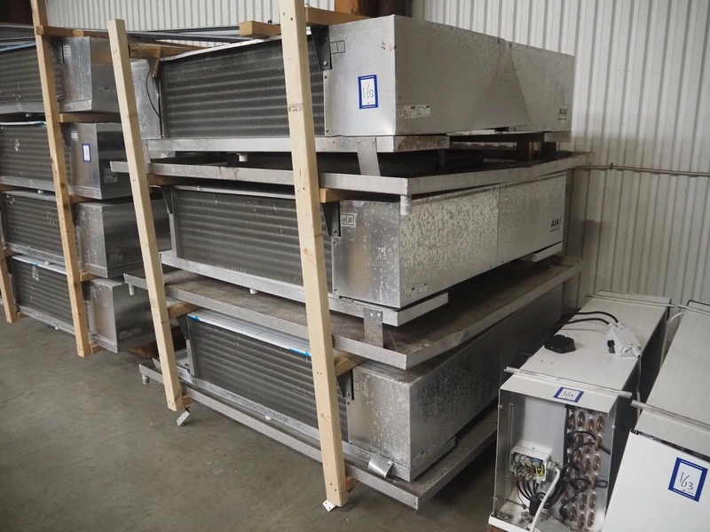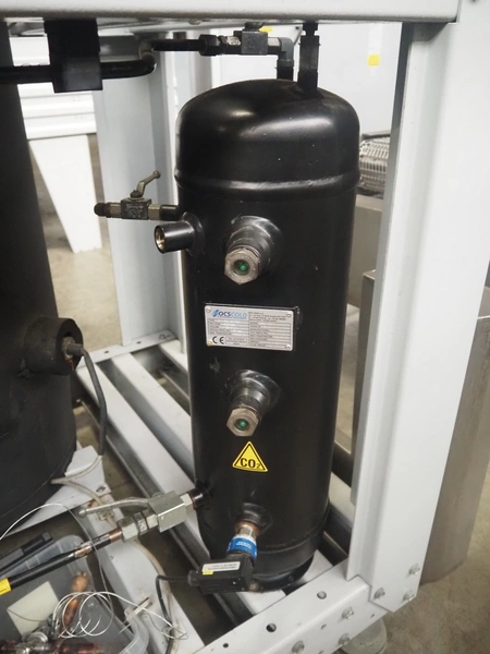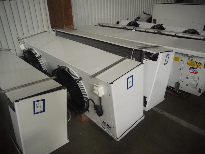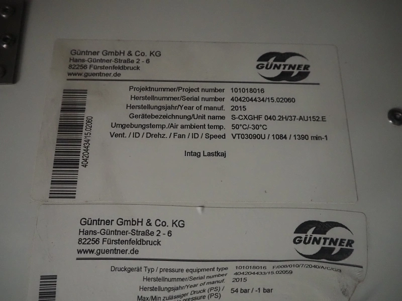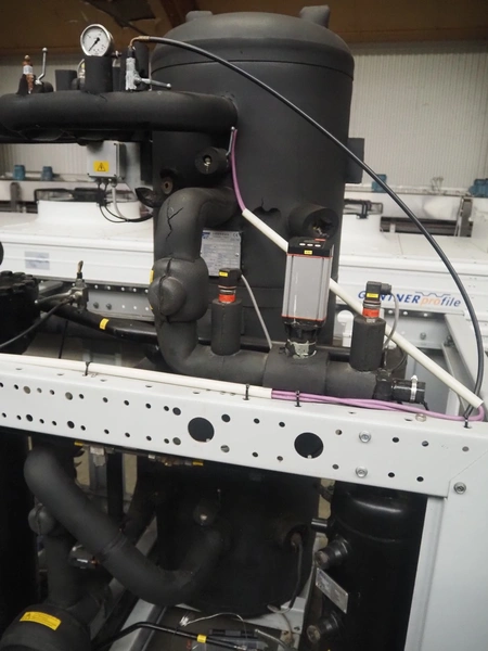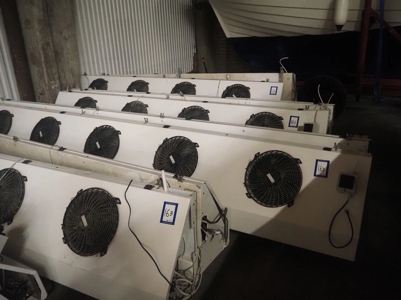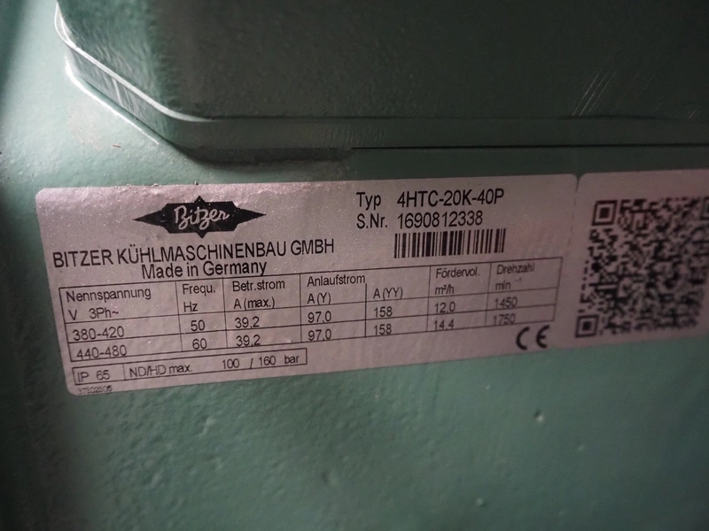 Complete cooling installation consisting of: SCM Frigo S.p.a. cooling compressor rack consisting of 5 Bitzer cooling compressors, type compressors: (3x) 4HTC-15K-40S and (2x) 4HTC-15K-40S, dimensions: 4450 mm x 1000 mm x 2000 mm, Güntner roof condenser, 3 fans, dimensions: 4450 mm x 1000 mm x 2200 mm, 31 evaporators, among others: AIA, Searle and Güntner, dimensions: (11x) 2300 mm x 350 mm x 550 mm, (4x) 2550 mm x 420 mm x 550 mm, (4x) 1500 mm x 400 mm x 520 mm, (1x) 1340 mm x 850 mm x 260 mm, (11x) 1400 mm x 1600 mm x 400 mm, switch cabinet, dimensions: 1000 mm x 1000 mm x 300 mm, pallet with parts.