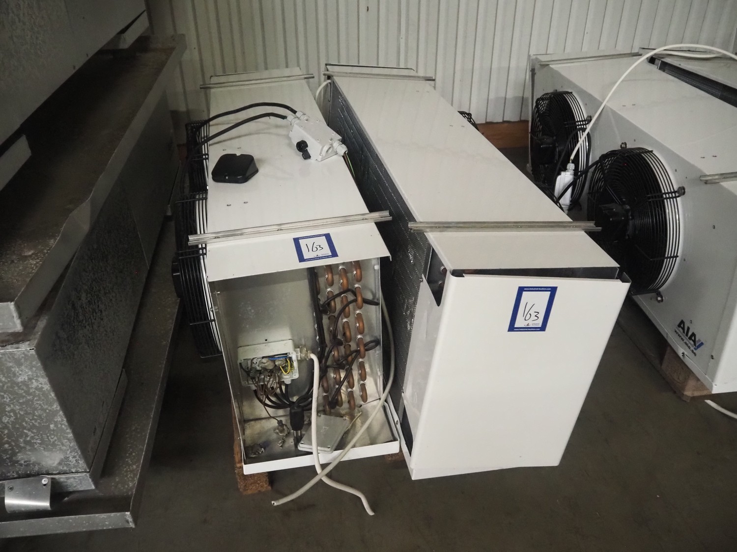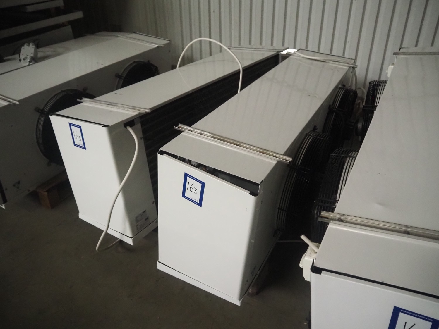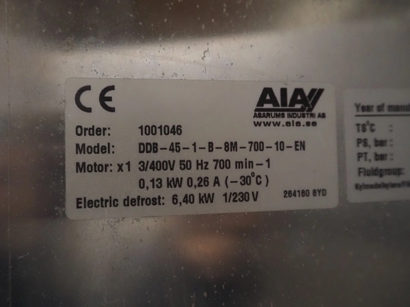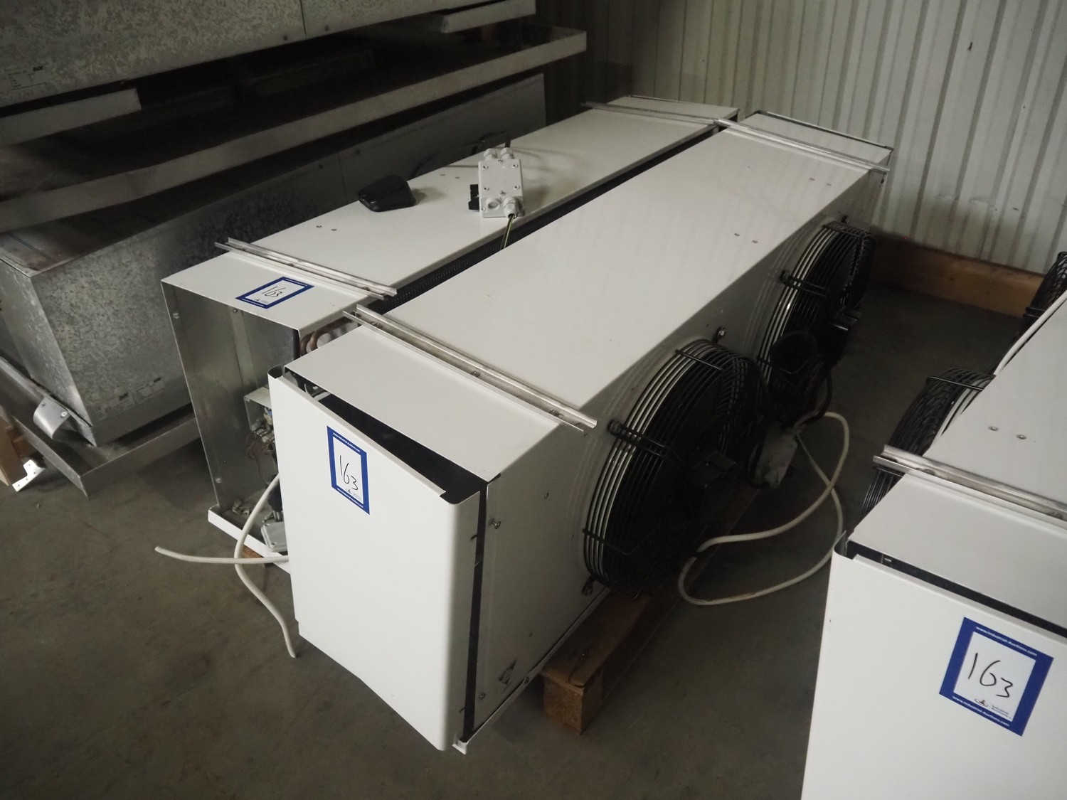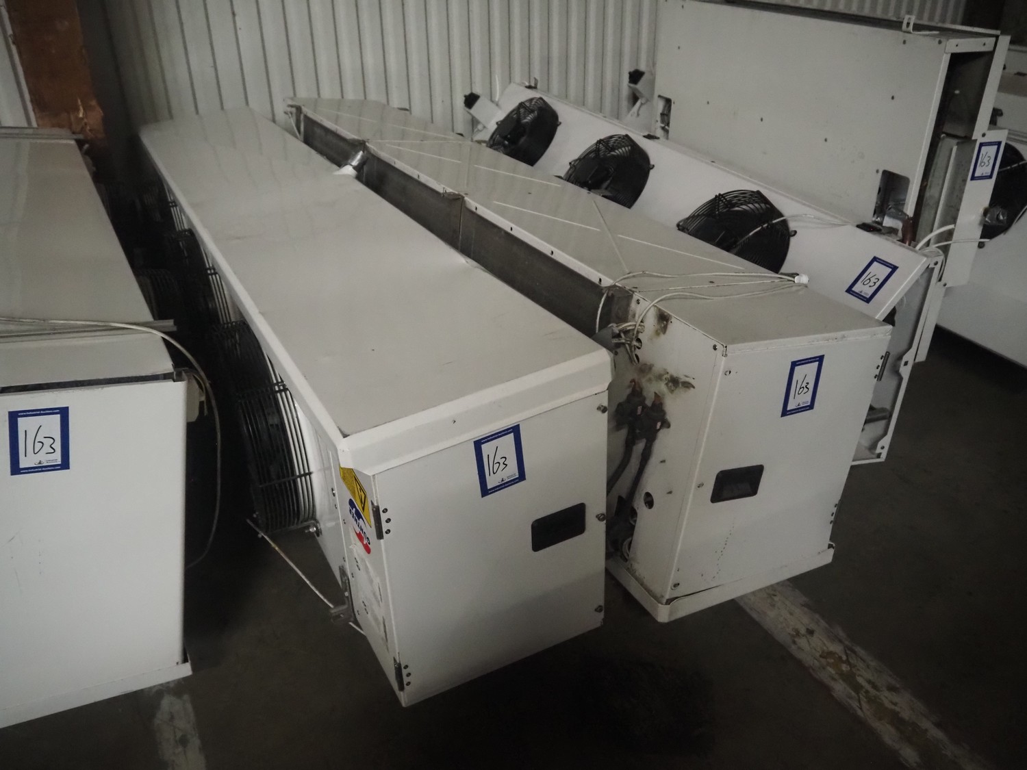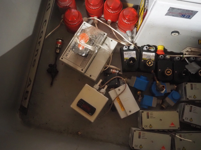 Complete cooling installation consisting of: SCM Frigo S.p.a. cooling compressor rack consisting of 5 Bitzer cooling compressors, type compressors: (3x) 4HTC-15K-40S and (2x) 4HTC-15K-40S, dimensions: 4450 mm x 1000 mm x 2000 mm, Güntner roof condenser, 3 fans, dimensions: 4450 mm x 1000 mm x 2200 mm, 31 evaporators, among others: AIA, Searle and Güntner, dimensions: (11x) 2300 mm x 350 mm x 550 mm, (4x) 2550 mm x 420 mm x 550 mm, (4x) 1500 mm x 400 mm x 520 mm, (1x) 1340 mm x 850 mm x 260 mm, (11x) 1400 mm x 1600 mm x 400 mm, switch cabinet, dimensions: 1000 mm x 1000 mm x 300 mm, pallet with parts.