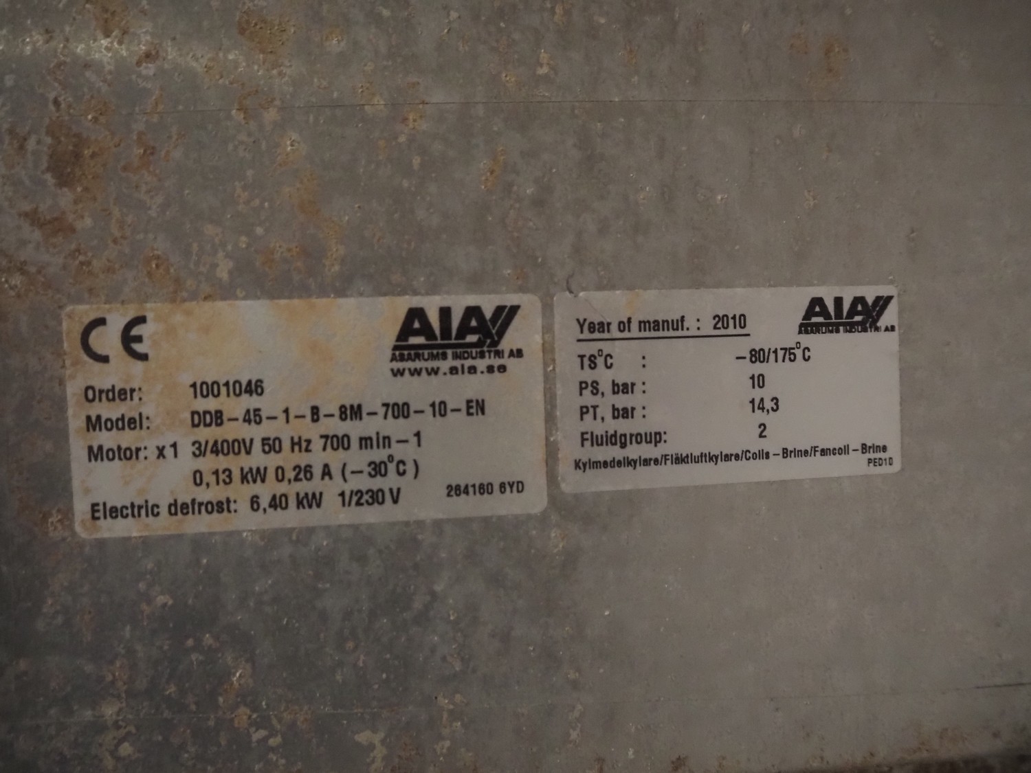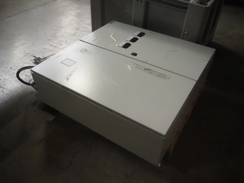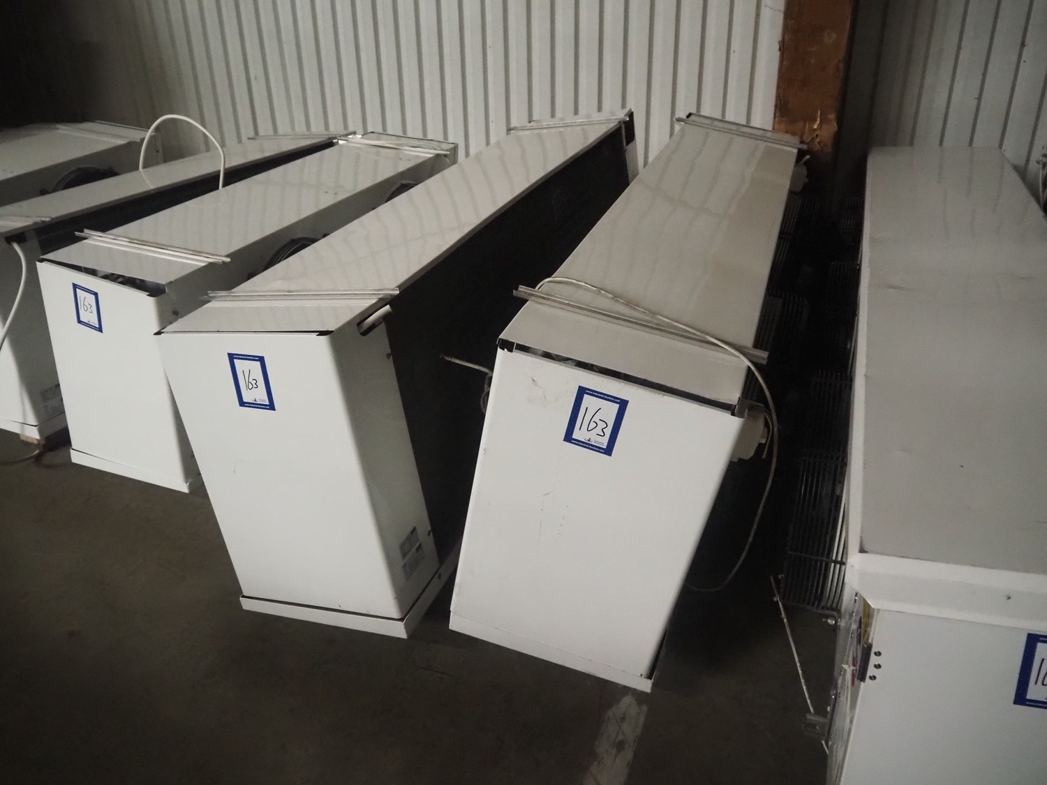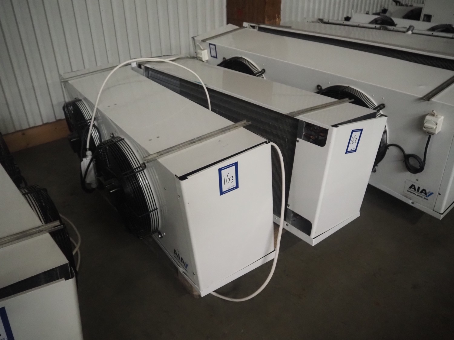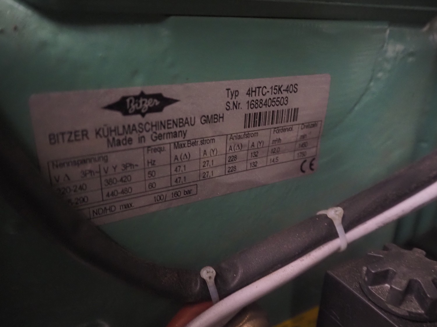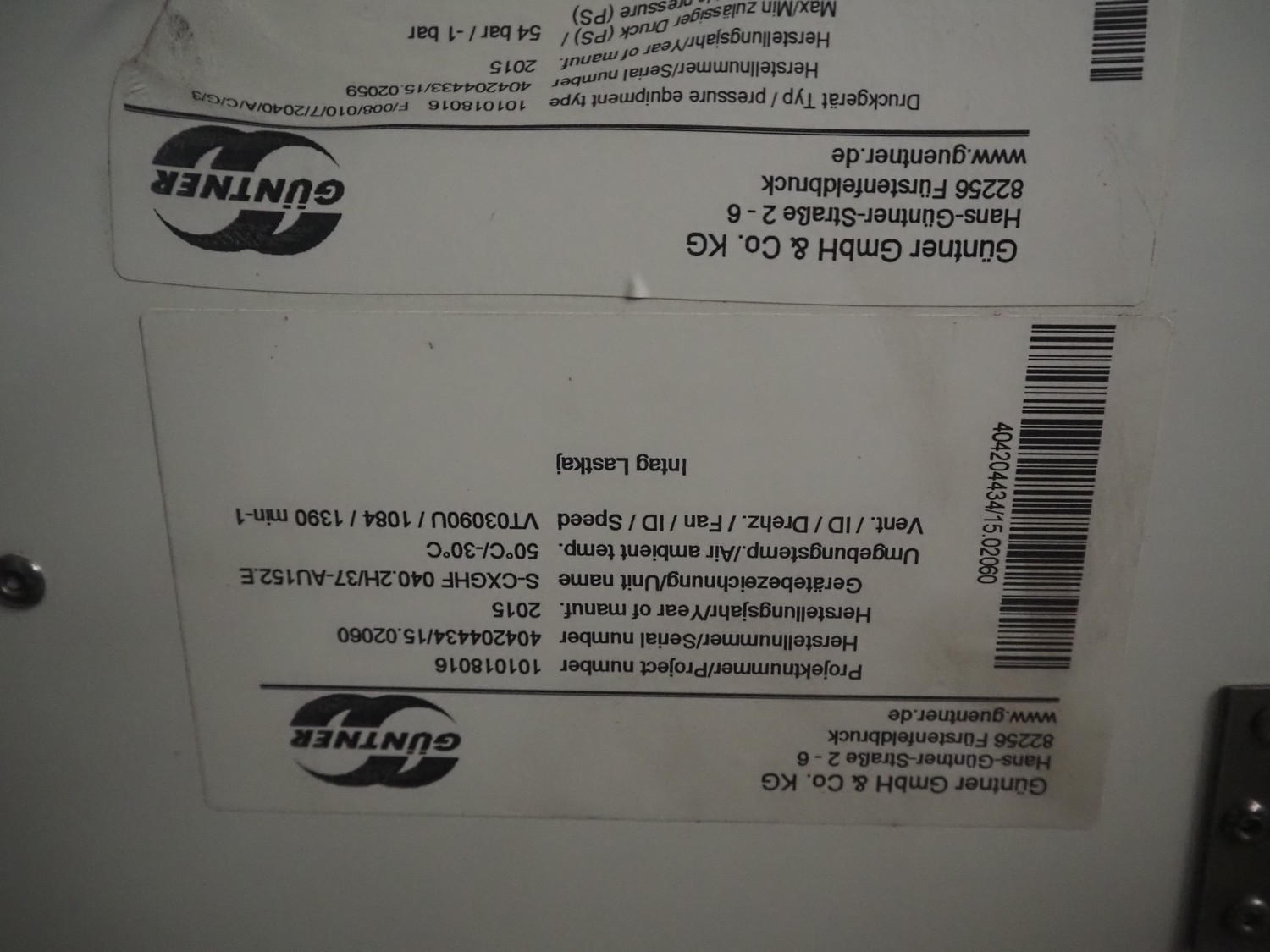 Complete cooling installation consisting of: SCM Frigo S.p.a. cooling compressor rack consisting of 5 Bitzer cooling compressors, type compressors: (3x) 4HTC-15K-40S and (2x) 4HTC-15K-40S, dimensions: 4450 mm x 1000 mm x 2000 mm, Güntner roof condenser, 3 fans, dimensions: 4450 mm x 1000 mm x 2200 mm, 31 evaporators, among others: AIA, Searle and Güntner, dimensions: (11x) 2300 mm x 350 mm x 550 mm, (4x) 2550 mm x 420 mm x 550 mm, (4x) 1500 mm x 400 mm x 520 mm, (1x) 1340 mm x 850 mm x 260 mm, (11x) 1400 mm x 1600 mm x 400 mm, switch cabinet, dimensions: 1000 mm x 1000 mm x 300 mm, pallet with parts.