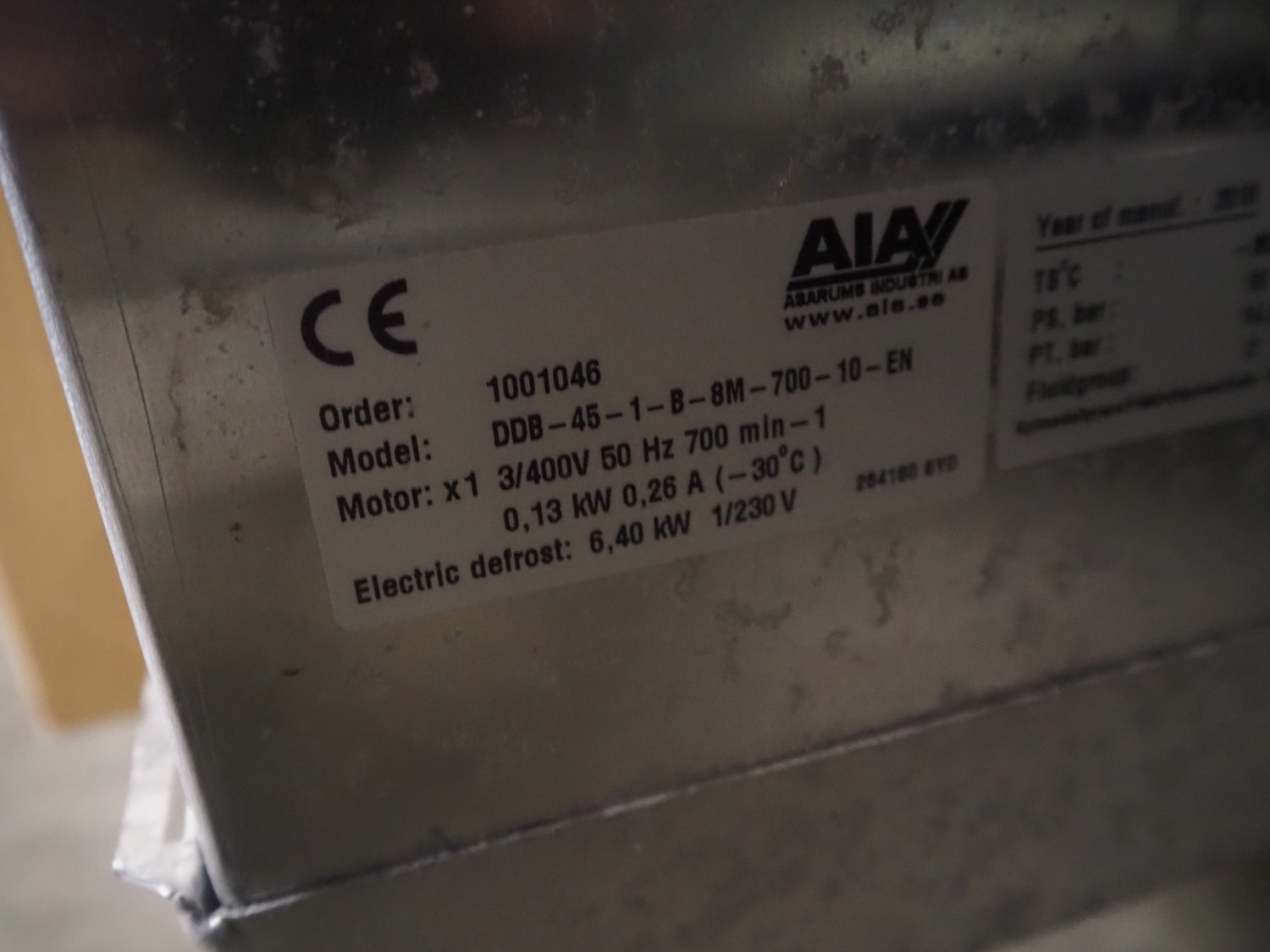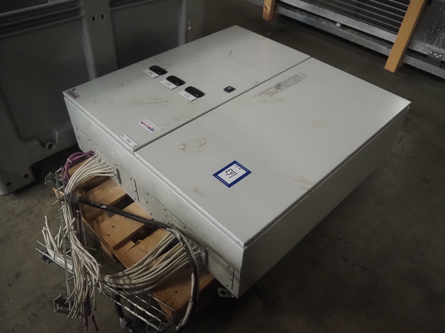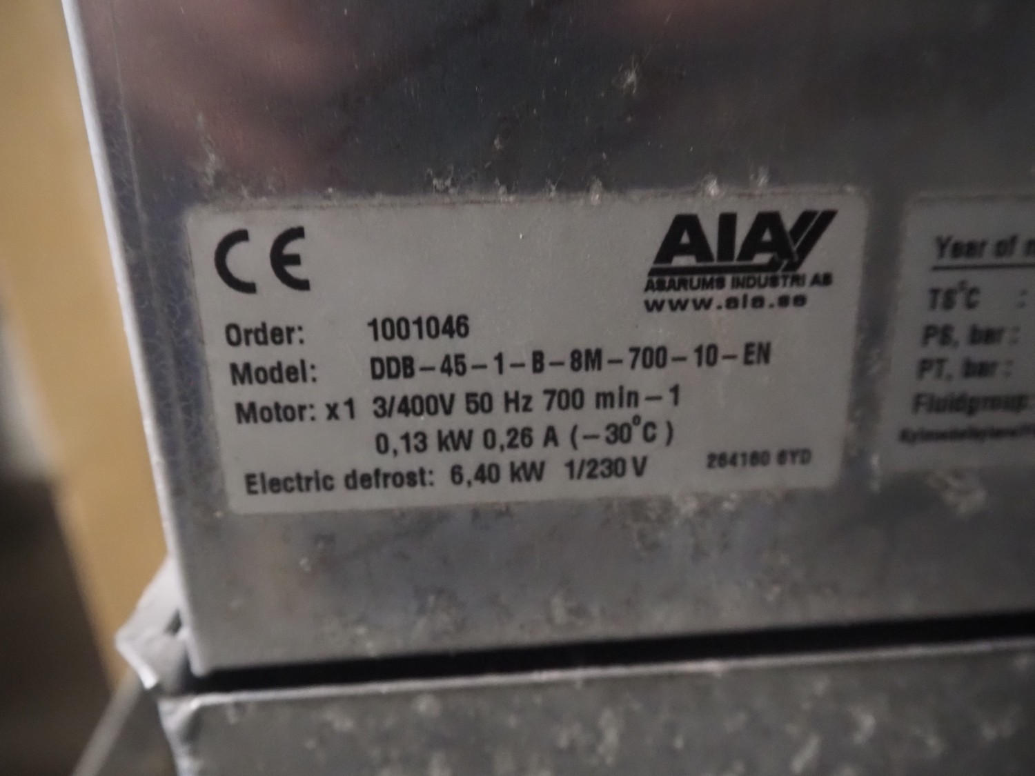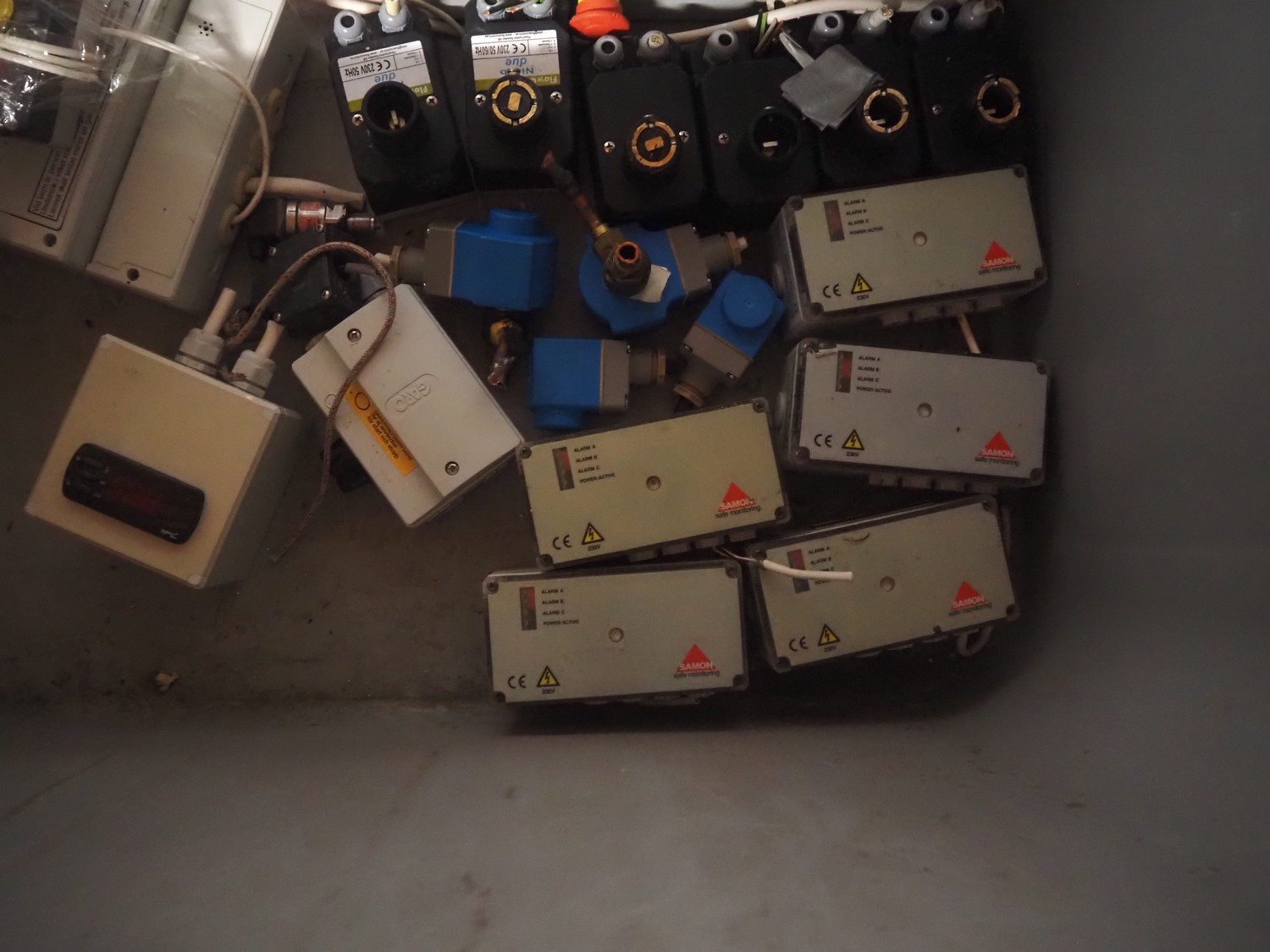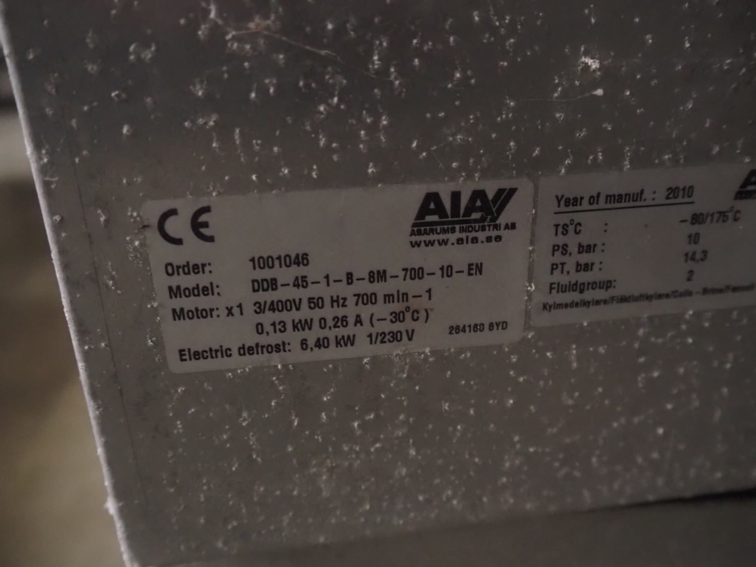 Complete cooling installation consisting of: SCM Frigo S.p.a. cooling compressor rack consisting of 5 Bitzer cooling compressors, type compressors: (3x) 4HTC-15K-40S and (2x) 4HTC-15K-40S, dimensions: 4450 mm x 1000 mm x 2000 mm, Güntner roof condenser, 3 fans, dimensions: 4450 mm x 1000 mm x 2200 mm, 31 evaporators, among others: AIA, Searle and Güntner, dimensions: (11x) 2300 mm x 350 mm x 550 mm, (4x) 2550 mm x 420 mm x 550 mm, (4x) 1500 mm x 400 mm x 520 mm, (1x) 1340 mm x 850 mm x 260 mm, (11x) 1400 mm x 1600 mm x 400 mm, switch cabinet, dimensions: 1000 mm x 1000 mm x 300 mm, pallet with parts.