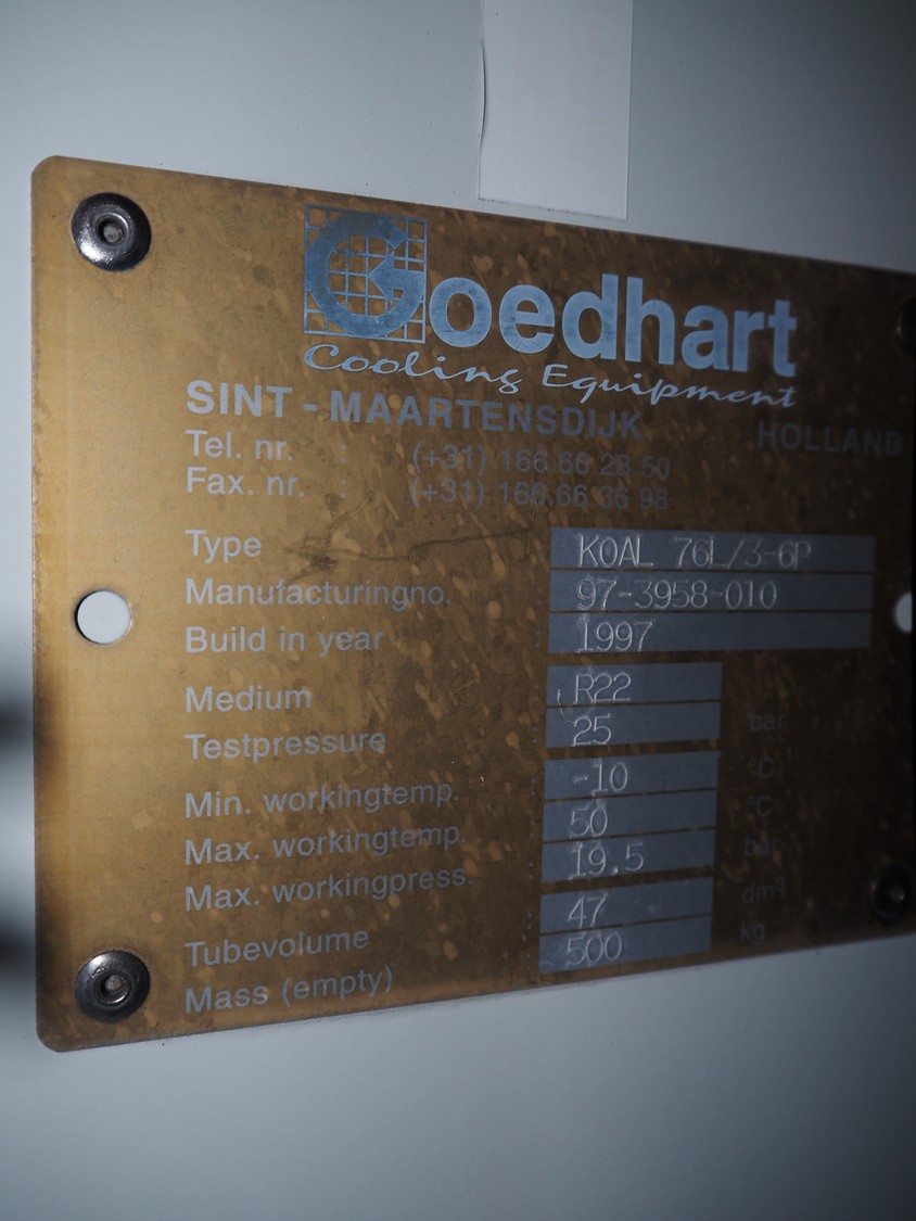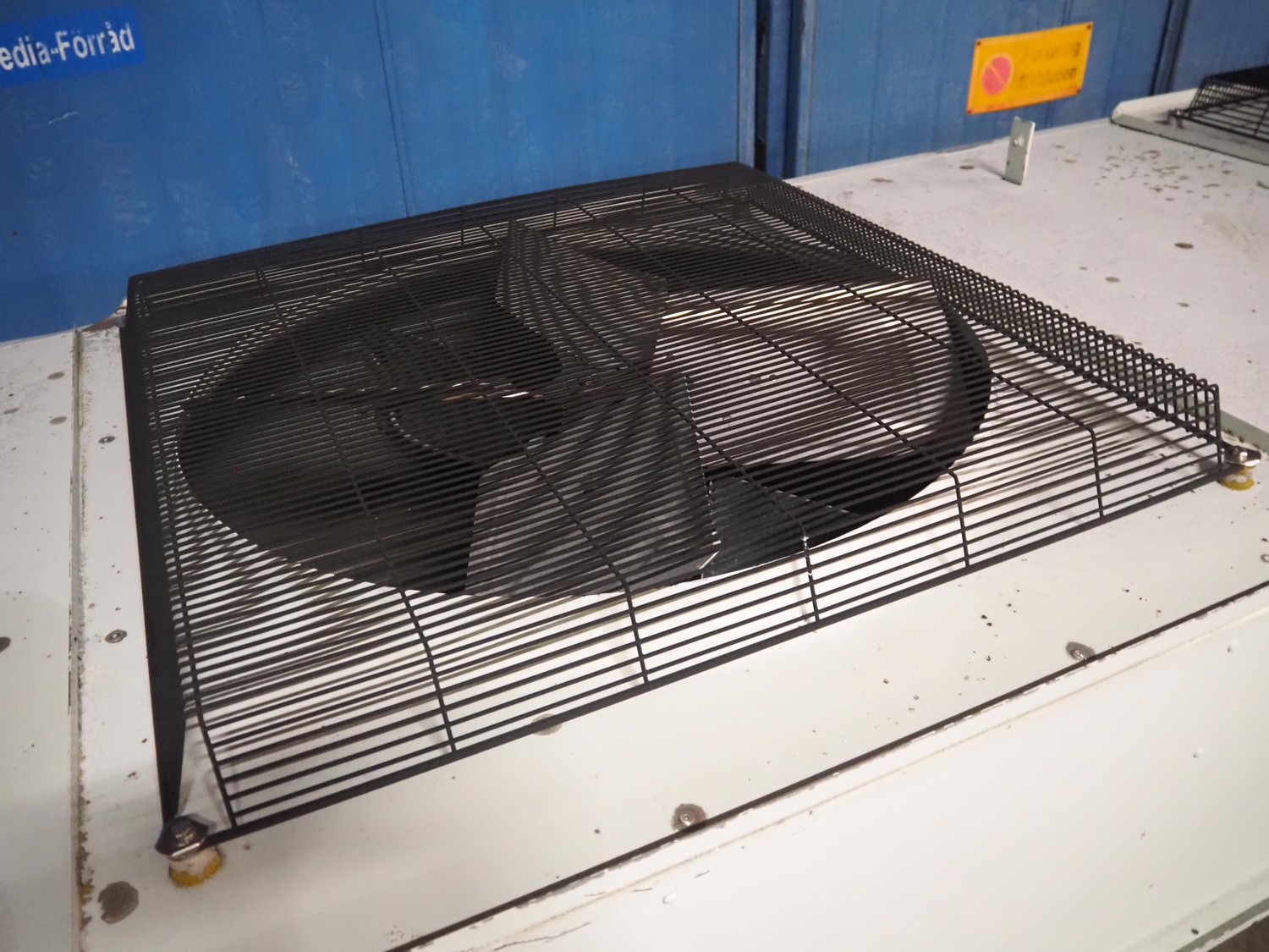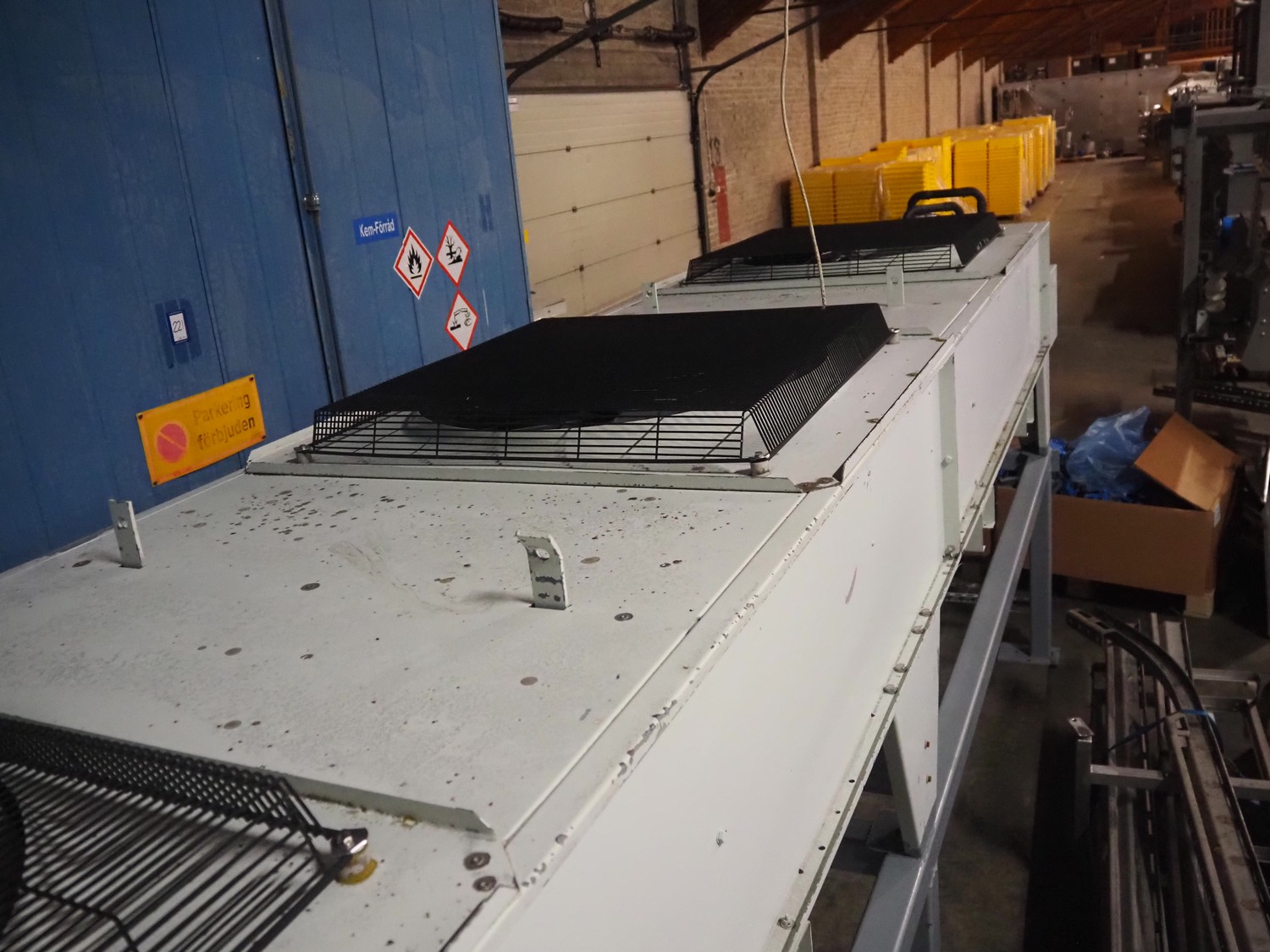 Goedhardt roof condenser, type: KOAL-76L/3-6P, number: 97-3958-010, year of construction 1997, 3 fans, dimensions: 1200 mm x 5500 mm x 1900 mm.