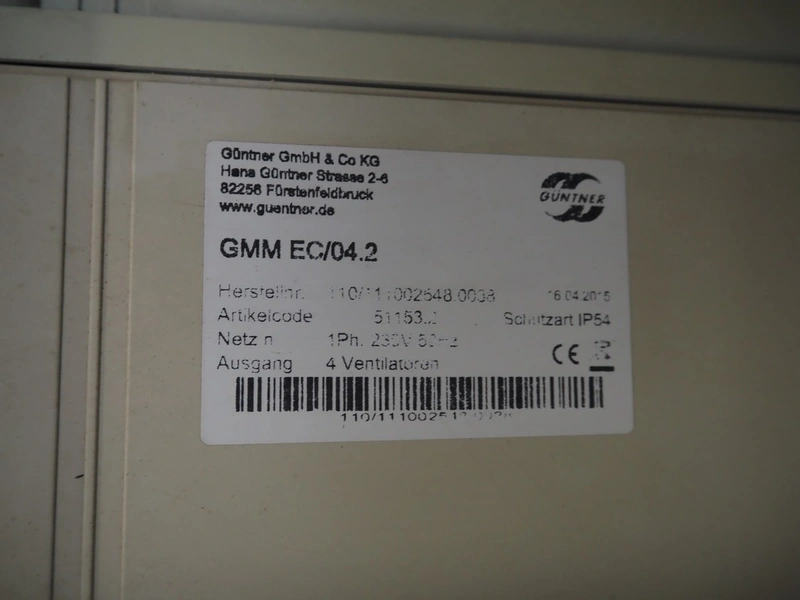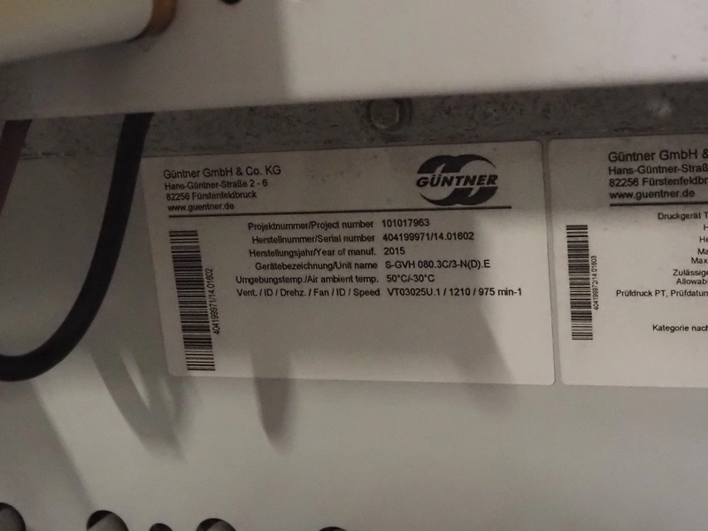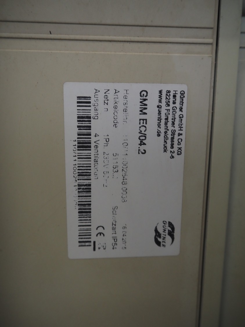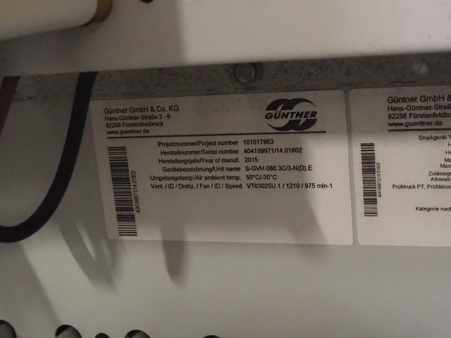 Güntner GmbH & Co KG roof condenser, type: GMM EC/04.2, 4 fans, dimensions: 6450 mm x 1500 mm x 1360 mm.