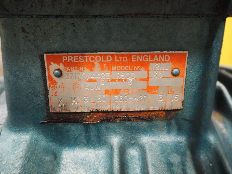 Prestcold cooling unit with Prestcold cooling compressor, model: I2HL, serial number: AUW 01113, dimensions: 1100 mm x 1800 mm.