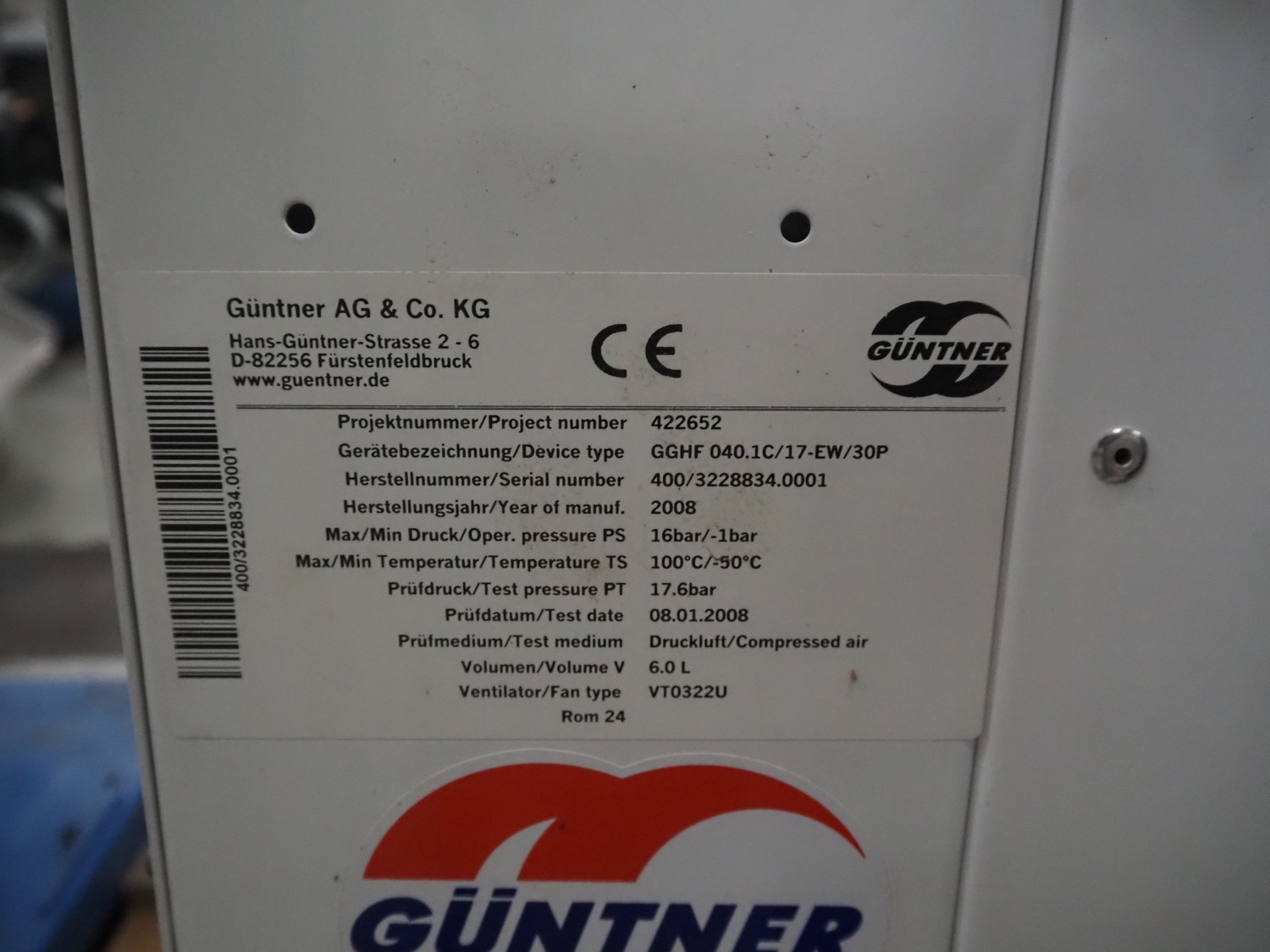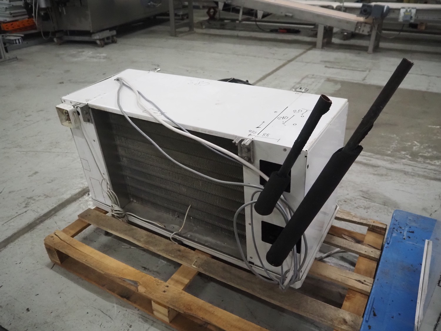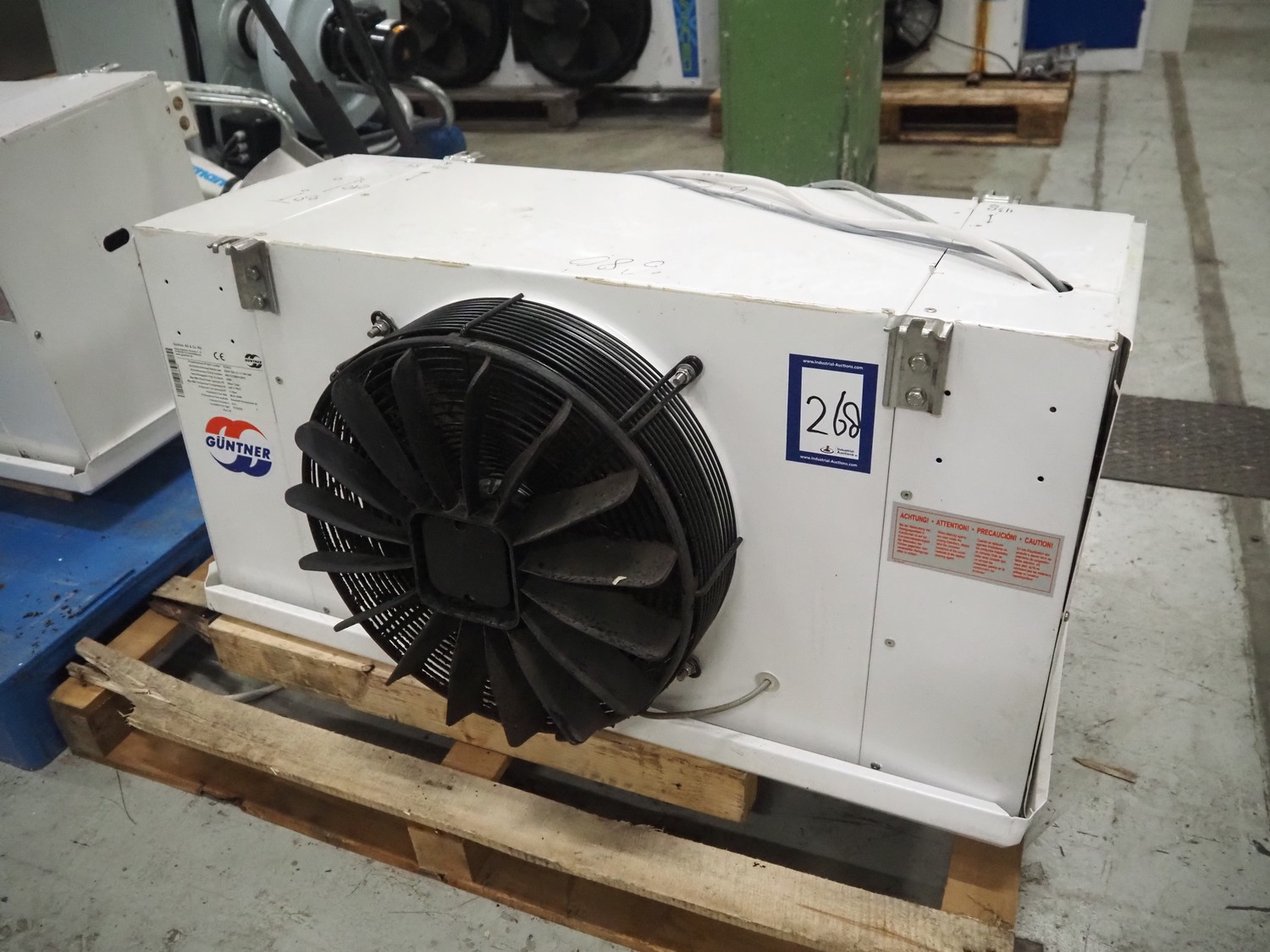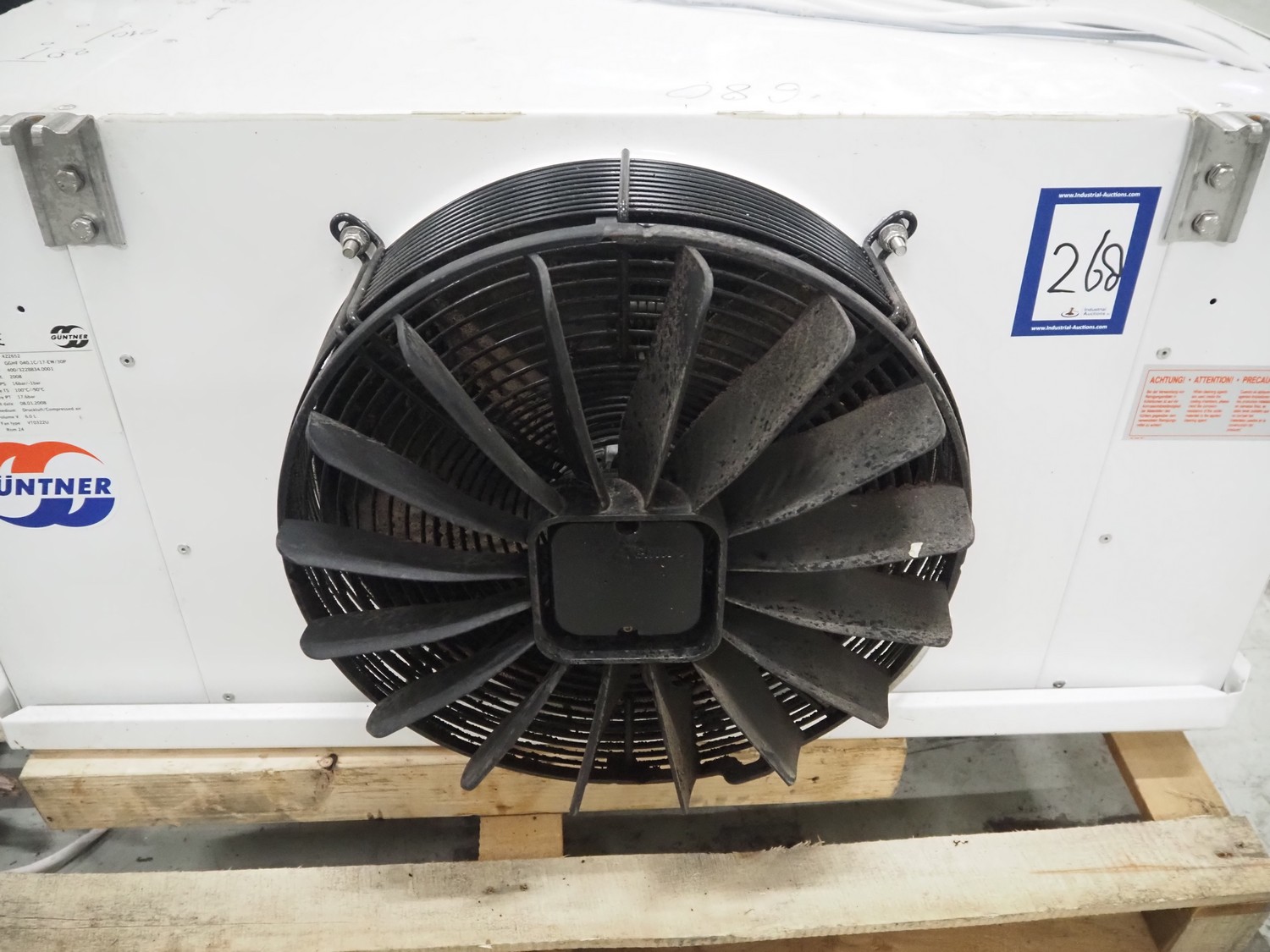 Güntner evaporator with 1 fan, type: GGHF 040.1C/17-EW/30P, serial number: 400/3228834.0001, year of construction: 2008, volume: 6 liter, dimensions: 1020 mm x 600 mm x 960 mm.