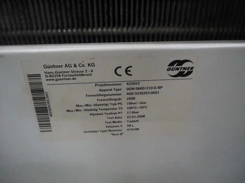 Güntner evaporator with 1 fan, dimensions: 1020 mm x 800 mm x 590 mm.
