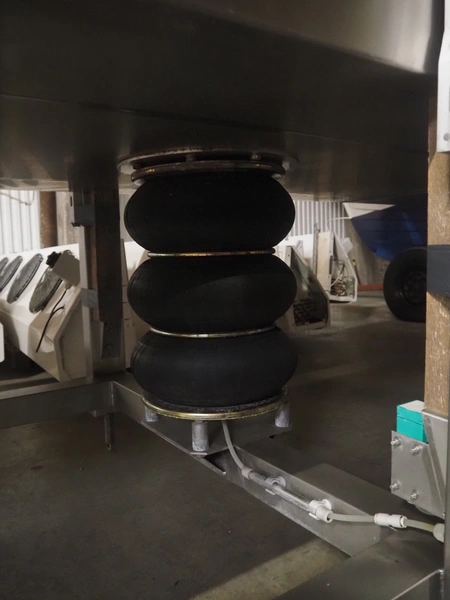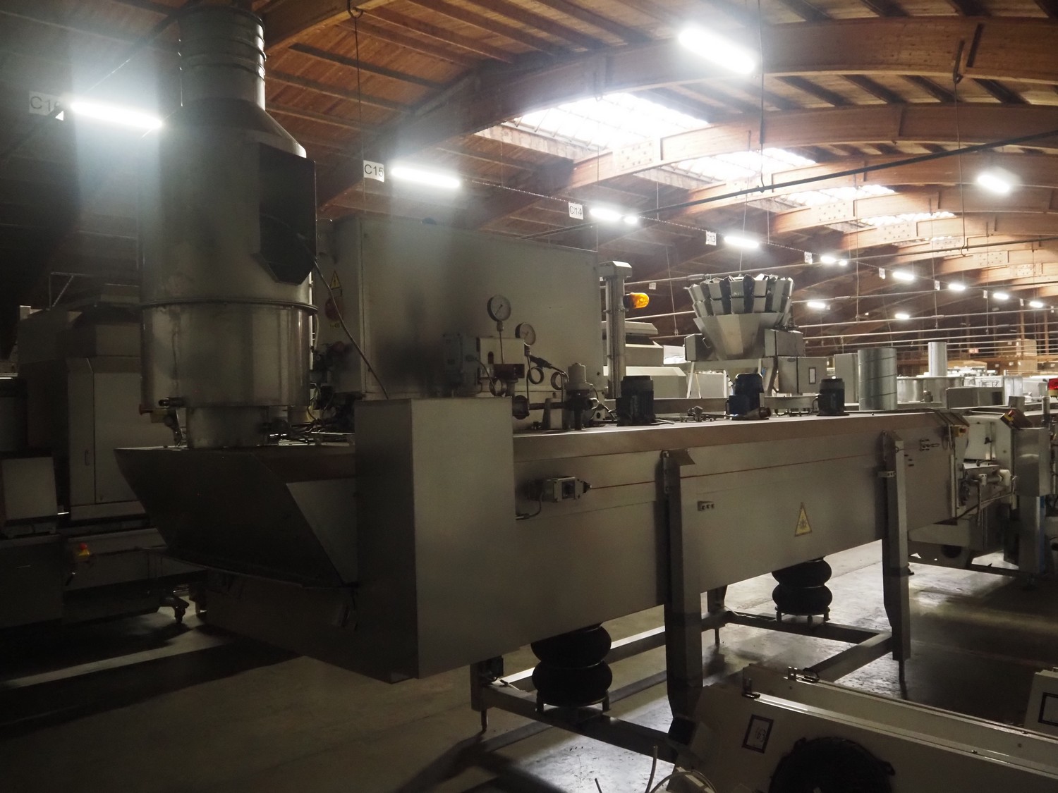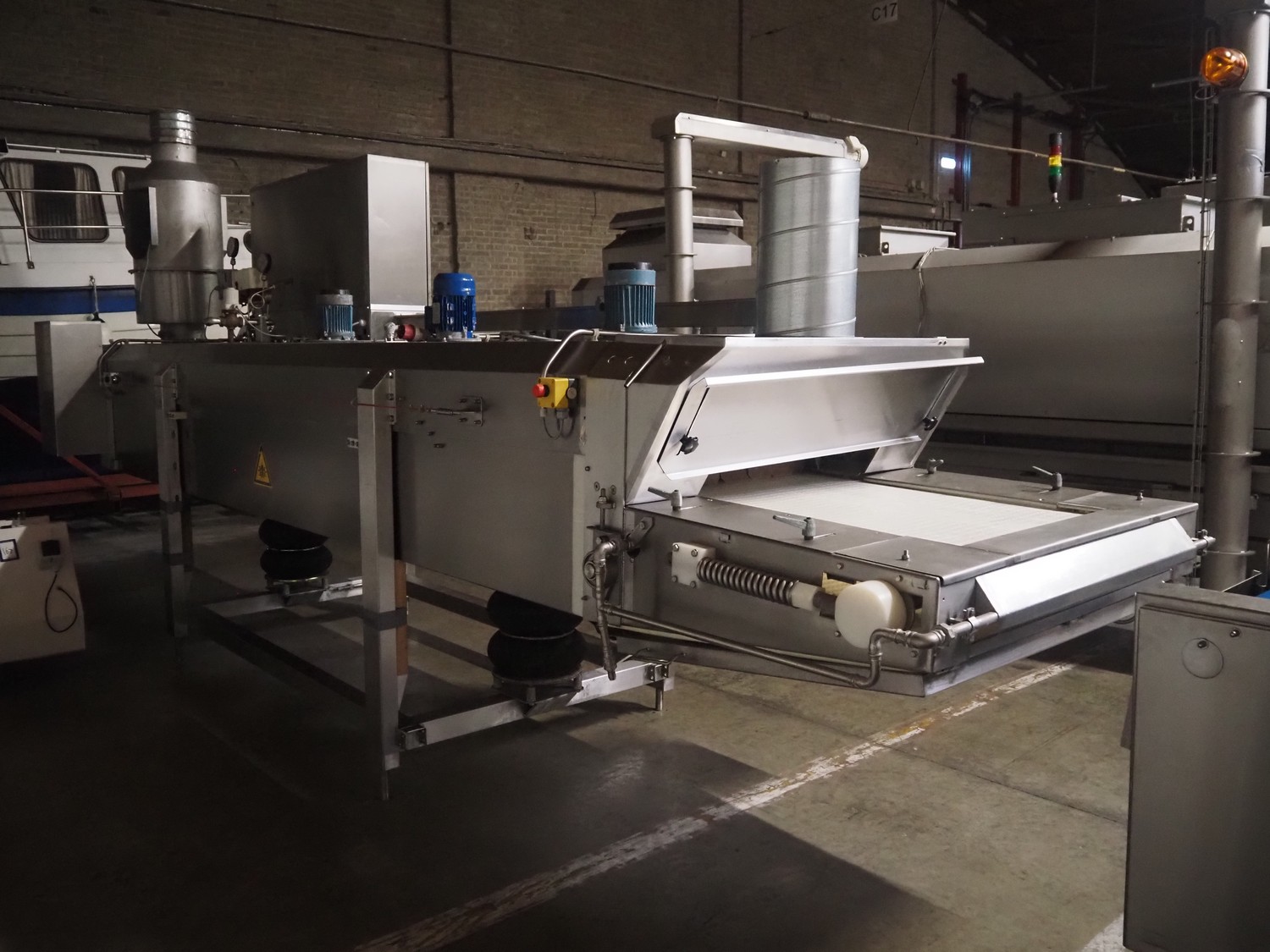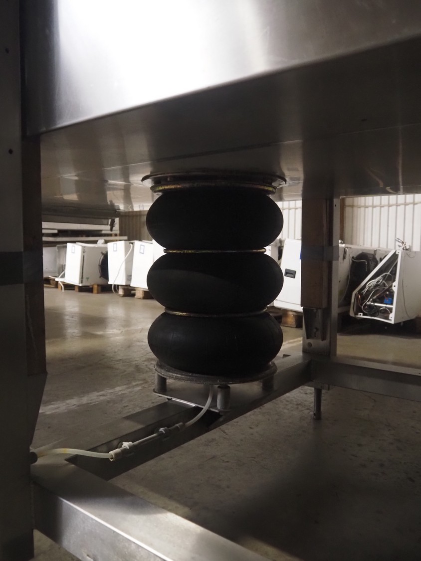 CES Group liquid nitrogen freezing tunnel, type: CES-LT-LIN-8mx0.66-PODB, serial number: CES 238, year of construction: December 1998, 400 V, 3 Ph, 9 kW, weight: 3500 kg, plastic mesh belt, belt width: 680 mm, clearance: 640 mm x 50 mm, total dimensions: 5850 mm x 1450 mm x 2880 mm.