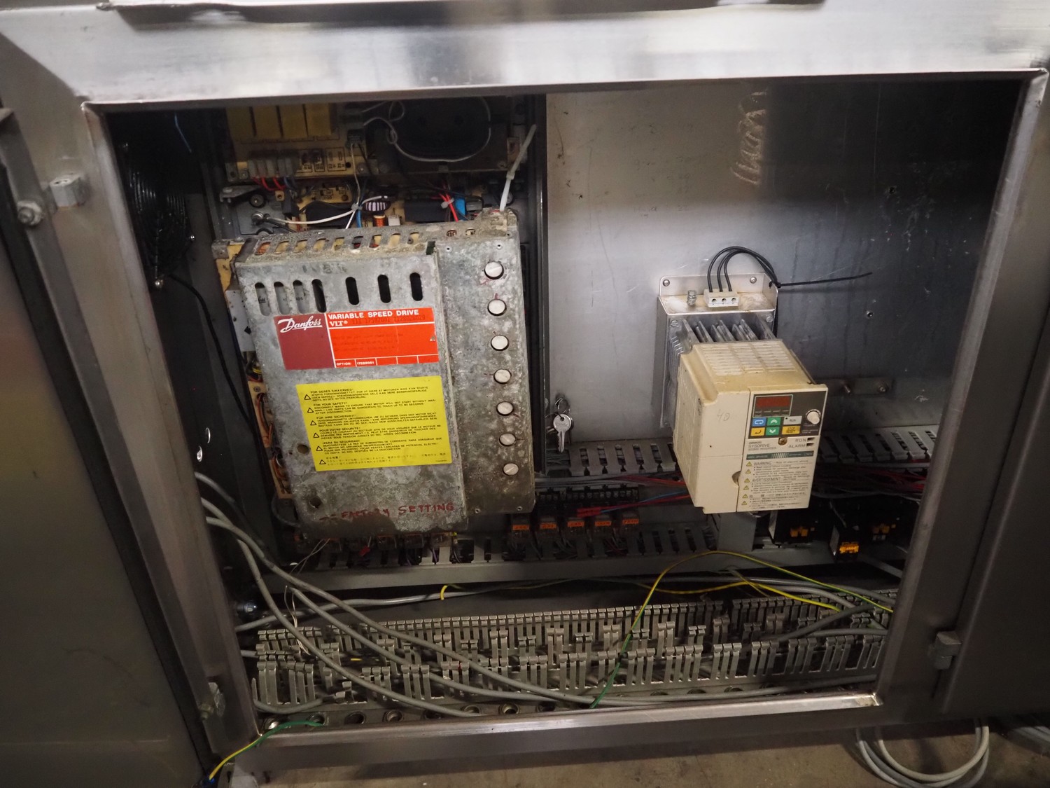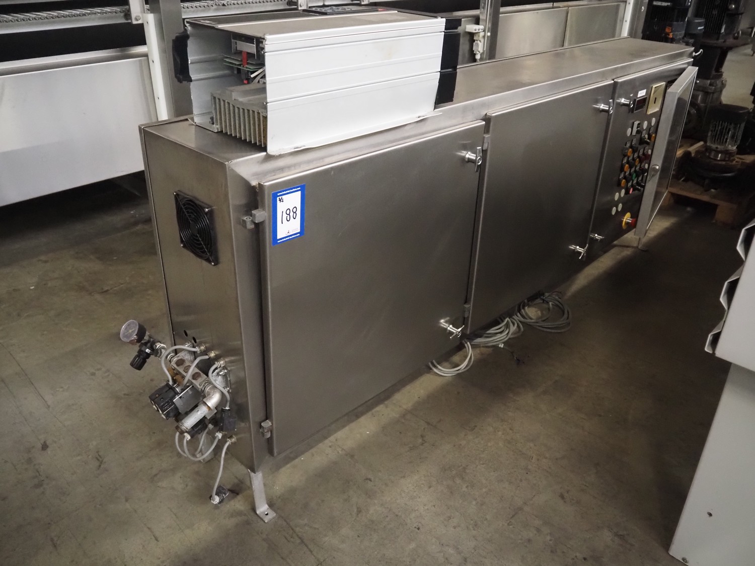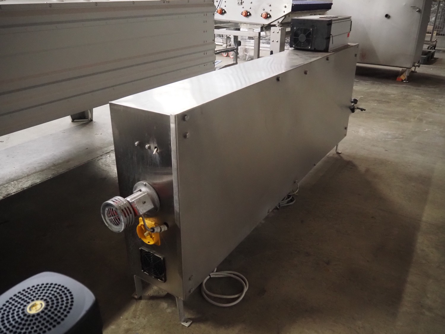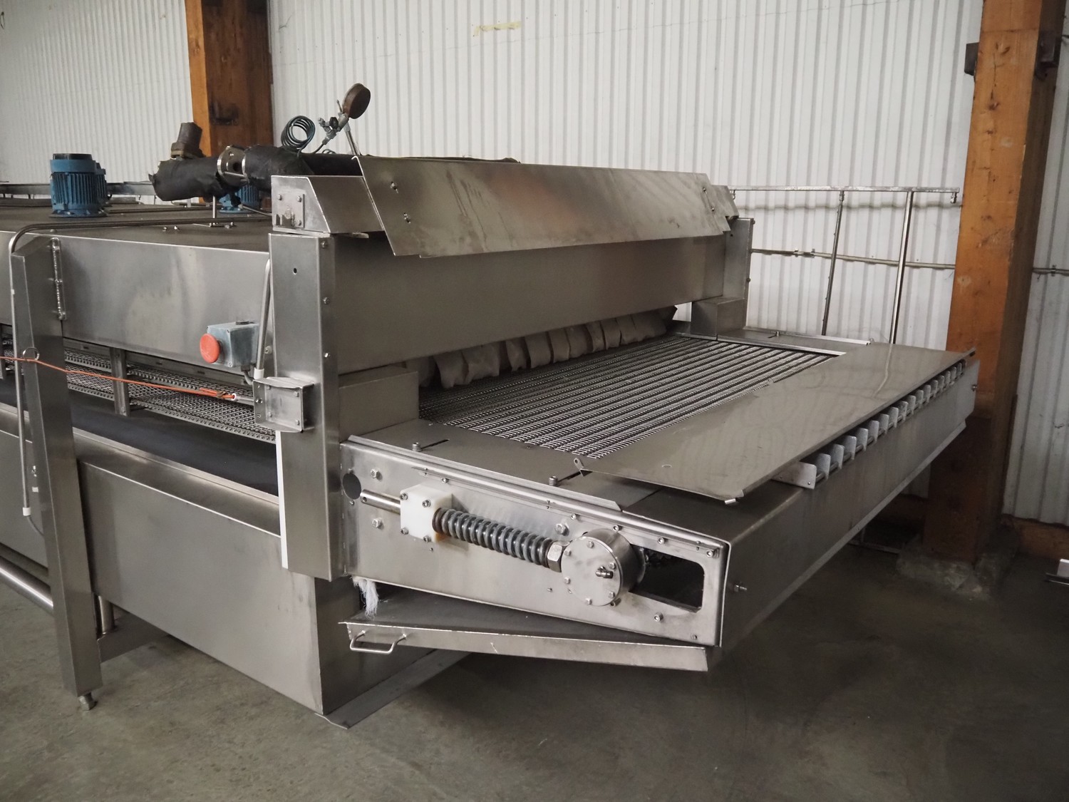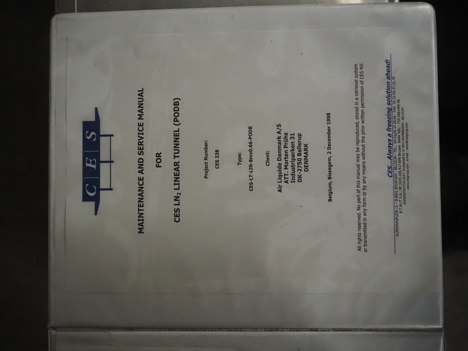 CES Group nitrogen freezing tunnel, type: CES-LT-LIN-8mx0.66-PODB, year of construction: 2-12-1998, 380 V, 3 Ph, s/s mesh belt, belt width: 1570 mm, clearance: 1500 mm x 140 mm, total dimensions: 13750 mm x 2300 mm x 1700 mm. Including s/s switch cabinet, dimensions switch cabinet: 2250 mm x 310 mm x 850 mm and Danfoss frequency convertor, dimensions frequency convertor: 250 mm x 200 mm x 500 mm.