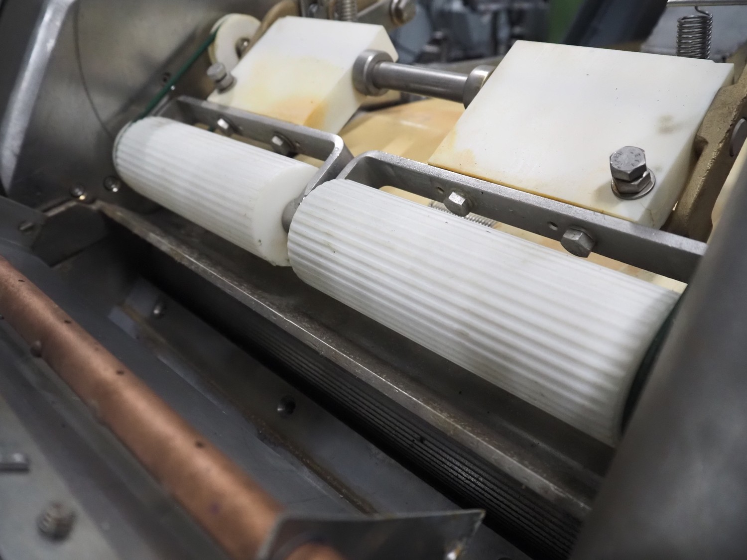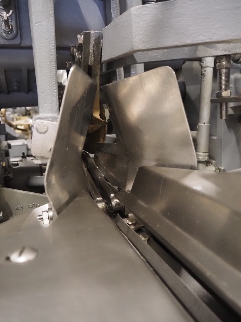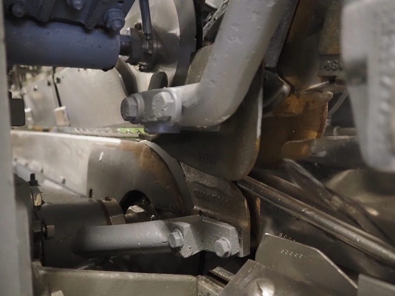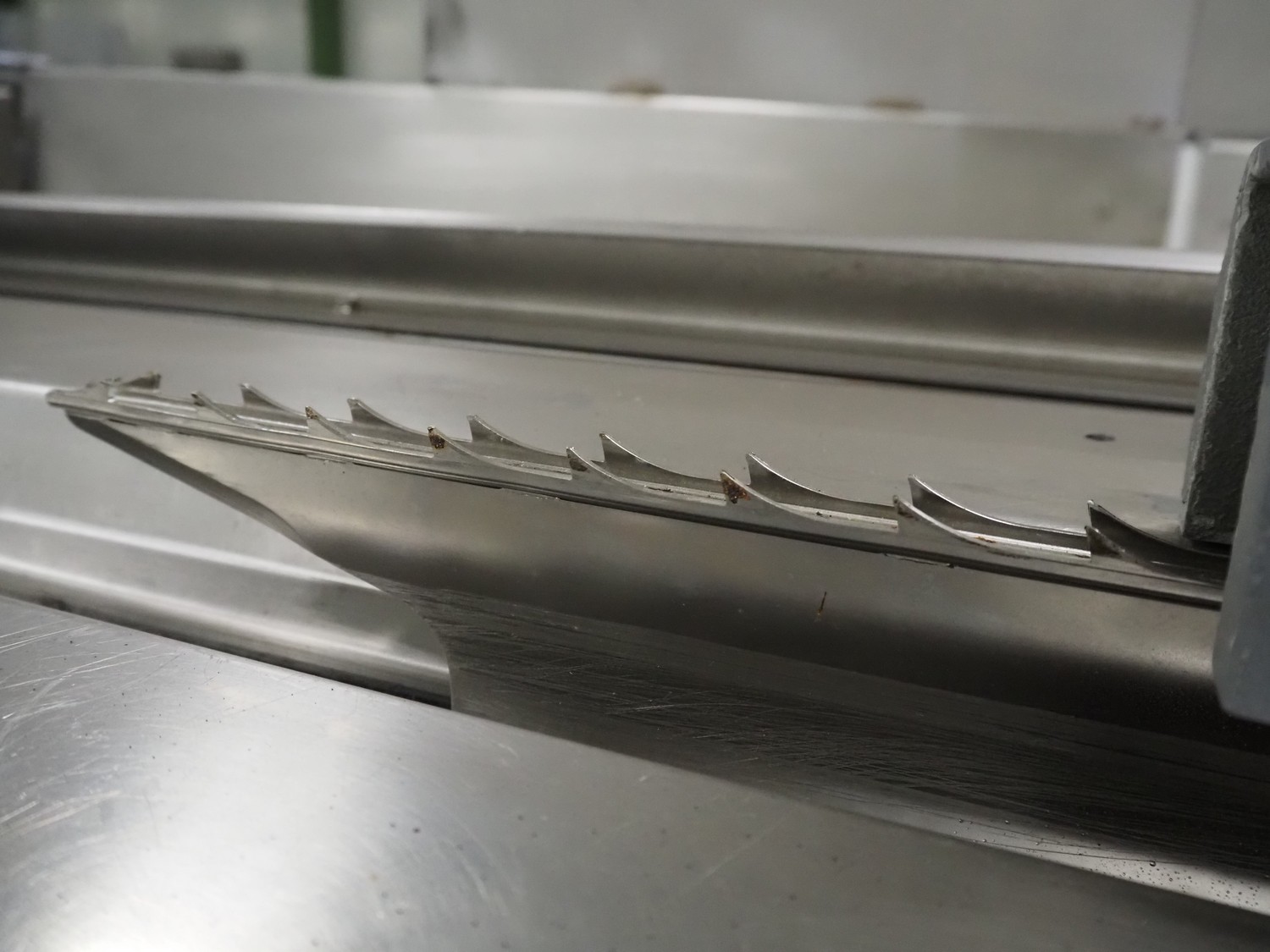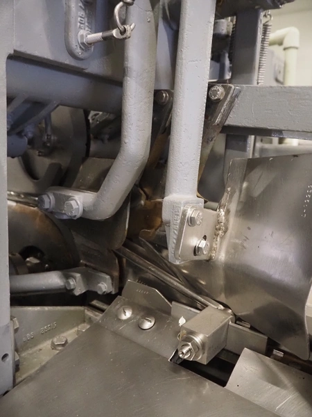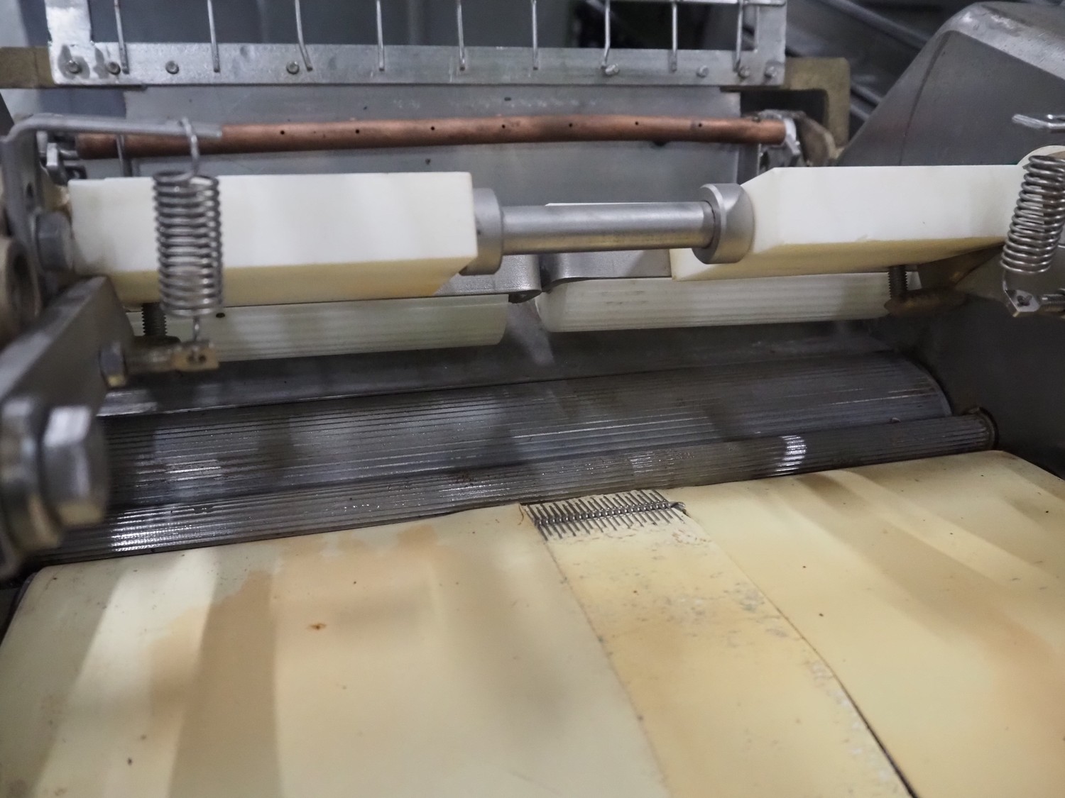 Baader whitefish filleting machine, type: 185, machine number: 10 3863 1185, year of construction: 1983, 220 V, 3 Ph, 50 Hz, 43 A, 10 kW, plastic belt, belt width: (2x) 160 mm, s/s mesh outfeed belt, belt width: 365 mm, total dimensions: 7000 mm x 1400 mm x 1900 mm.