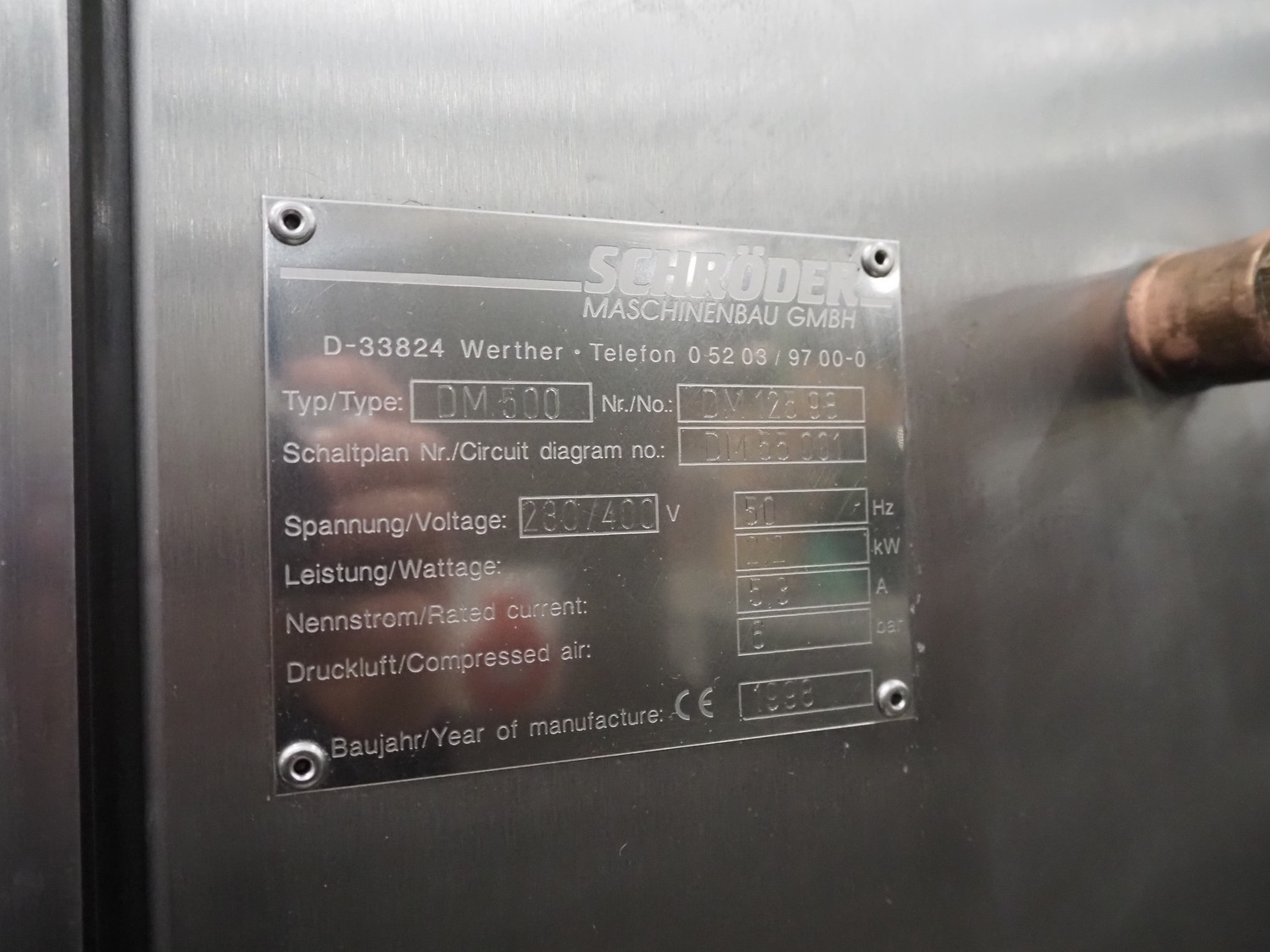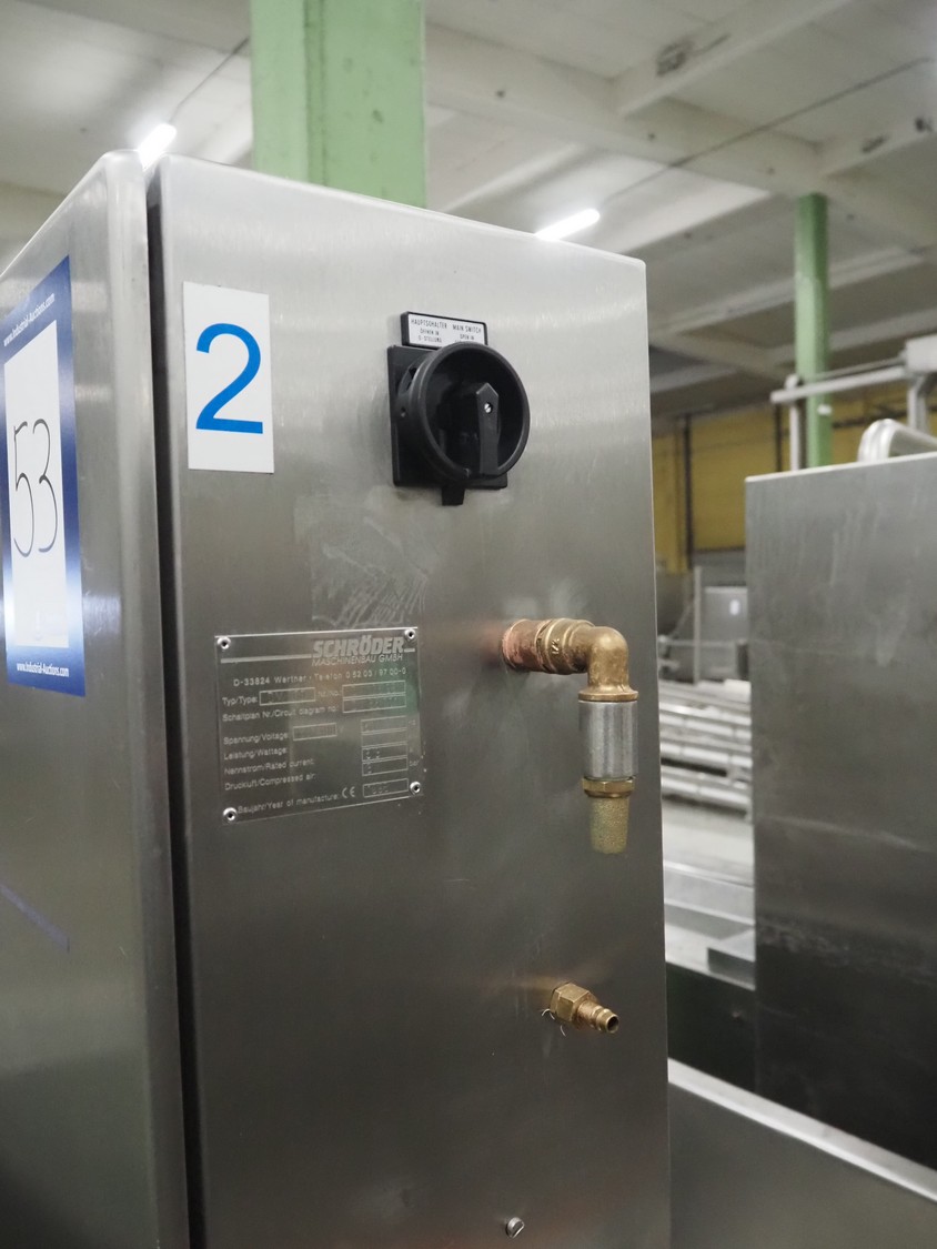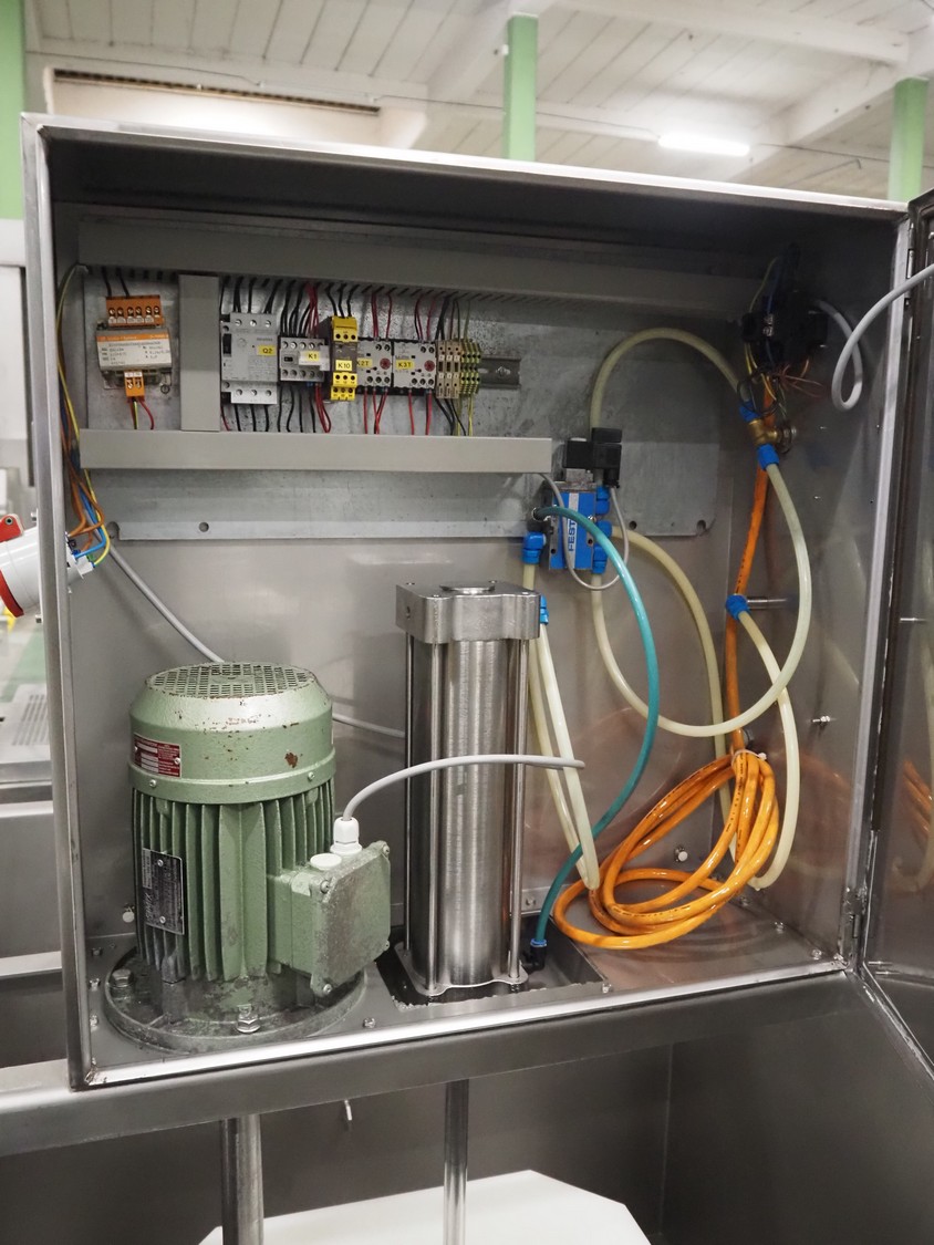Schröder Maschinenbau GmbH brine mixer, type: DM 500, number: DM 125 98, year of construction: 1998, 220/400 V, 50 Hz, 5.3 A, 2.2 kW, pressure: 6 bar, volume: 500 liter, dimensions: 1350 mm x 1350 mm x 1840 mm.