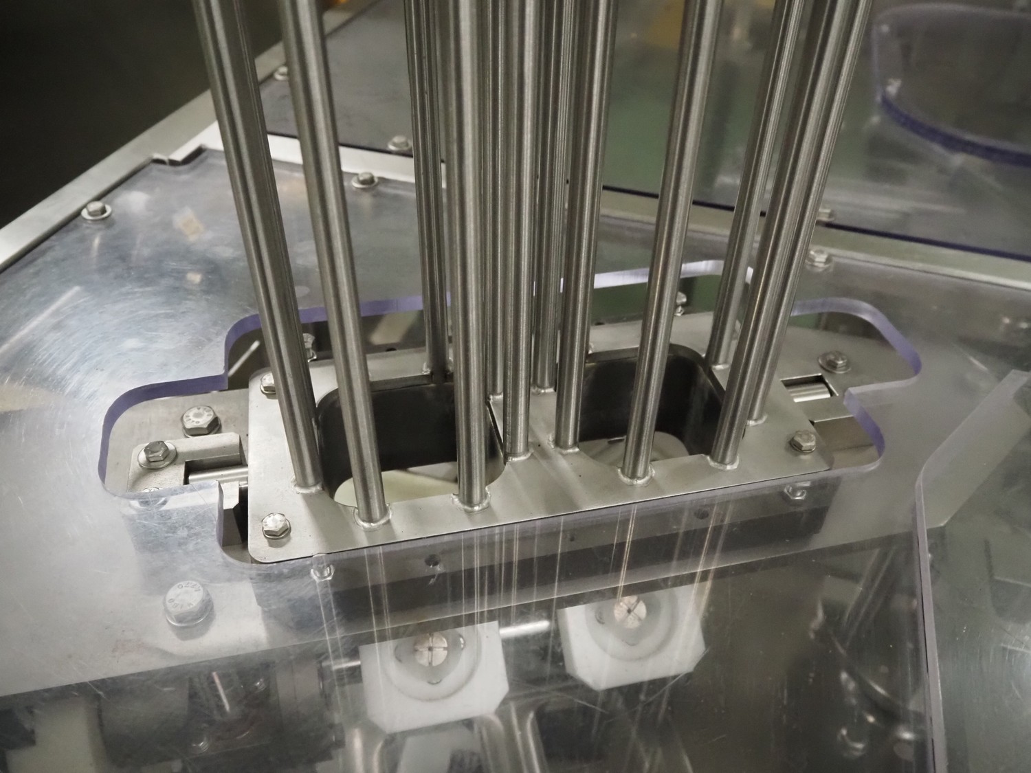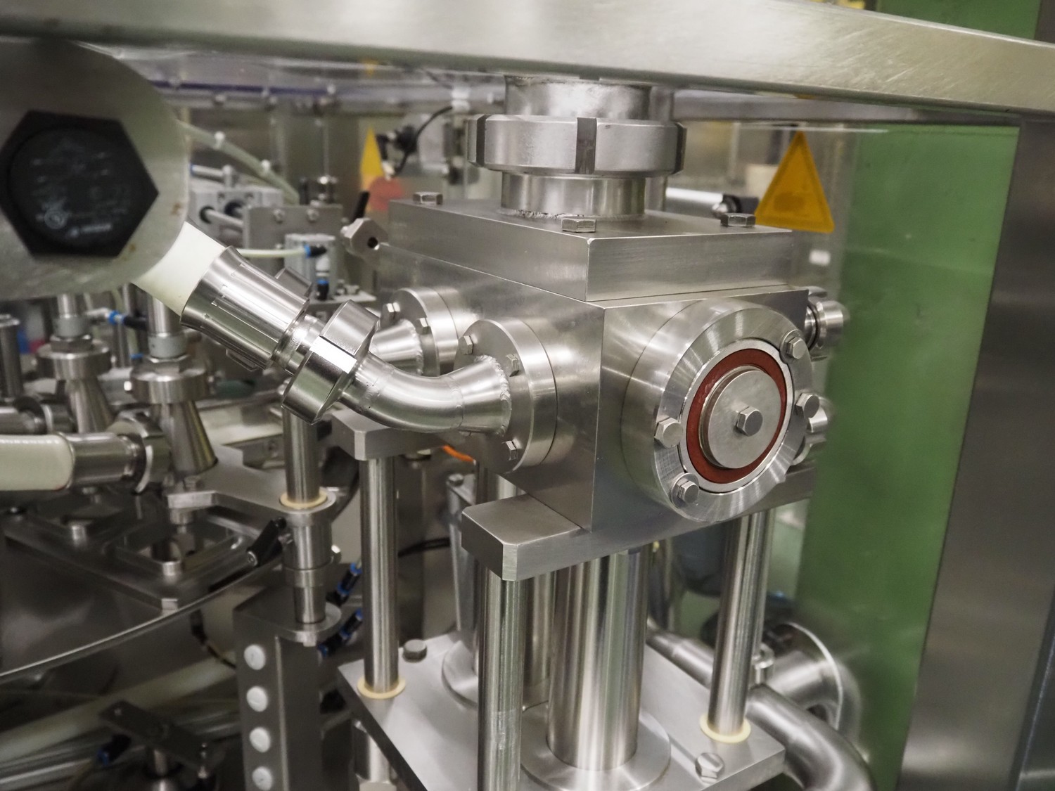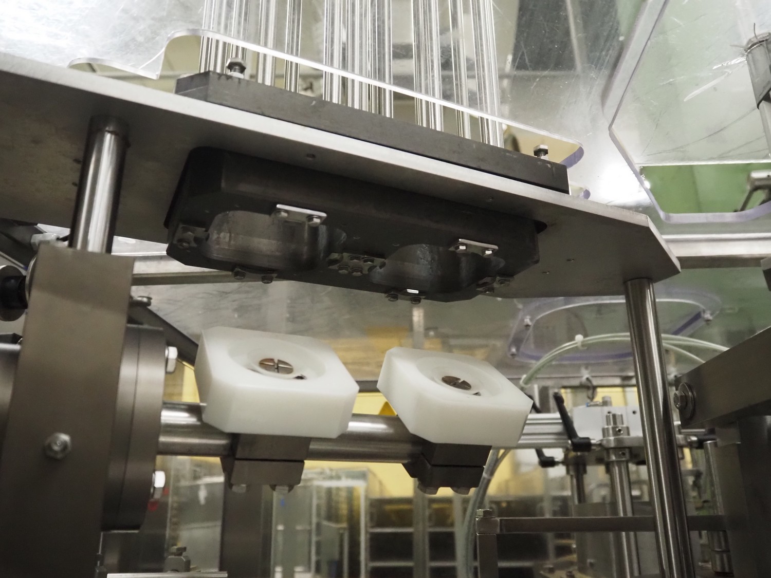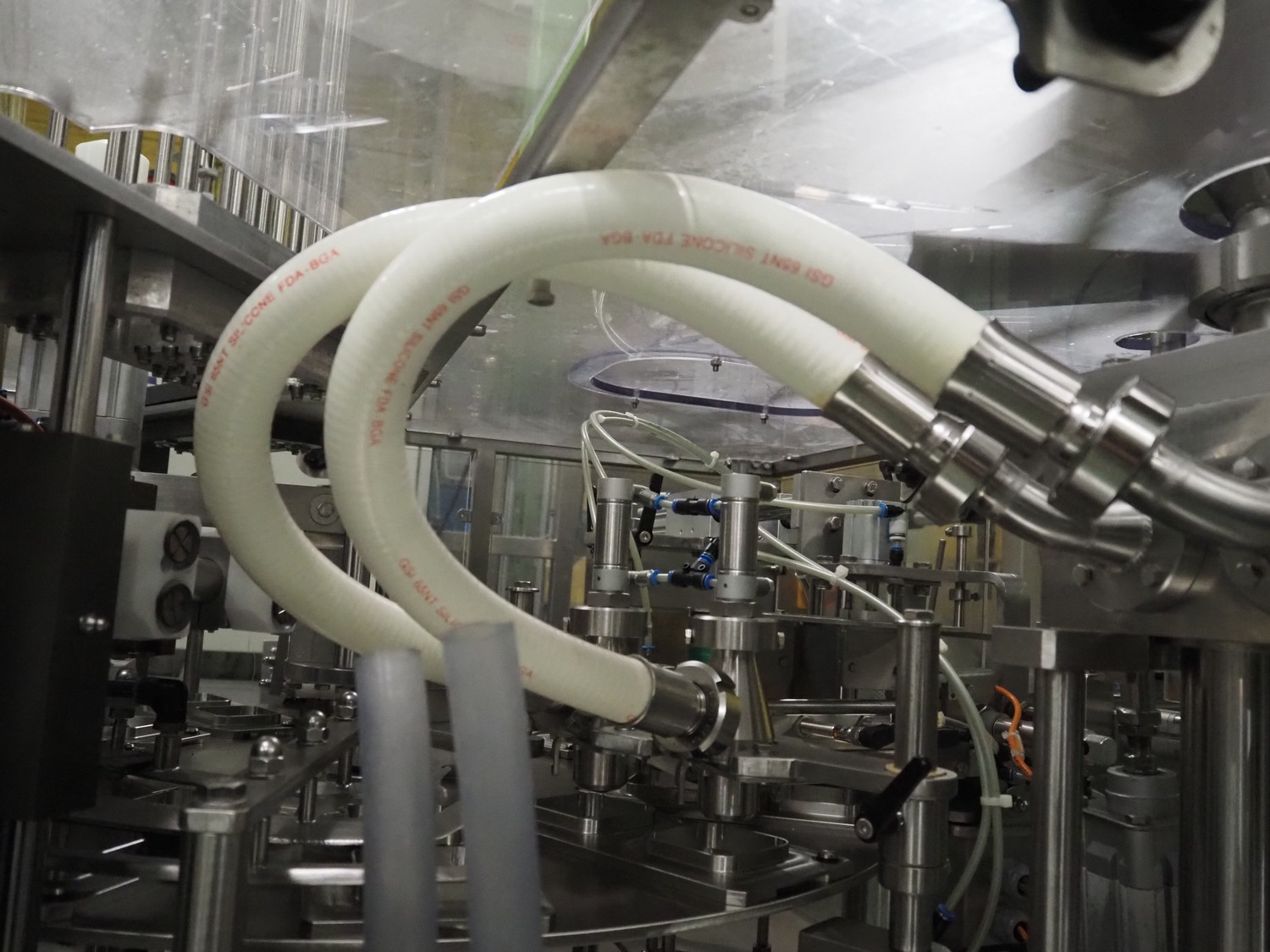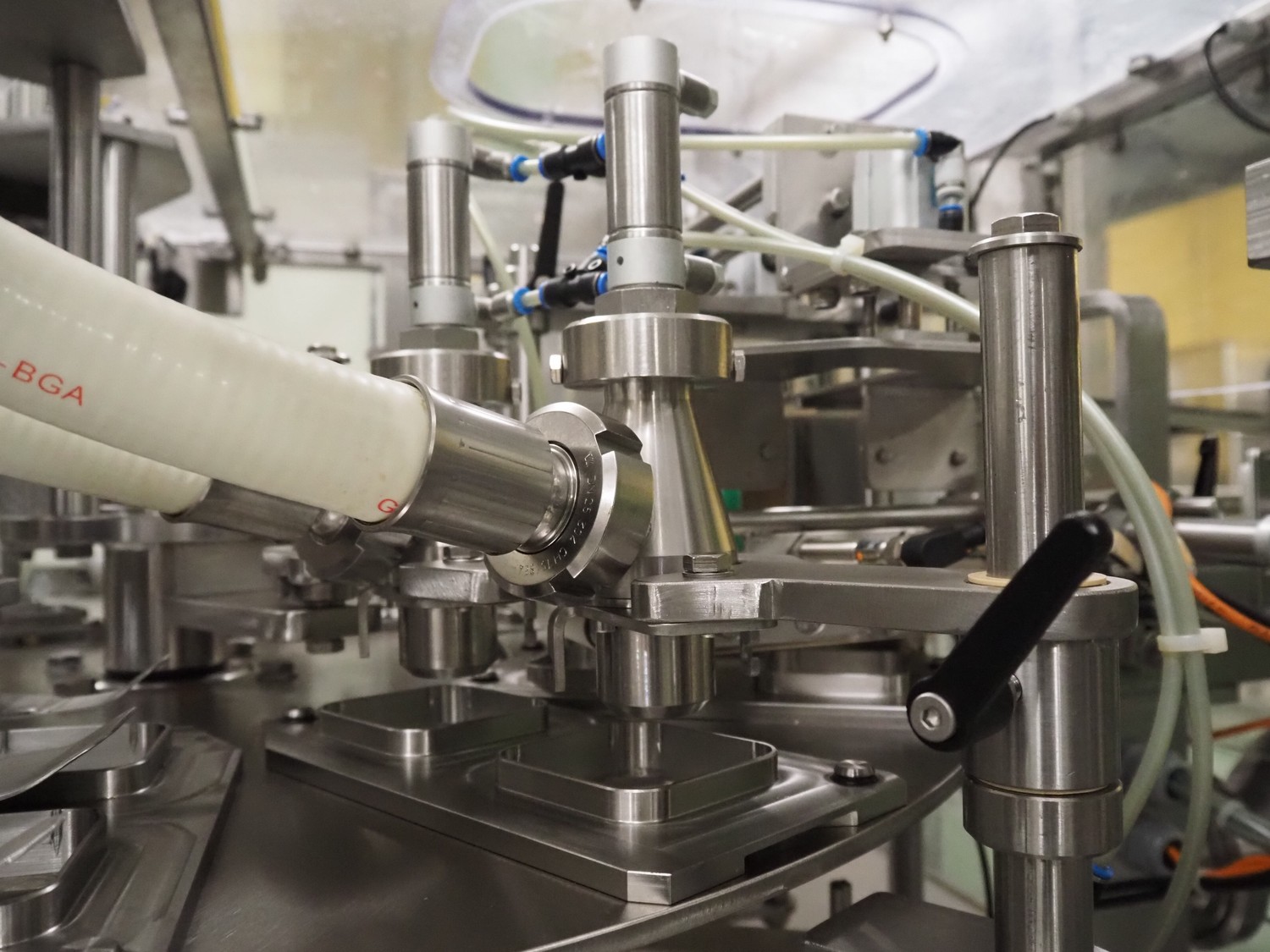 Novapac cup filling and sealing machine, type: RM 150, machine number: 25 178, year of construction: 2005, 400 V, 50 Hz, denester: 85 mm x 85 mm, dyes: (2x) 72 mm x 72 mm, plastic belt, belt width: (2x) 100 mm, total dimensions: 2400 mm x 2350 mm x 2370 mm. S/s switch cabinet, dimensions: 1000 mm x 400 mm x 2150 mm, s/s control panel, dimensions: 800 mm x 350 mm x 800 mm.