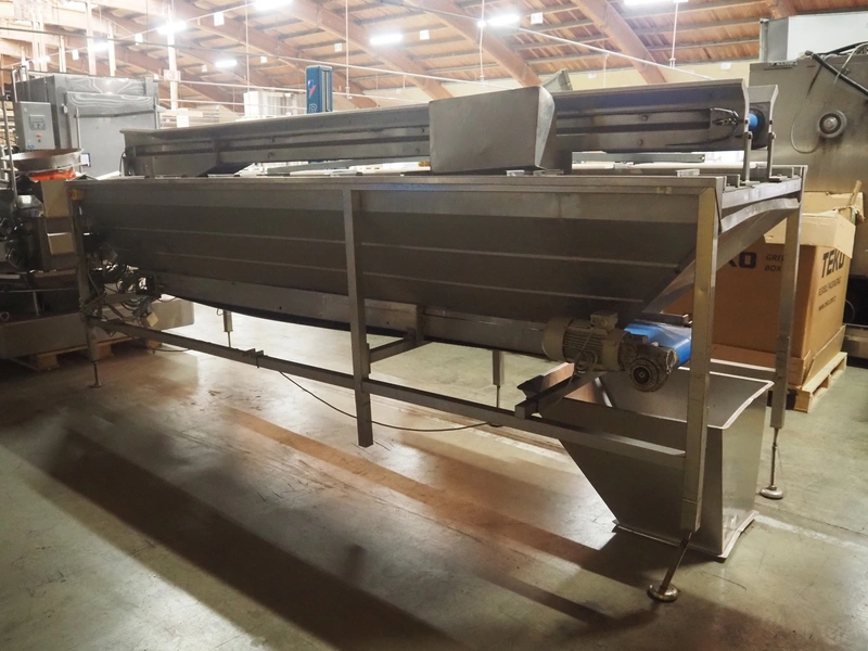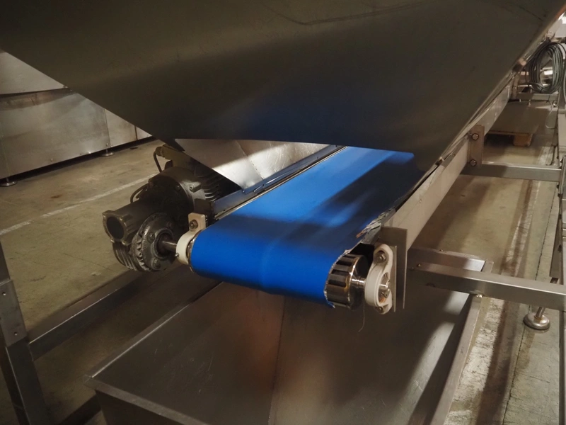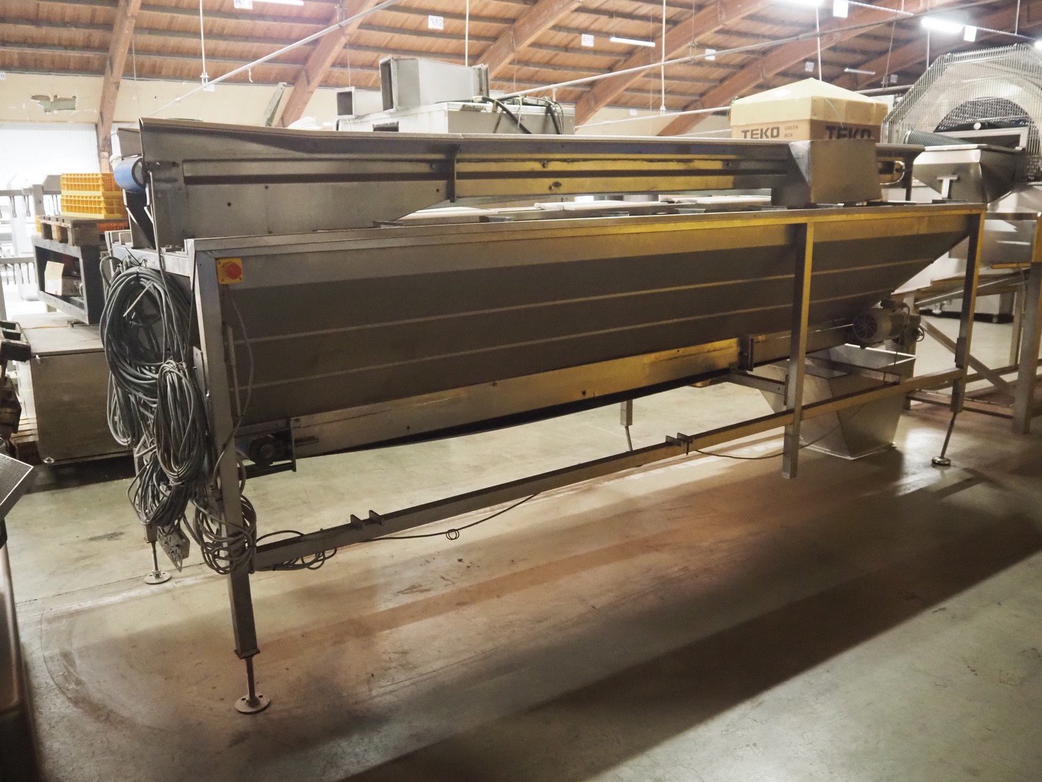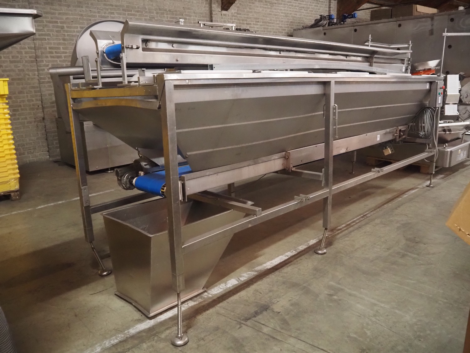 Sorting belt, s/s frame, 2x 5 stations, 2 plastic belts, belt width: 340 mm and 250 mm, total dimensions: 4070 mm x 1250 mm x 1710 mm.