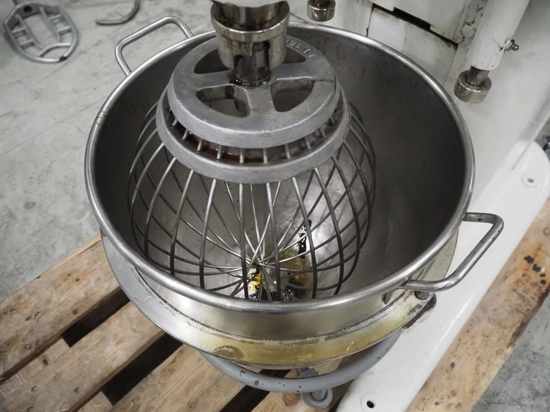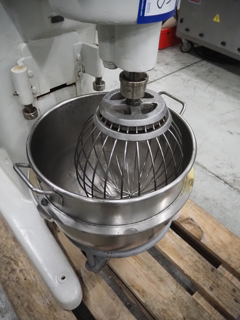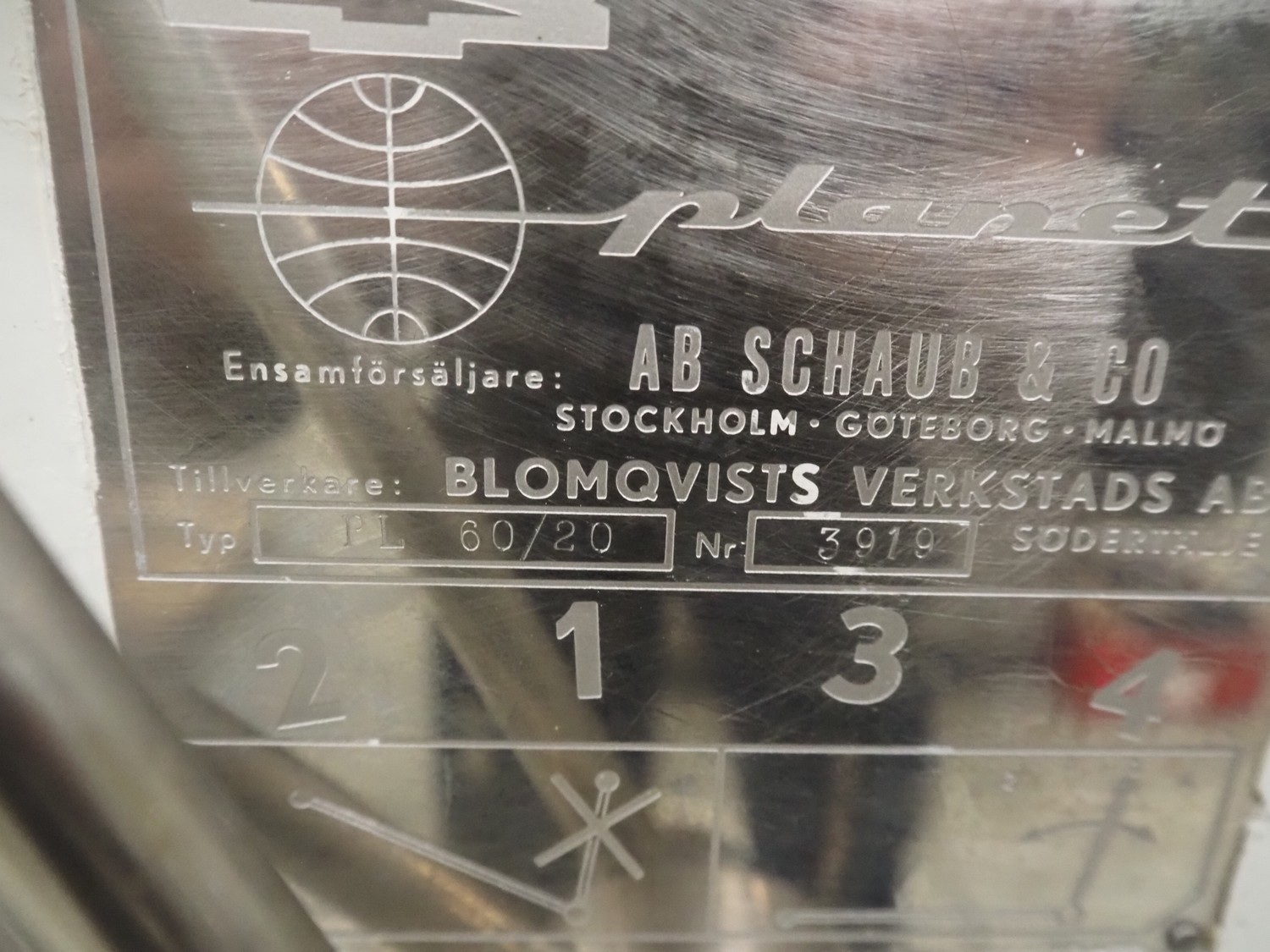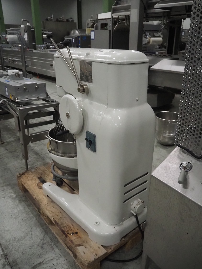 Tripas mixer, type: PL 60/20, number: 3919, s/s bowl, dimensions bowl: ø 410 mm x 410 mm, total dimensions: 600 mm x 900 mm x 1250 mm. Including whisk and s/s bowl, dimensions: Ø 360 x 400 mm.
