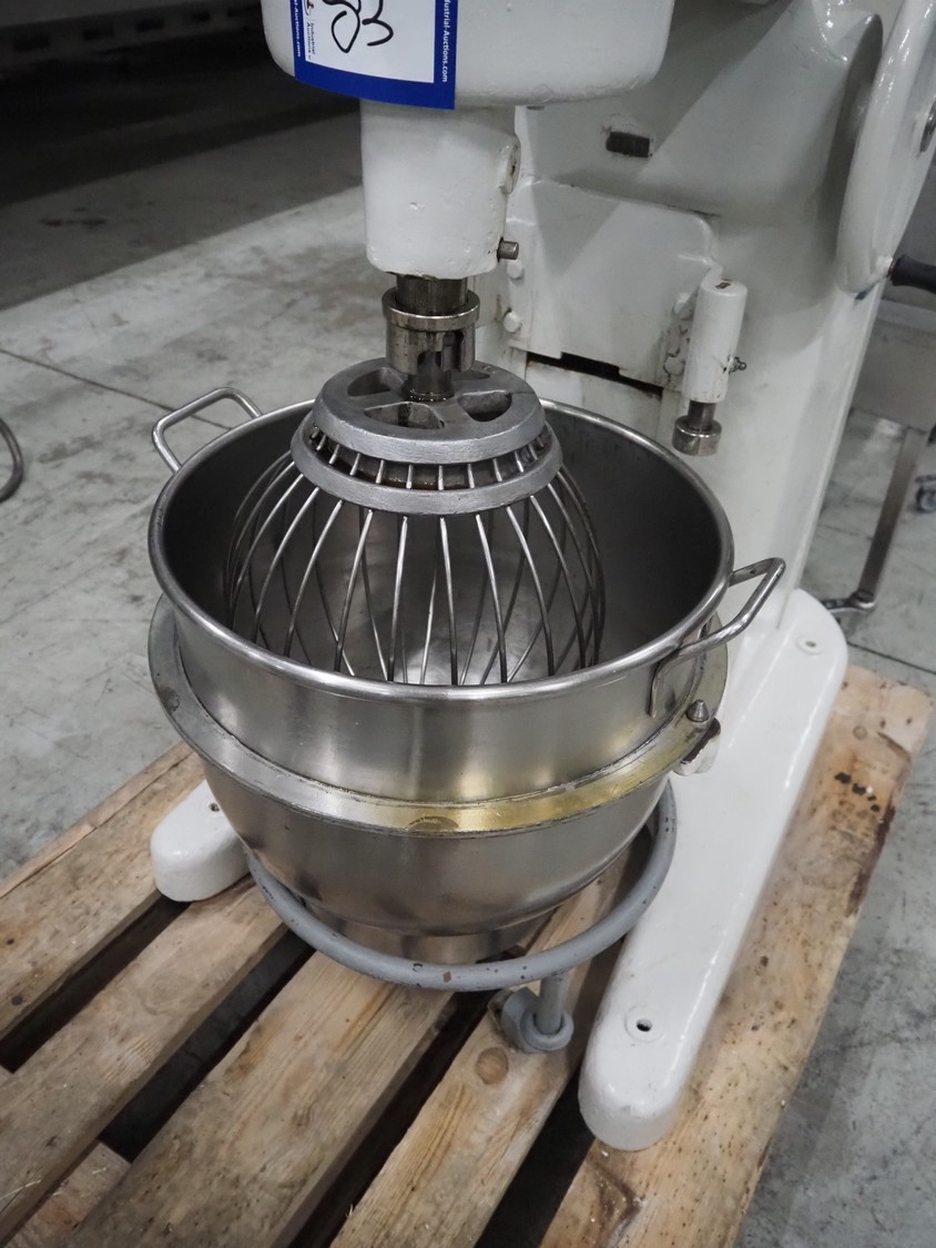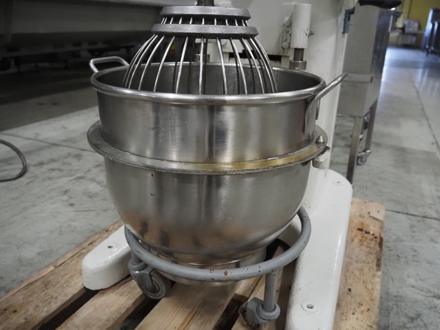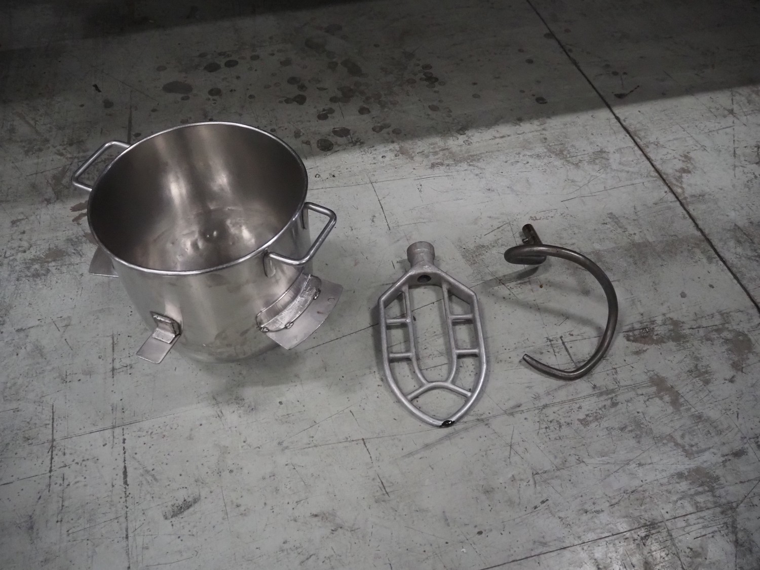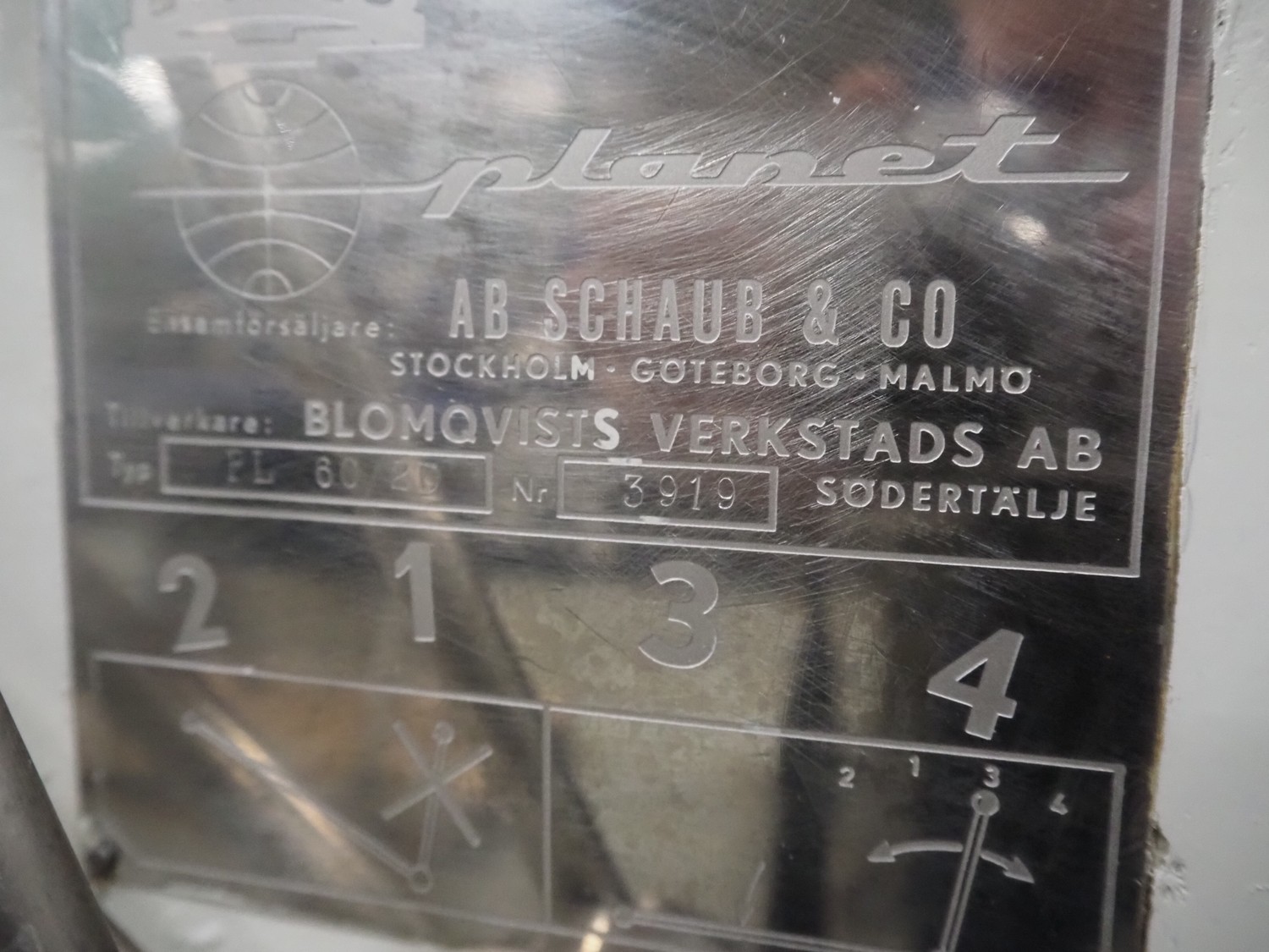 Tripas mixer, type: PL 60/20, number: 3919, s/s bowl, dimensions bowl: ø 410 mm x 410 mm, total dimensions: 600 mm x 900 mm x 1250 mm. Including whisk and s/s bowl, dimensions: Ø 360 x 400 mm.